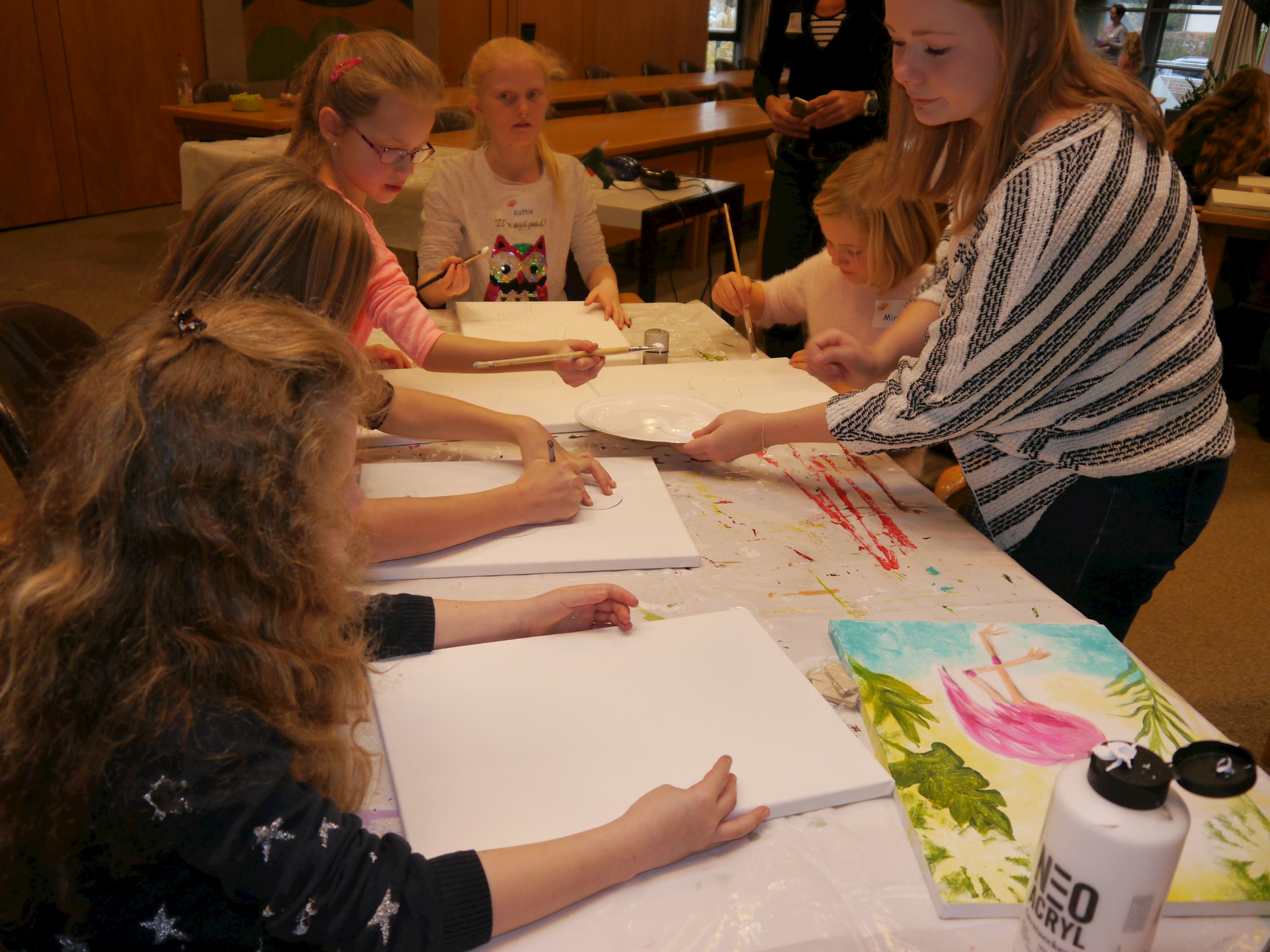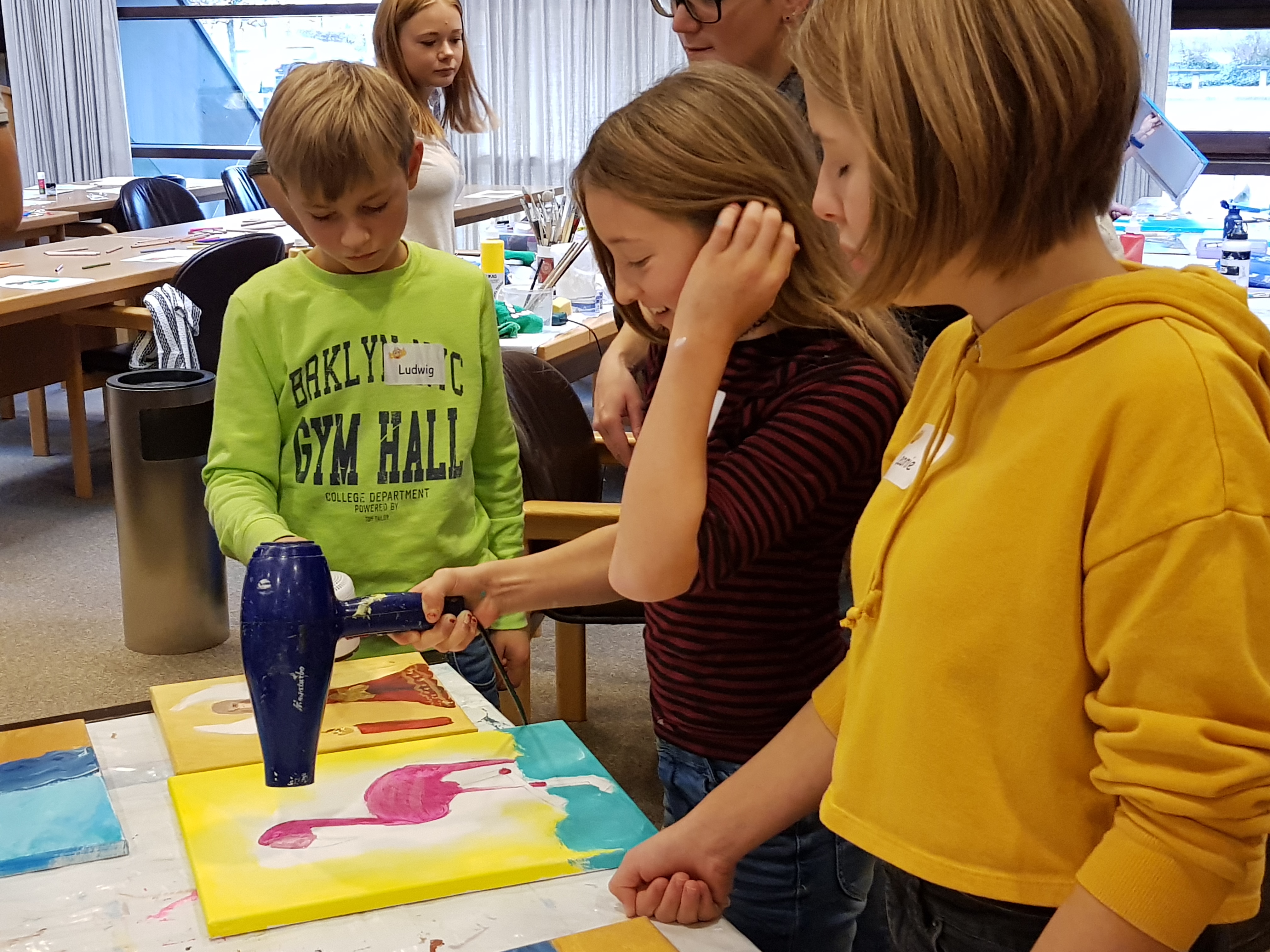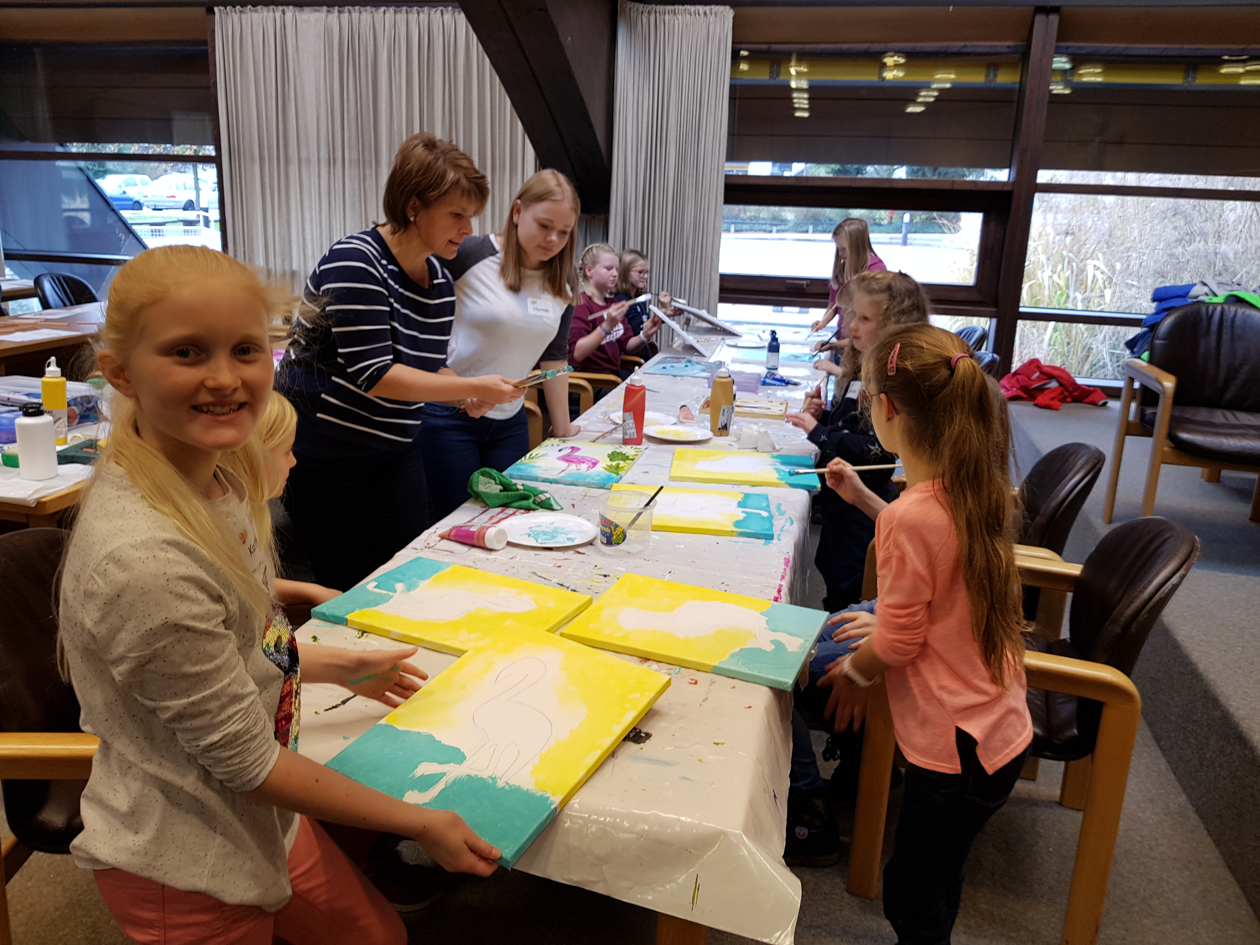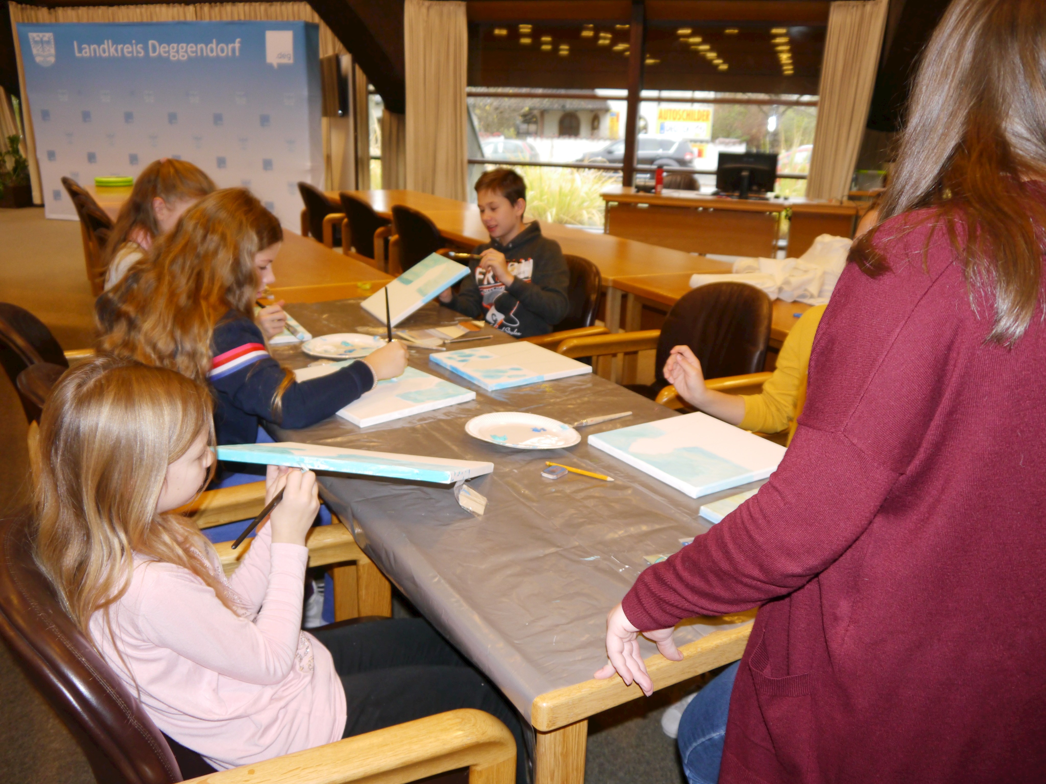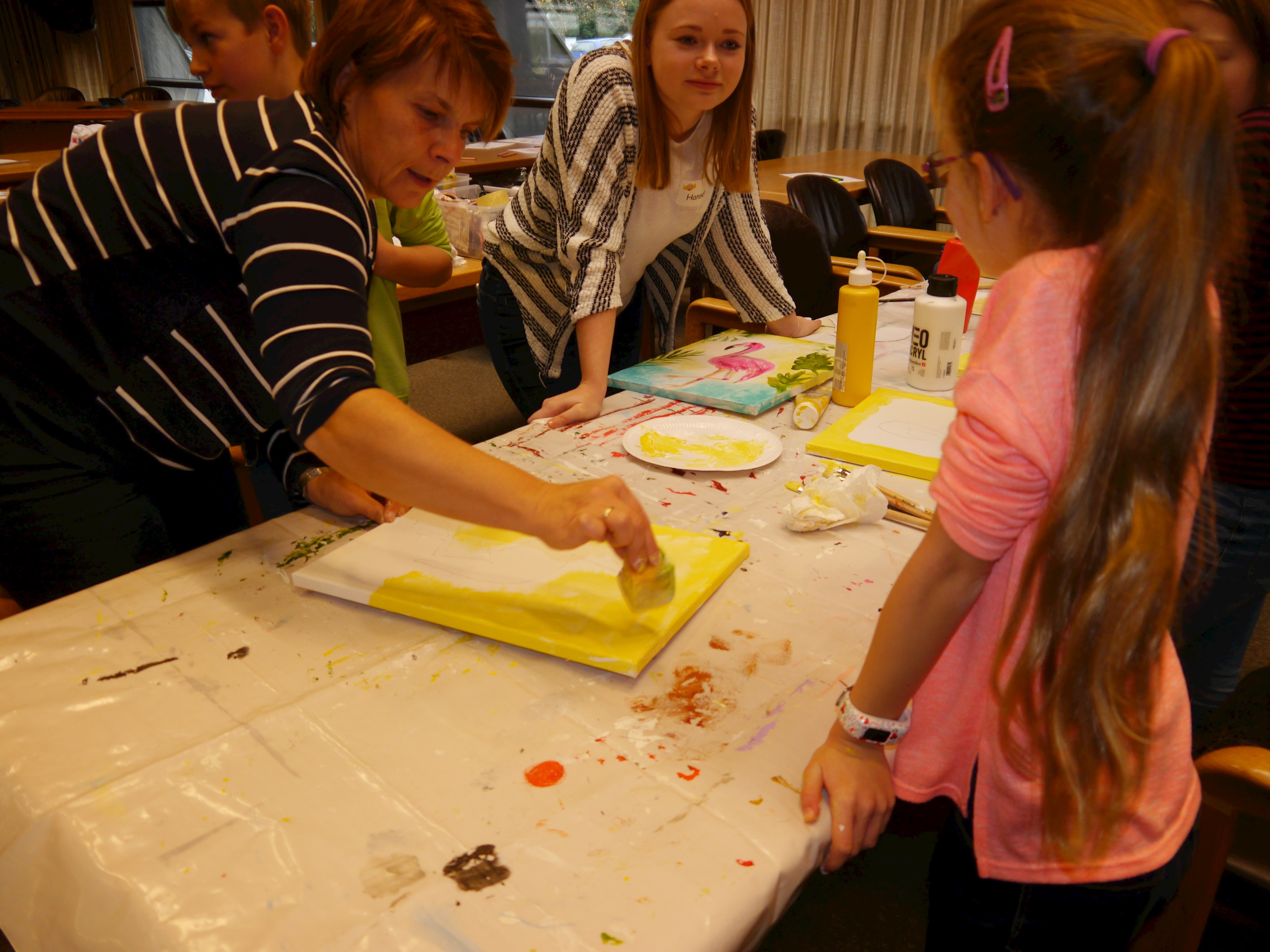 Unter der fachkundiger Aufsicht und Anleitung von Monika Grill, Referentin der VHS, gab es für die Kids ein Acryl-Malworkshop. Unterstützt durch verschiedene Vorlagen konnten sie frei nach individueller Kreativität ihre eigenen Kunstwerke kreieren.