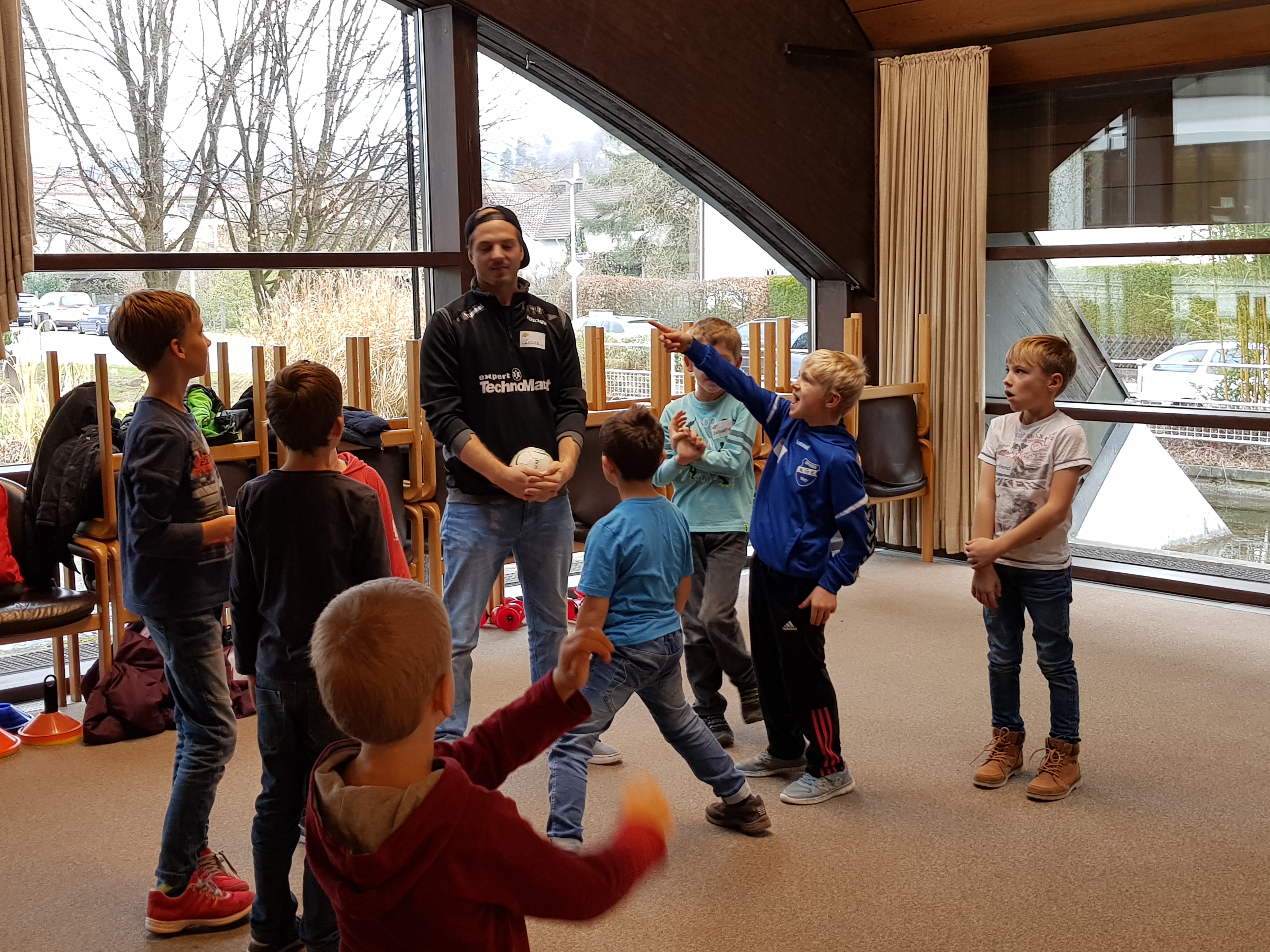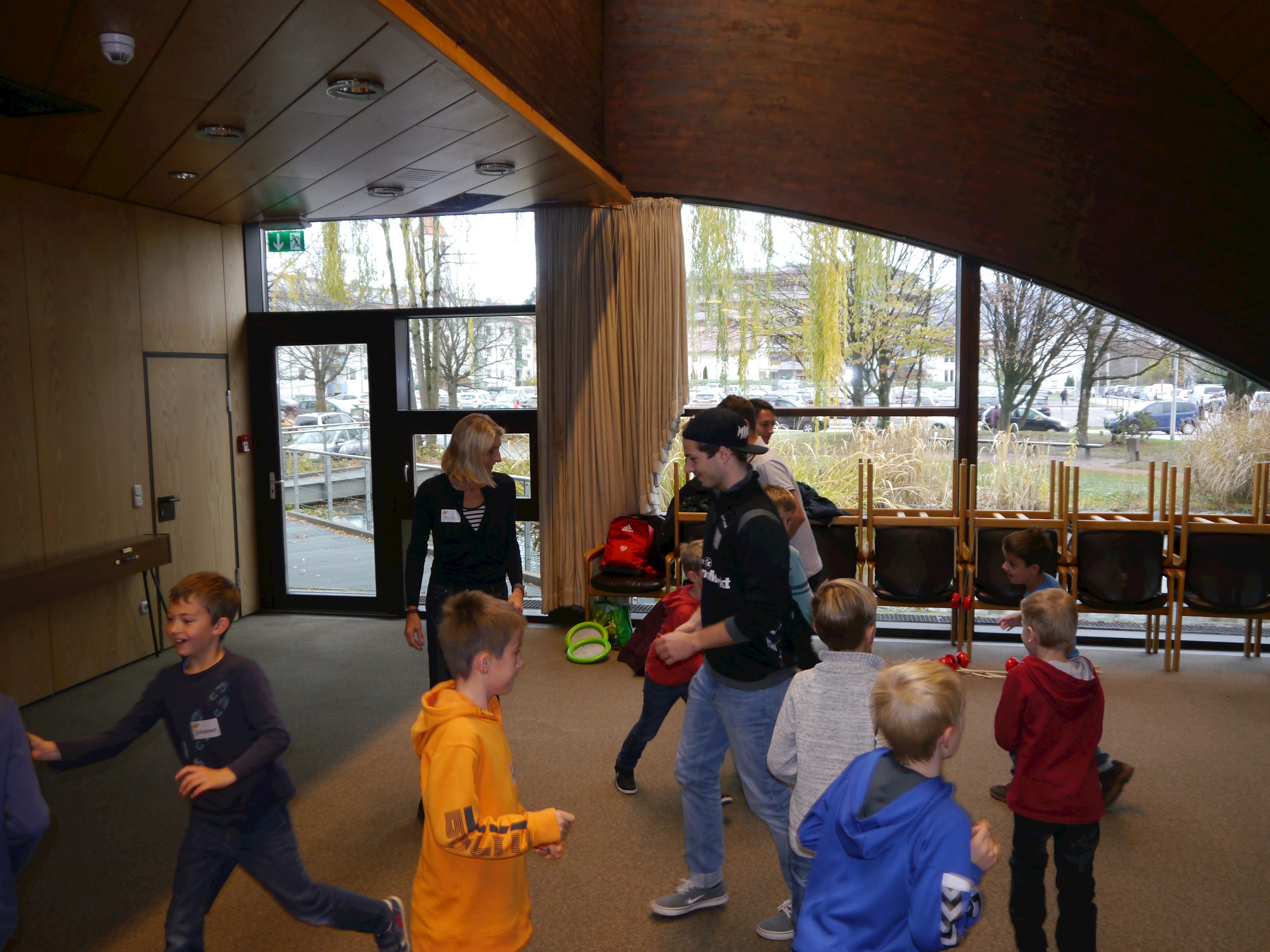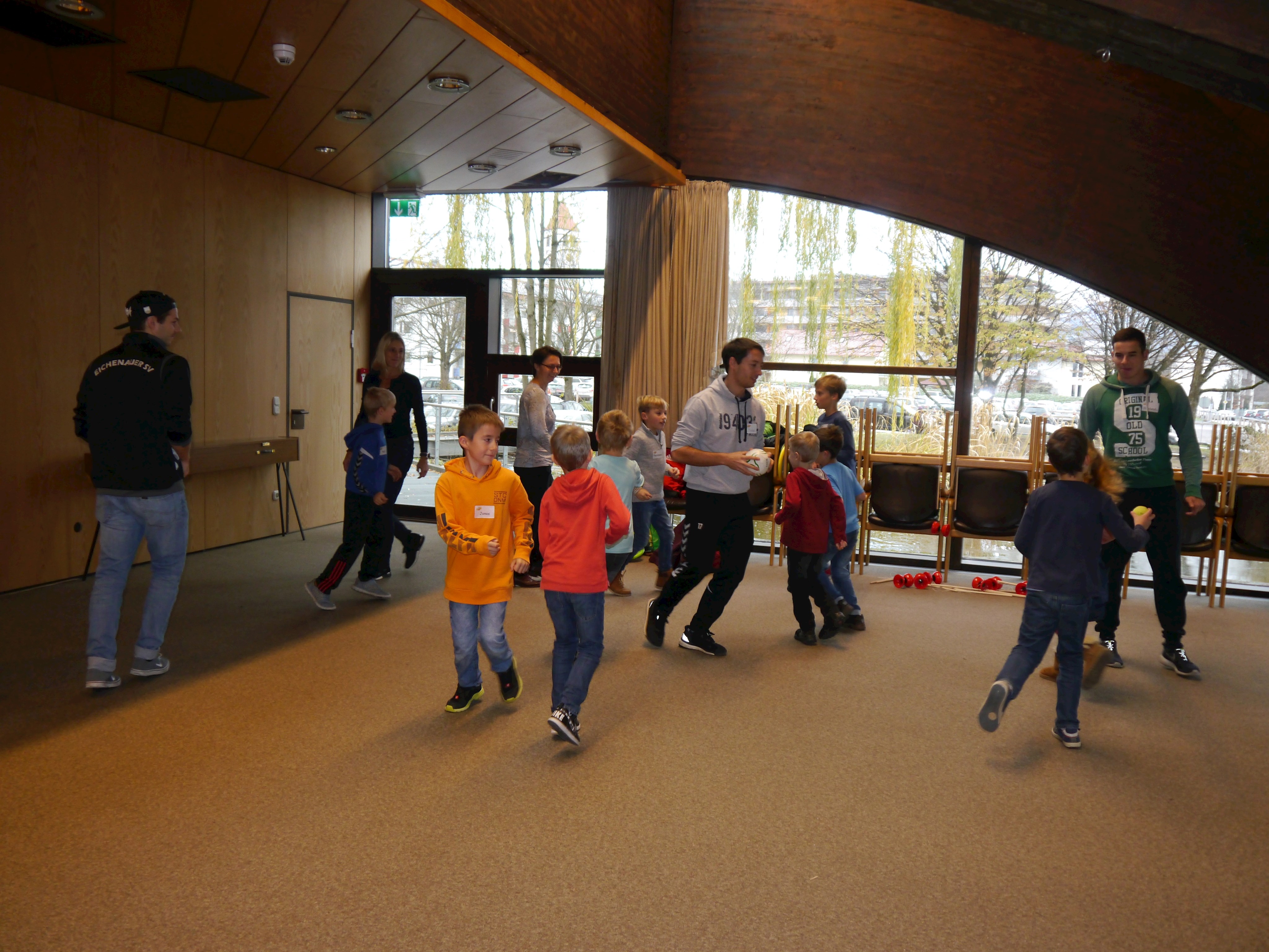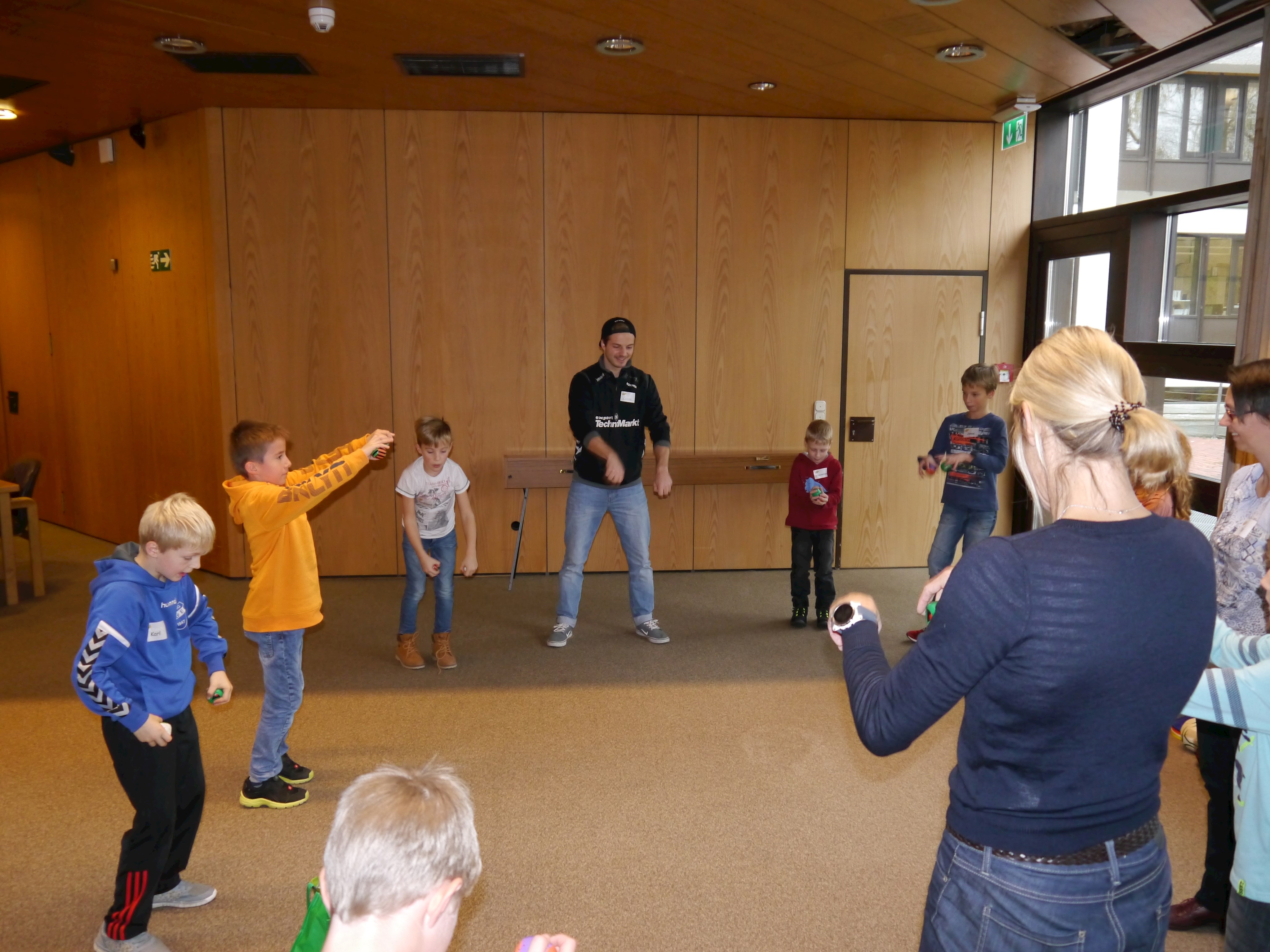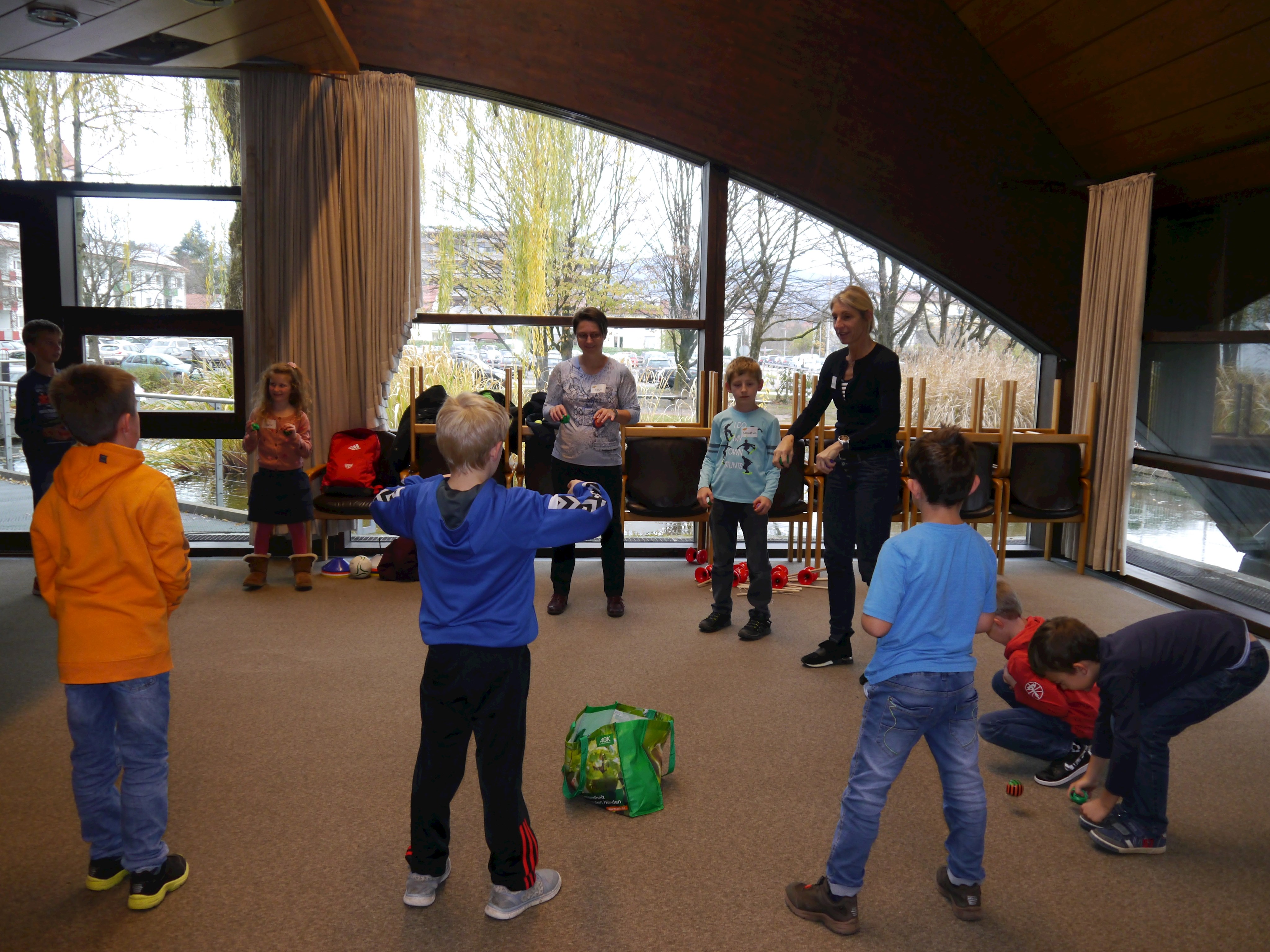 Eine andere Gruppe widmete sich Bewegungs- und Koordinationsspielen unter dem Motto „Bewegung macht Spaß“ . Durch Studenten für Angewandte Sportwissenschaften der TH Deggendorf und Renate Wasmeier, Projektmitarbeiterin Netzwerkarbeit Schule, Bildung und Sport, wurden die Kinder mit viel Spaß und Freude an die Bewegung herangeführt.