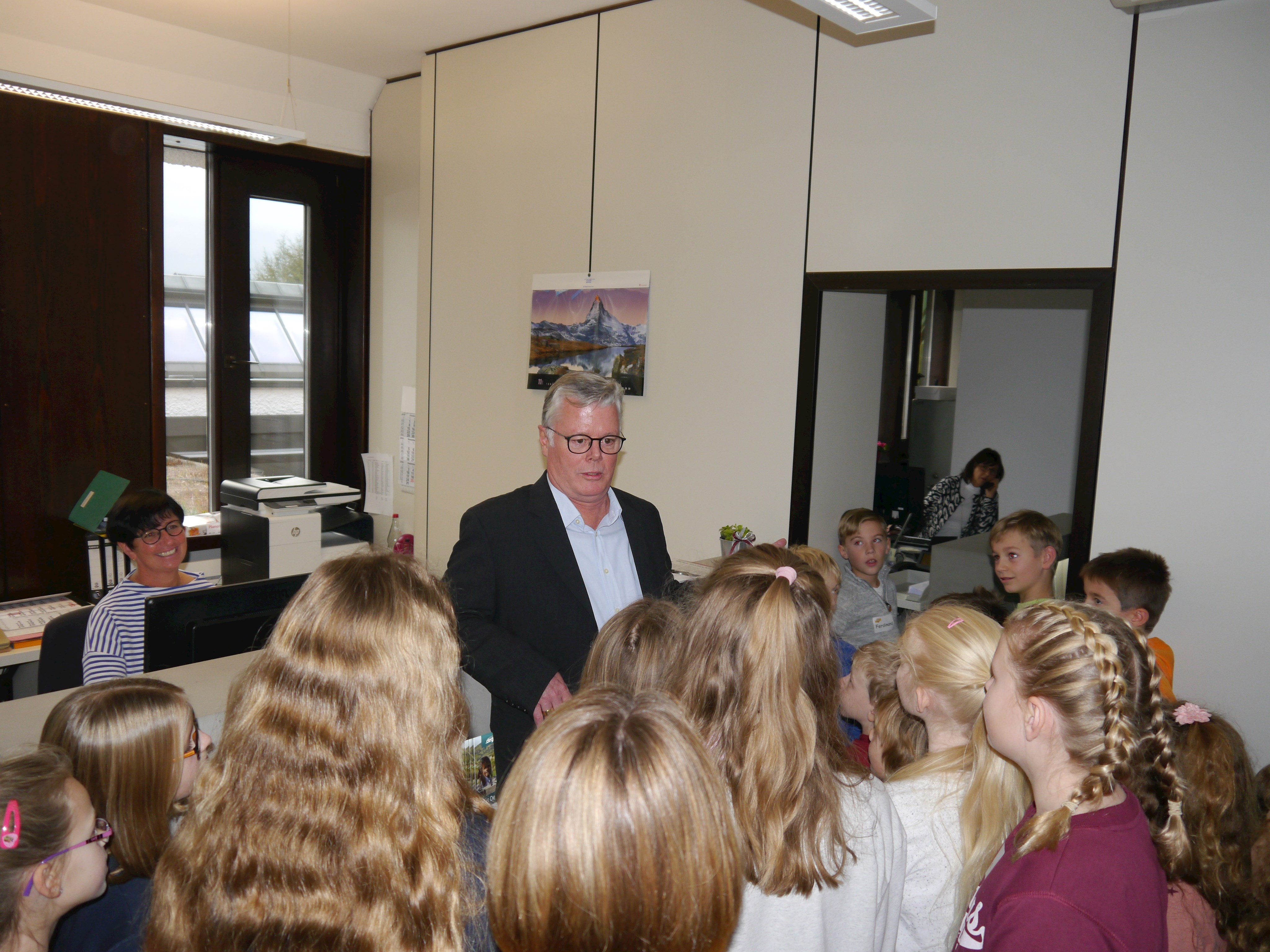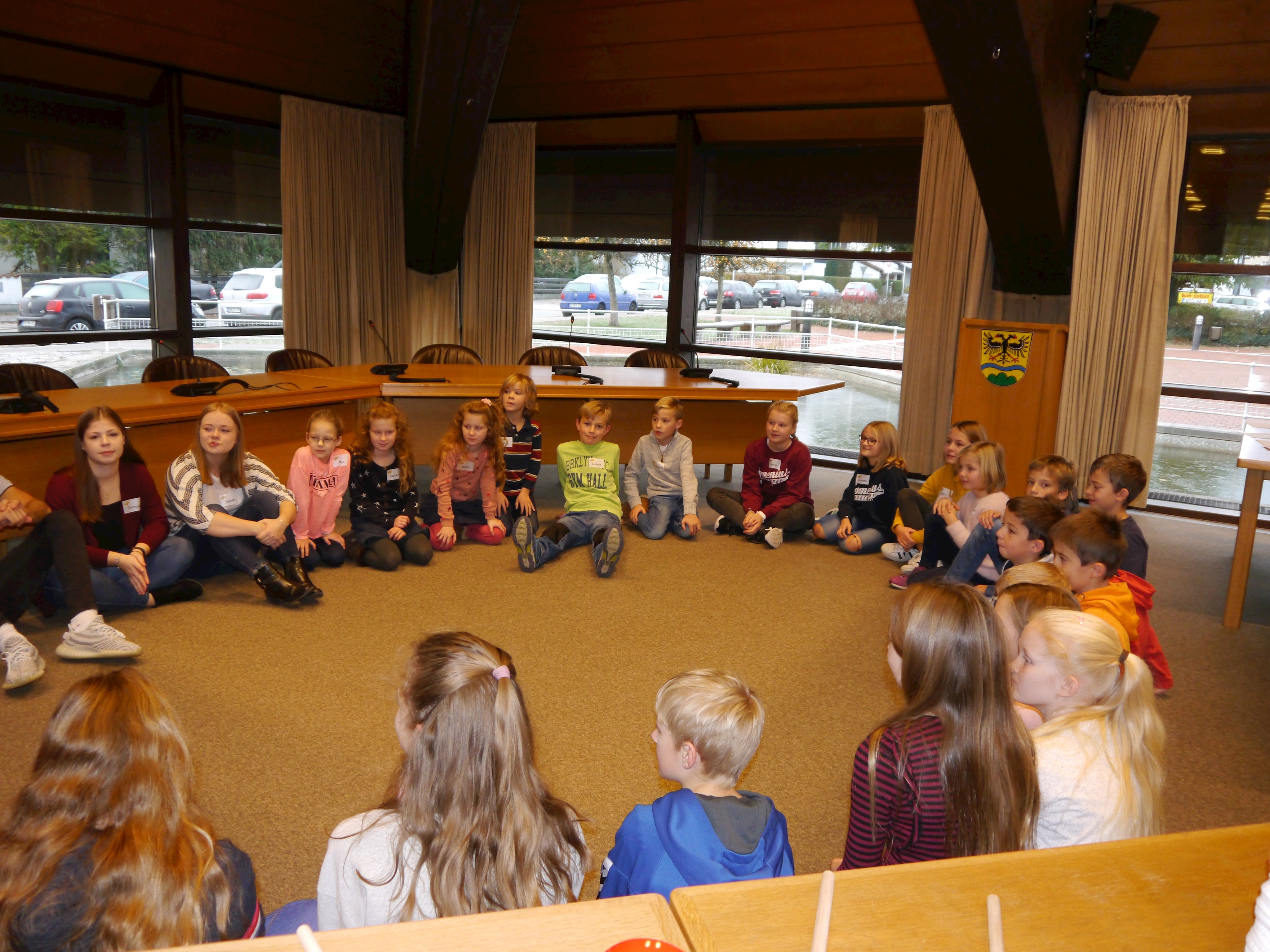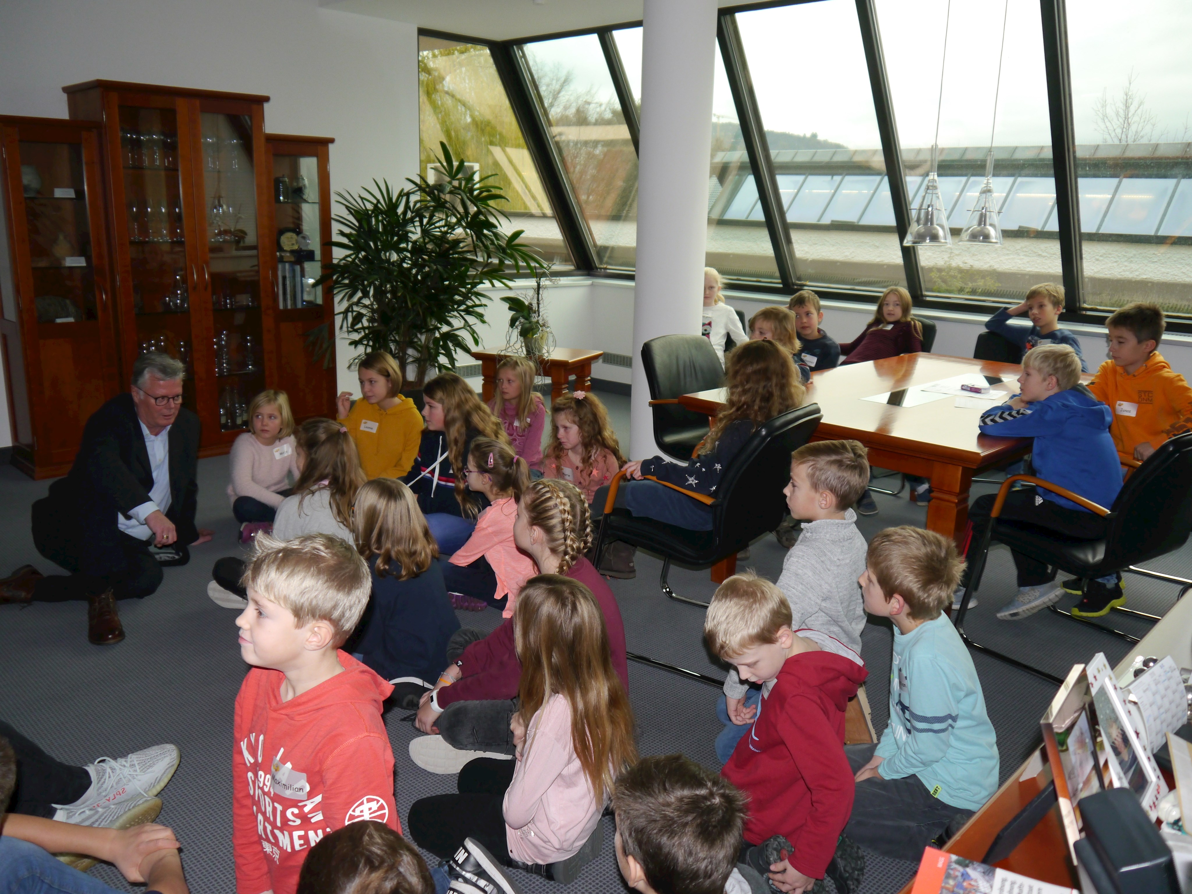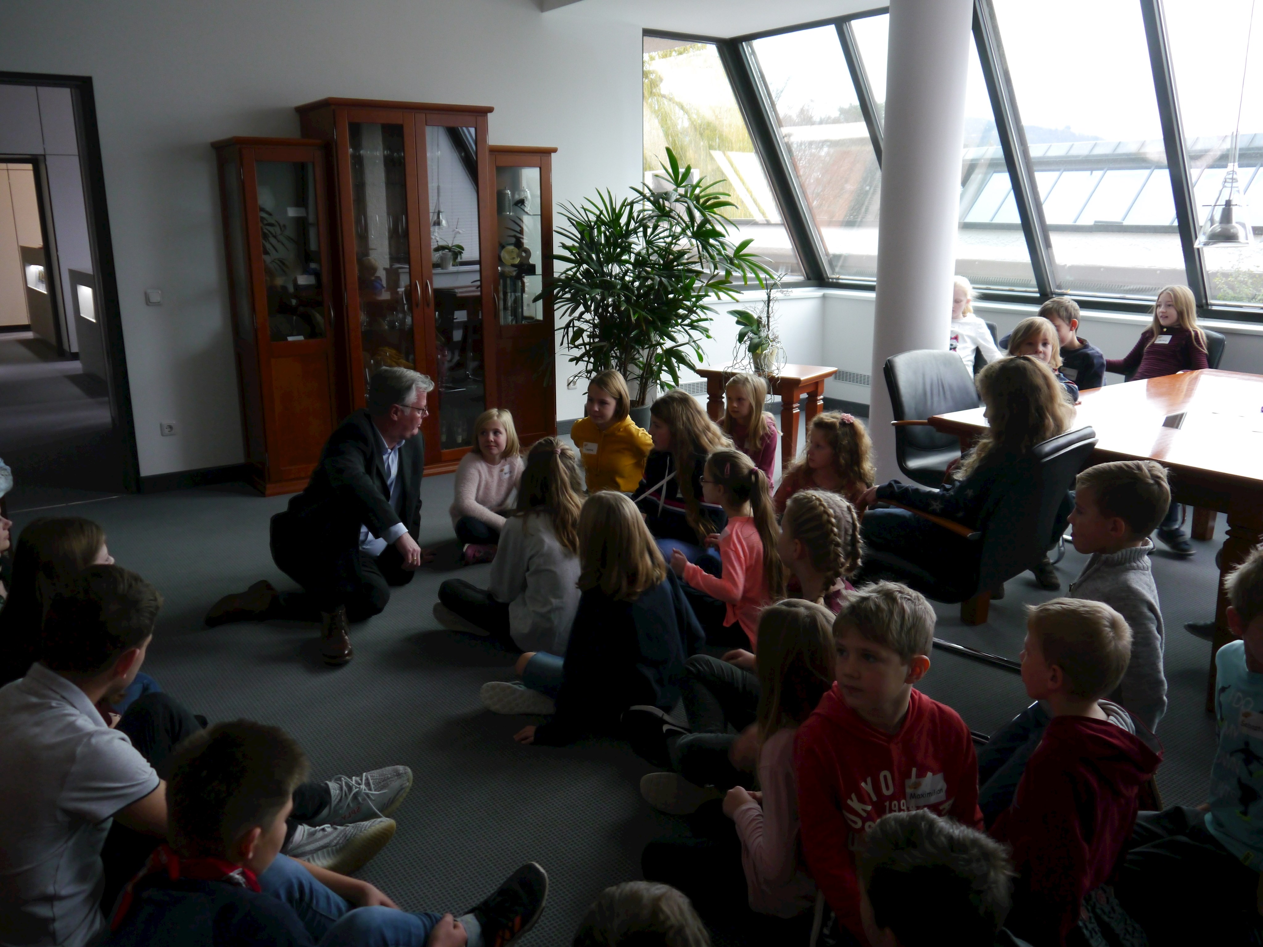 Dieser startete mit Kennenlern- und Auftauspielen. Anschließend begrüßte stellv. Landrat Roman Fischer die Kinder im Dienstzimmer des Landrates und erklärte, locker mit den Kindern am Boden sitzend, was so ein Landrat den Tag über zu erledigen hat. Sichtlich vergnügt beantwortete der stellv. Landkreischef die vielen ungenierten Fragen der neugierigen jungen Besucher.