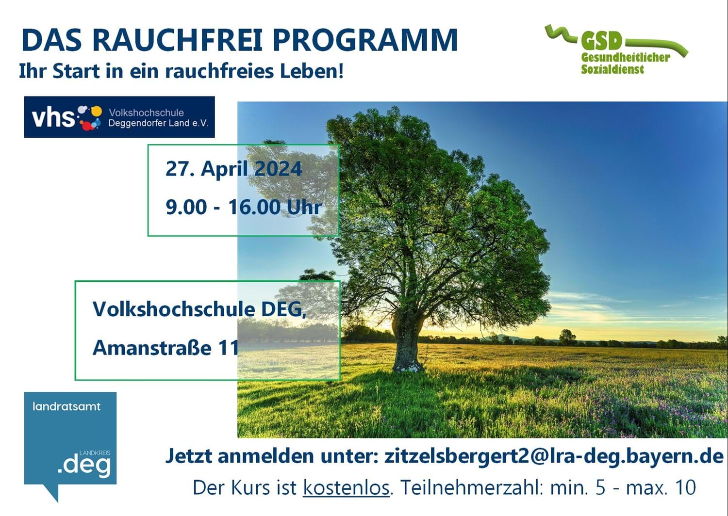Jetzt anmelden unter zitzelsbergert2@lra-deg.bayern.de