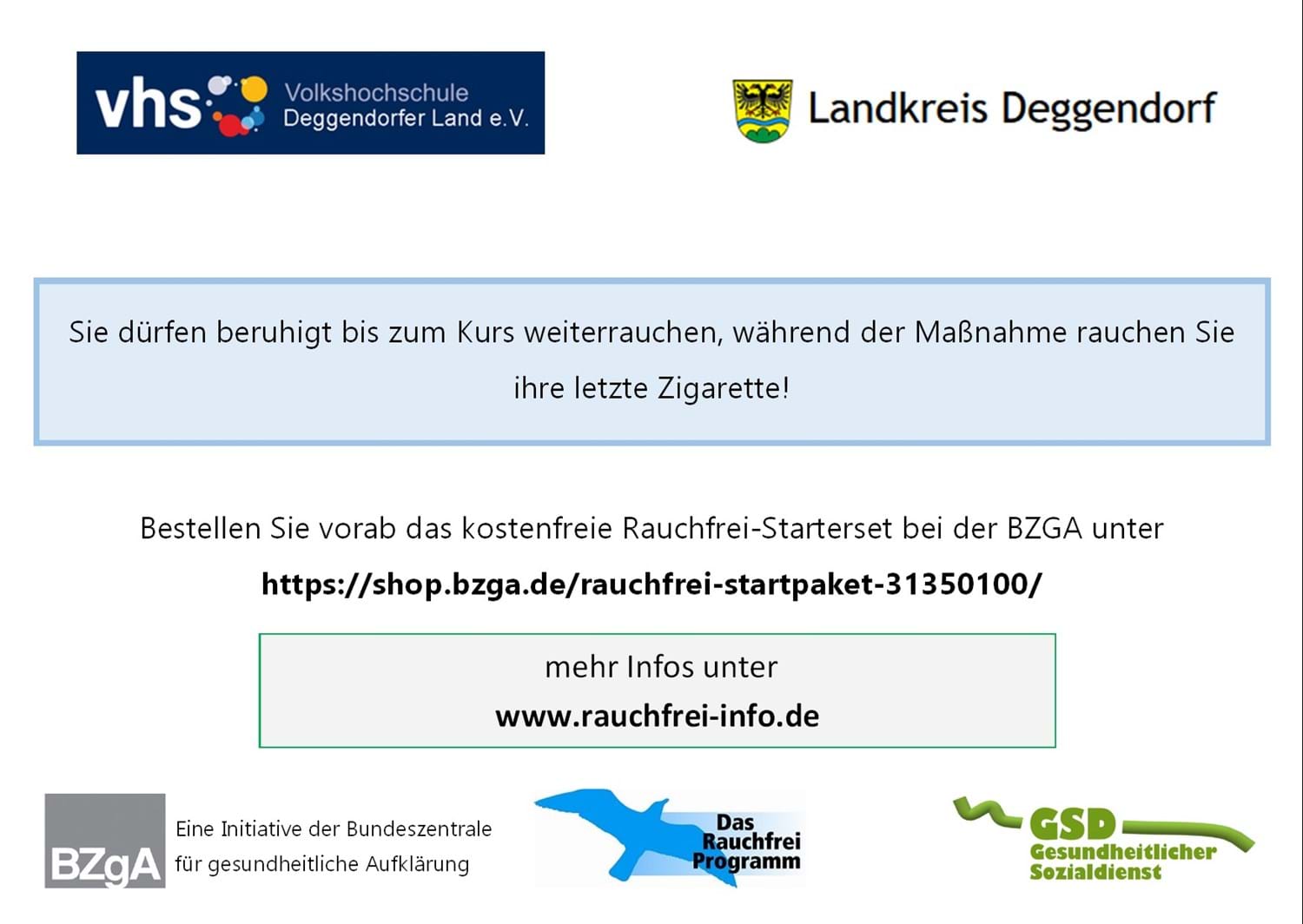 Bestellen Sie vorab das kostenfreie Rauchfrei-Sarterset bei der BZGA unter
