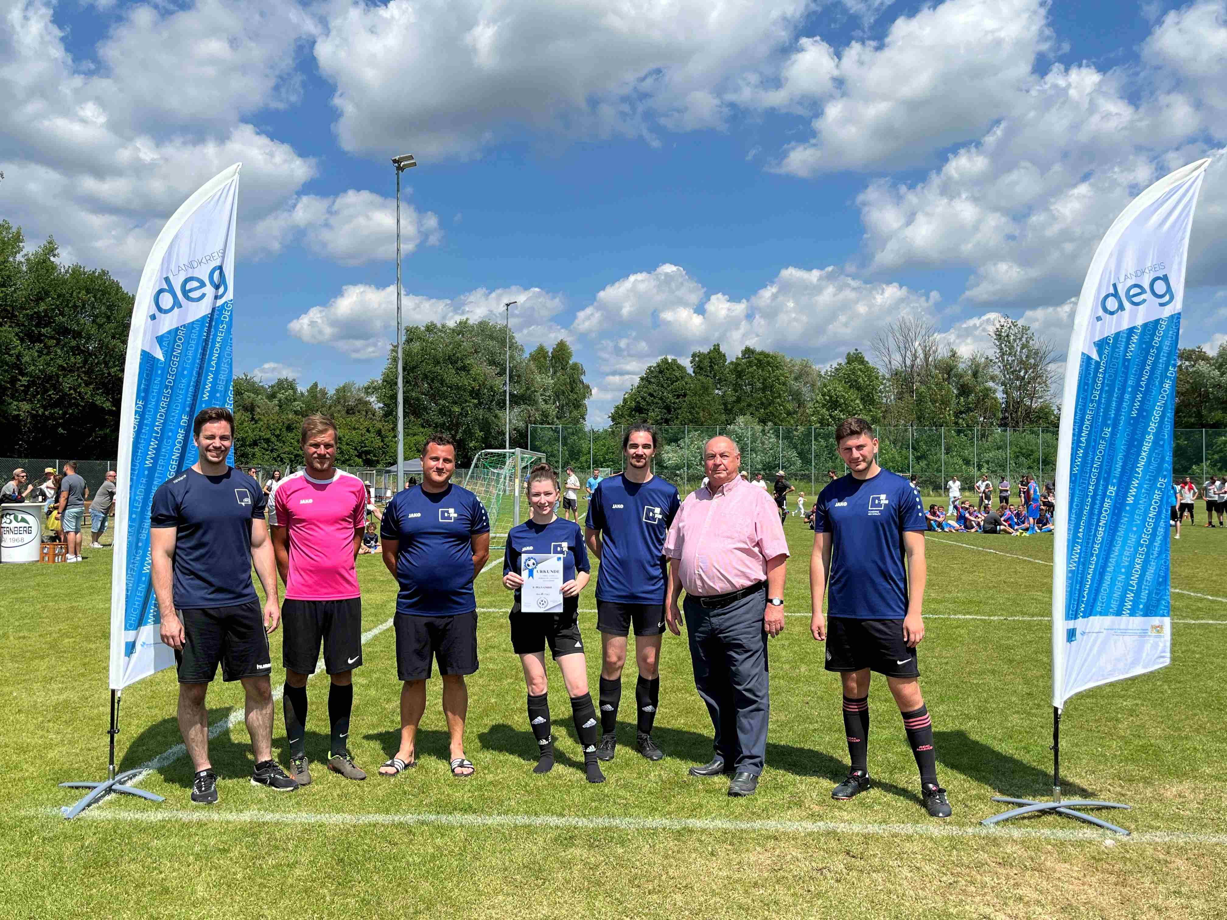 27.06.2023 Beim alljährlichen Landkreis-Firmen-Fußball-Turnier des Regionalmanagements Deggendorf traten 21 Mannschaften auf dem Sportplatz des TSV Natternberg gegeneinander an. Aber nur ein Team konnte sich den Titel holen: die Firma Streicher aus Deggendorf. Zahlreiche Unternehmen und Zuschauer aus der Region nutzten das Event zum Austausch und Kennenlernen im sportlichen Format.