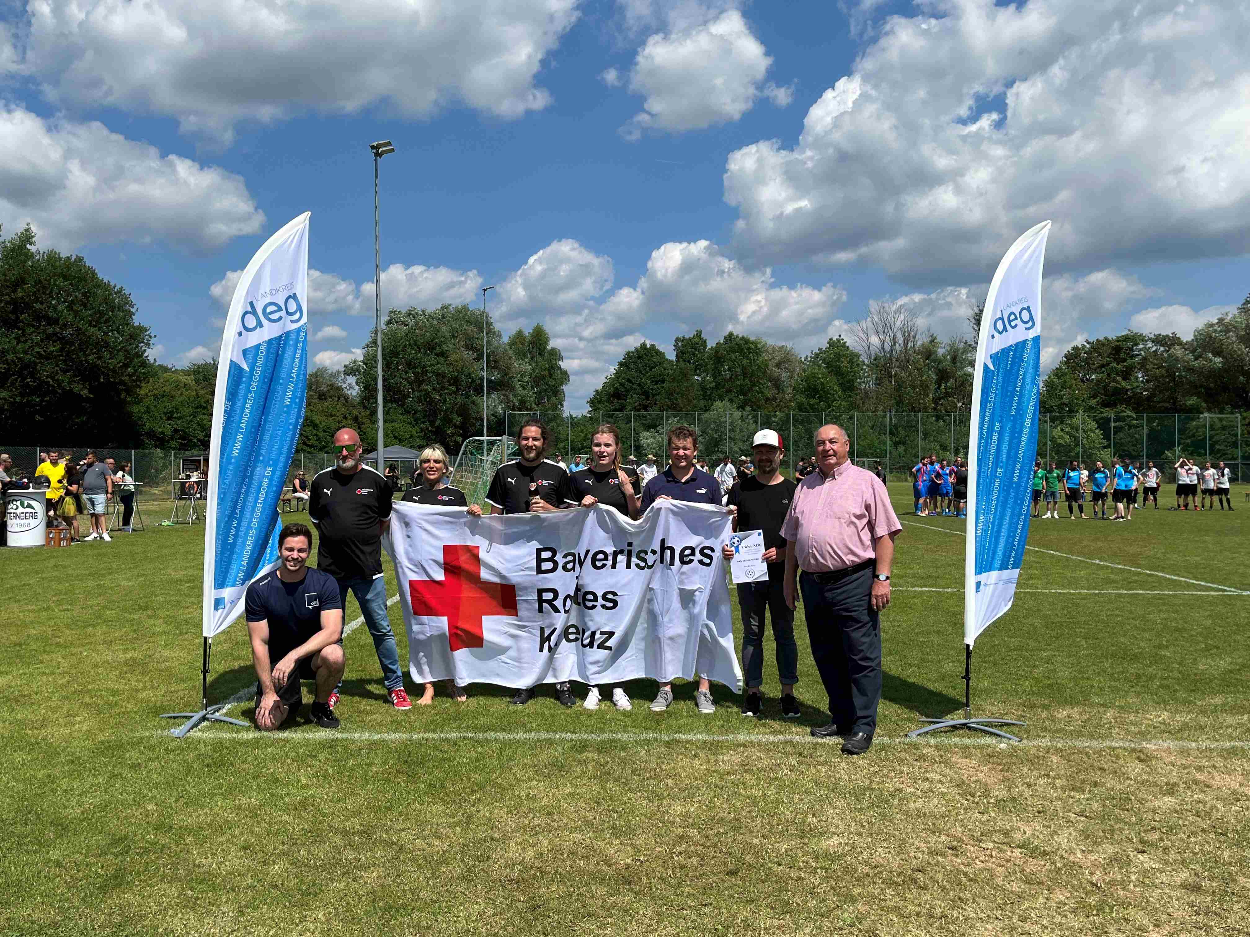 Bei der Siegerehrung gab es allerdings nicht nur Preise und Pokale für die drei Erstplatzierten, sondern auch für den besten Fanclub: wie im Vorjahr konnte der BRK Kreisverband Deggendorf nicht nur den größten, sondern auch den „lautesten“ Fanclub stellen. Gekürt wurden auch der beste Torschütze und die beste Torschützin: bei den Herren war Matthias Lauerer von der Firma Streicher mit insgesamt 9 Toren am erfolgreichsten. Bei den Frauen ging die Auszeichnung an Vanessa Groll vom Autohaus Greiner, die einen Treffer erzielen konnte.