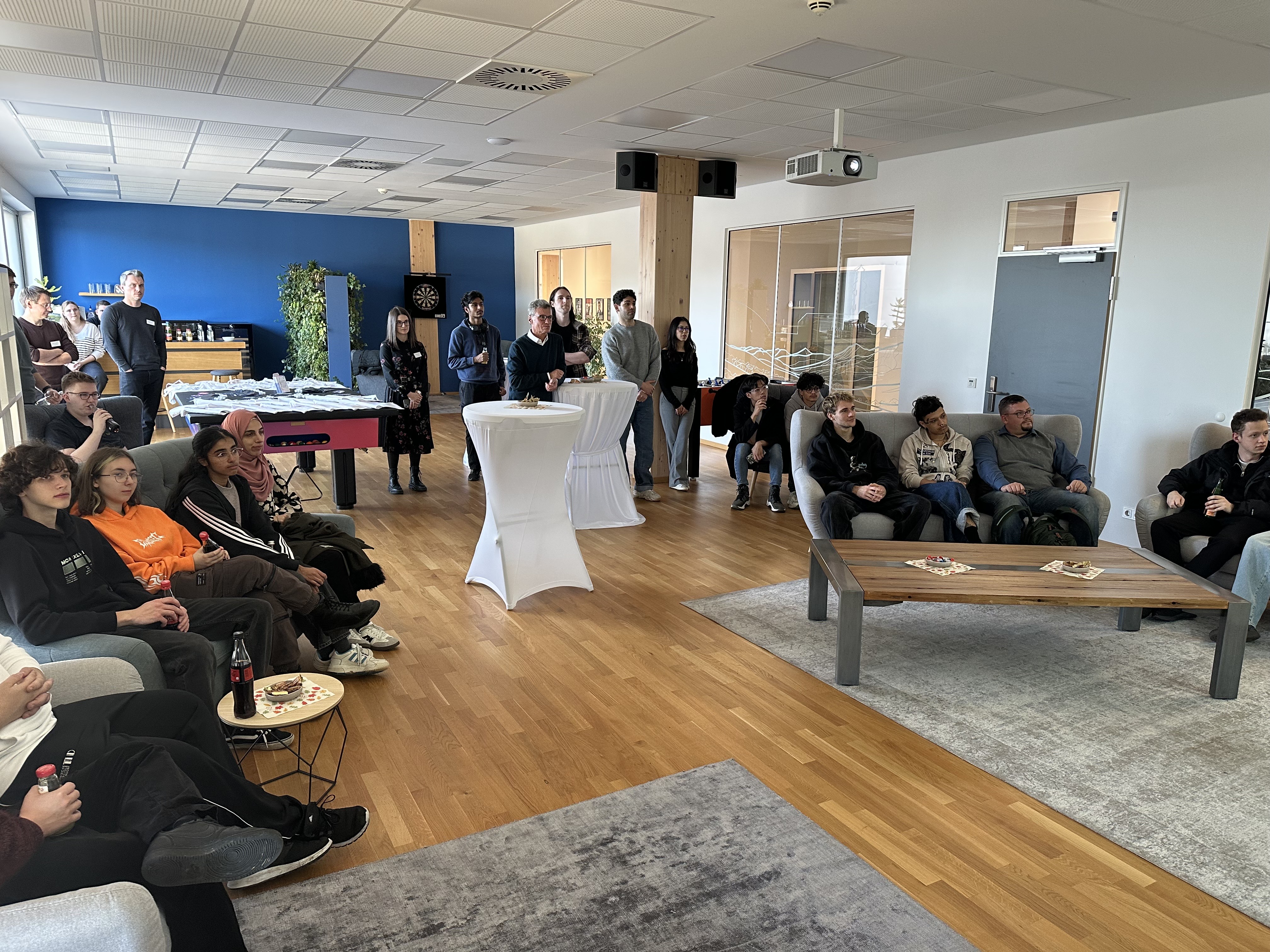 Landrat Bernd Sibler begrüßte die Studierenden persönlich bei der Firma dab und betonte die Bedeutung regionaler Karrierechancen für die Zukunft des Wirtschaftsstandorts Deggendorf.