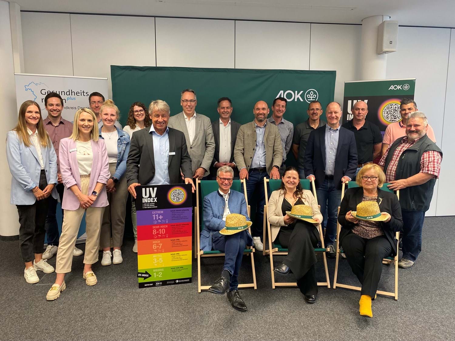 Deshalb fand am 22.05.25 in der AOK Deggendorf in Zusammenarbeit mit der GesundheitsregionPlus des Landkreises Deggendorf die Übergabe der UV-Tafeln an die Bürgermeister und Vertreter der Städte bzw. Gemeinden mit Freibadbetrieb statt. Landrat Berndl Sibler machte in seiner Rede die Wichtigkeit des Themas „Hitzeschutz“ nochmal deutlich: „Der richtige Sonnenschutz und viel trinken ist im Sommer unerlässlich, auch um Spätfolgen unbedingt zu vermeiden. Gerade bei sommerlichen Freizeitaktivitäten, wie beim Schwimmen im Freibad, muss besonders darauf geachtet werden“, so Sibler.