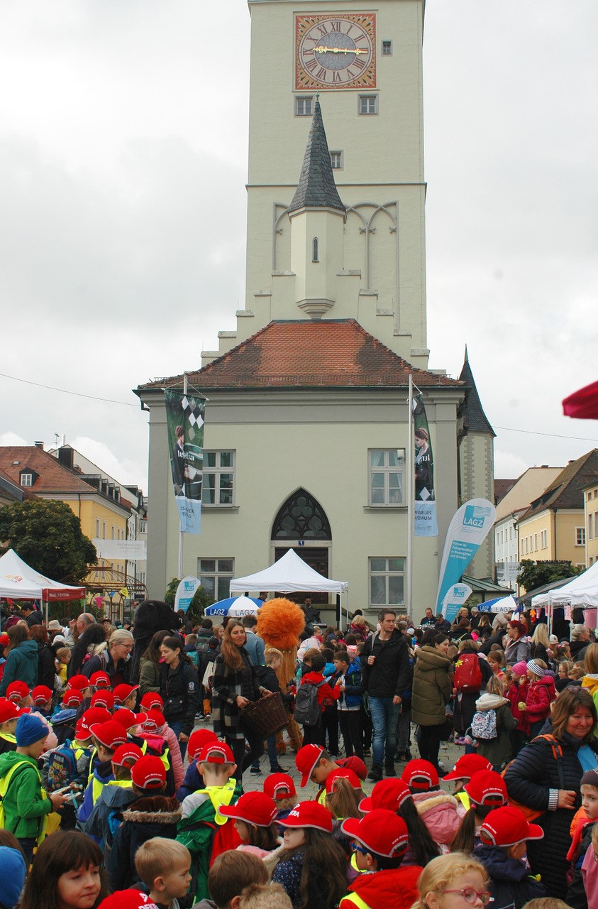 Rund 1200 Kita- und Grundschulkinder besuchten das Kinderfest der Bayerischen Landesarbeitsgemeinschaft Zahngesundheit (LAGZ) in Deggendorf. Der von Pavillons eingesäumte Obere Stadtplatz wurde für einen Vormittag zum Zentrum der Mundgesundheit.