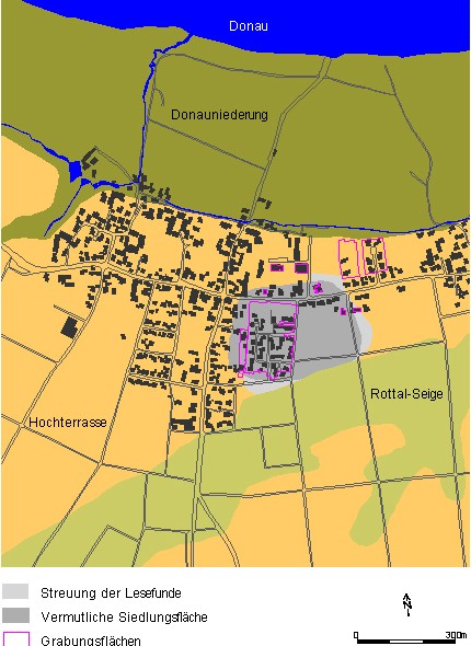 Im Jahre 1930 entdeckte Hanns Neubauer beim Bau des gegenüber des heutigen Rathauses gelegenen Lehrerhauses linienbandkeramische Scherben und belegte so die Existenz einer rund 7000 Jahre alten jungsteinzeitlichen Siedlung. Seit damals fügen sich Beobachtungen ehrenamtlicher Sammler und diverse Notgrabungen der Kreisarchäologie Deggendorf wie Mosaiksteine zueinander und lassen allmählich das Bild dieses „Urdorfs“ entstehen, das sogar namengebend für ein ganzes Neubaugebiet wurde.