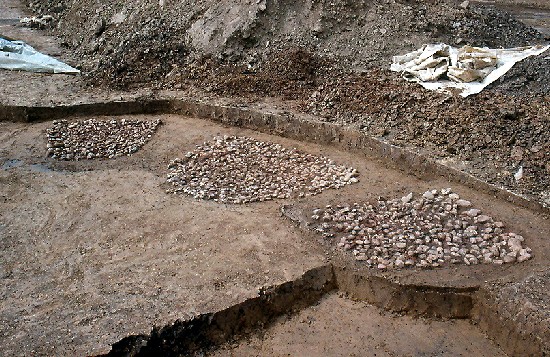 Die zeitliche „Tiefe“ der Dorfgeschichte spiegelt auch die Keramik deutlich wider. Charakteristisch für die frühe Zeit sind punktgefüllte Bänder, die der Kultur auch ihren Namen gaben, sogenannte „Notenkopfzier“ aus großen Tupfen auf Ritzlinien sowie derbe Fingertupfenreihen. Später kommen diverse Muster aus Ritzlinien und Stichen hinzu, am Ende dominieren barocke Muster, die oft rein in Stichtechnik ausgeführt sind.
