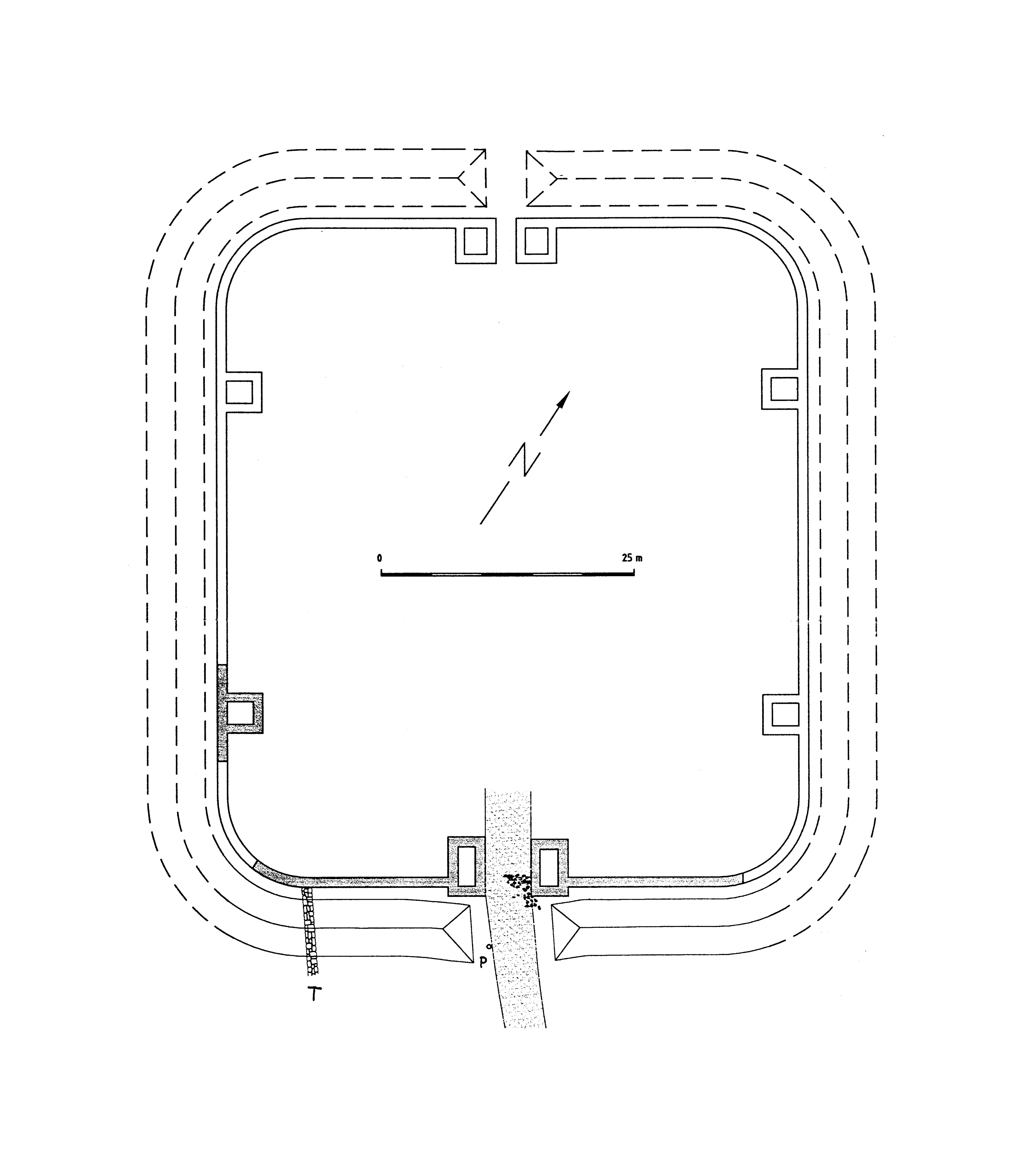 In einer Grabung auf dem Bauplatz des Feuerwehrhauses konnten 1987 die beiden äußeren Gräben der Befestigung erfasst werden, zusätzlich auch noch eine Grabenunterbrechung, hinter der größere Pfostengruben auf ein hölzernes Tor hinweisen. Im Spitzgraben, der noch eine Breite von 5 m und eine Tiefe von ca. 2 m aufwies, lagen auffallend viele Bruchsteine, die von den überlieferten Steinfundamenten stammen müssen.