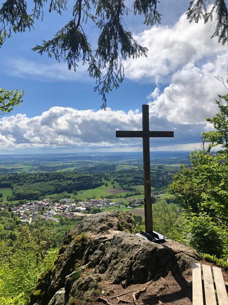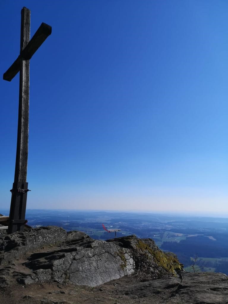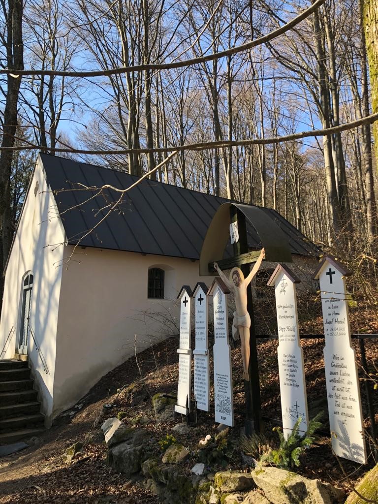 Ein herrliches Stück Weg vorbei an den einzelnen Anwesen hinauf in den schönen Mischwald wartet. Schilder „Kleiner Büchelstein“ zeigen den Abstecher zum Aussichtspunkt mit einem herrlichen Blick hinab nach Grattersdorf. Über den bewaldeten Büchelstein geht es schönen Vorplatz des großen Büchelsteins (836 m ü.NN) mit herrlichem Blick ins Donautal und zu den Bayerischen Alpen. Vorbei am Gut Oberaign geht es Richtung Kerschbaum. Am Ortseingang dem Wegweiser rechts zur Kapelle „Rastbuche“ folgen. Entlang des kleinen Kreuzweges geht es zurück nach Grattersdorf.