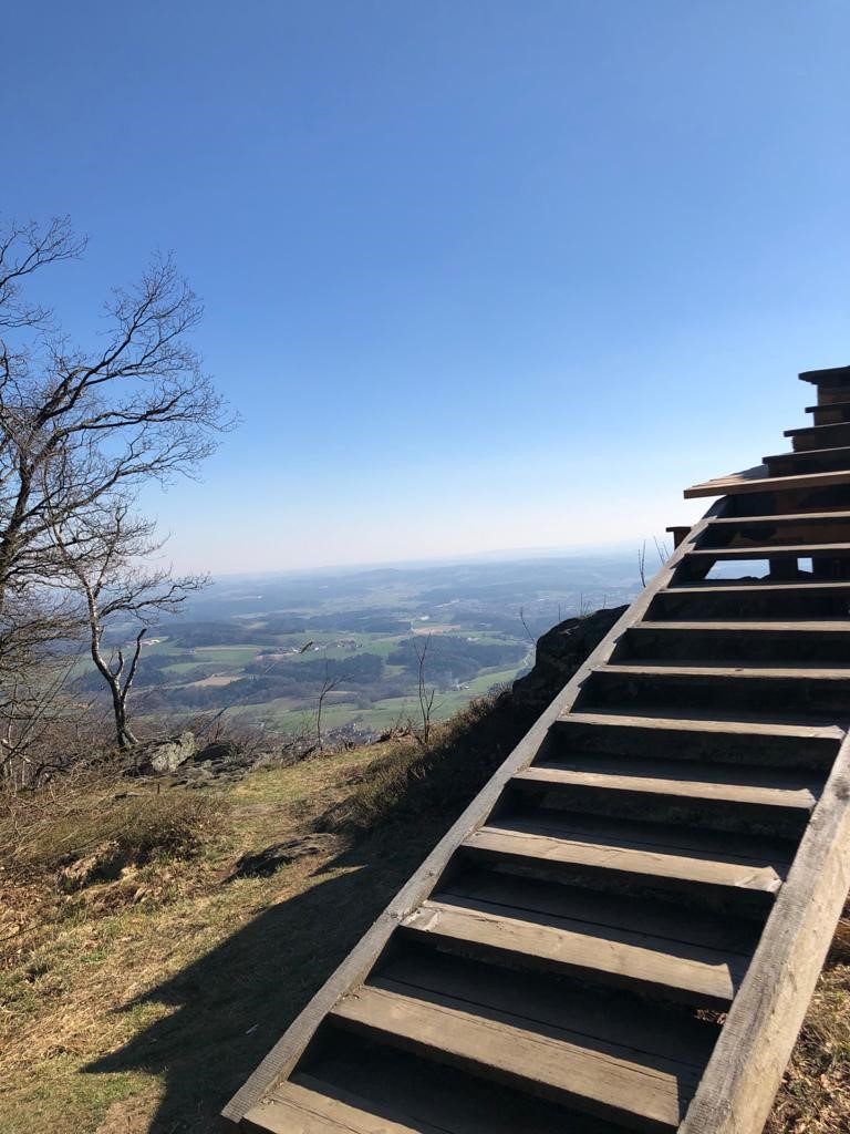 Vom Dorfplatz Grattersdorf geht es nach links in die Büchelsteiner Straße (Wanderweg 54) und mit stetigem Anstieg etwa einen 1km aus dem Ort hinaus, dann links zum kleinen Büchelstein abbiegen.