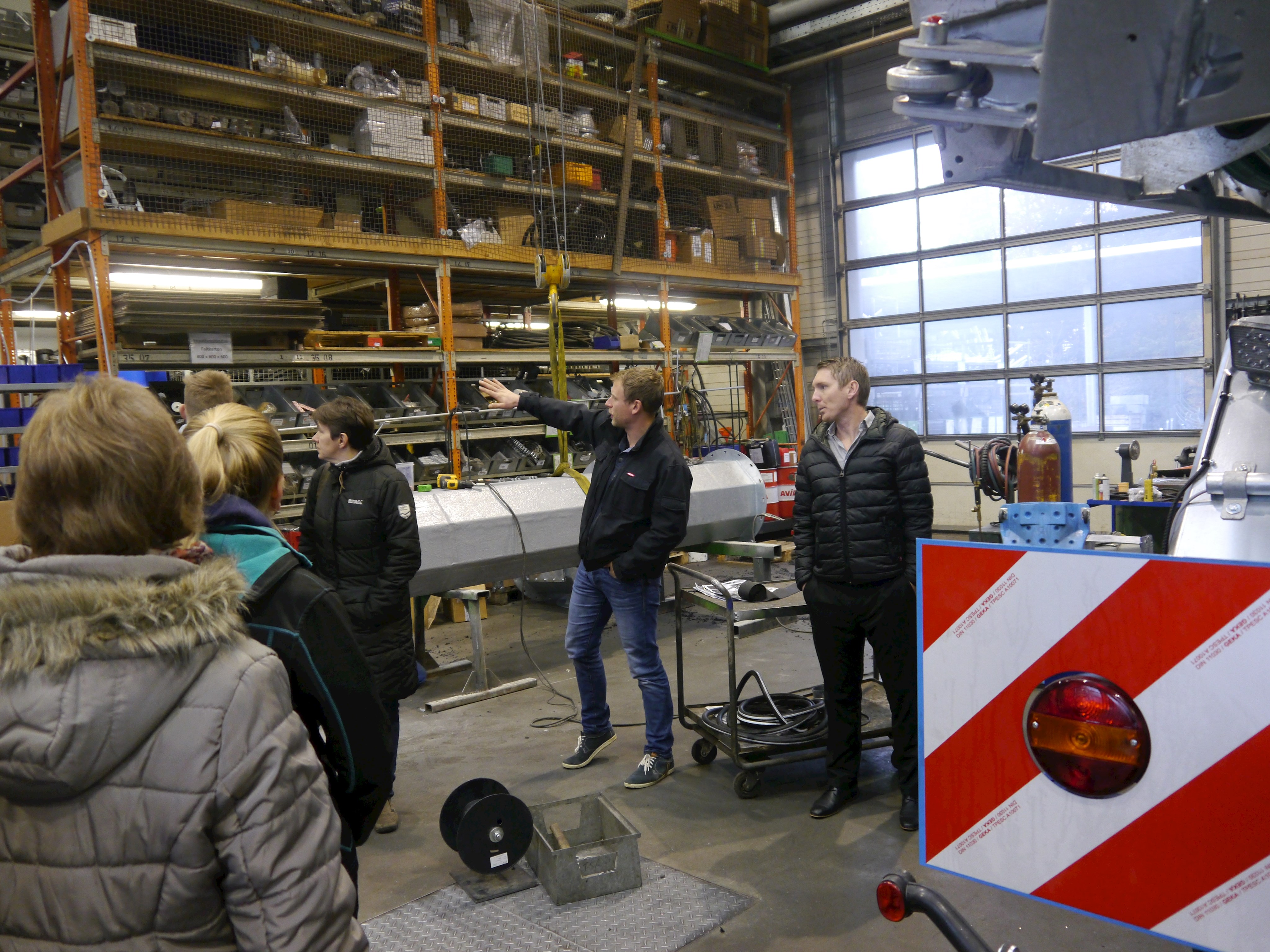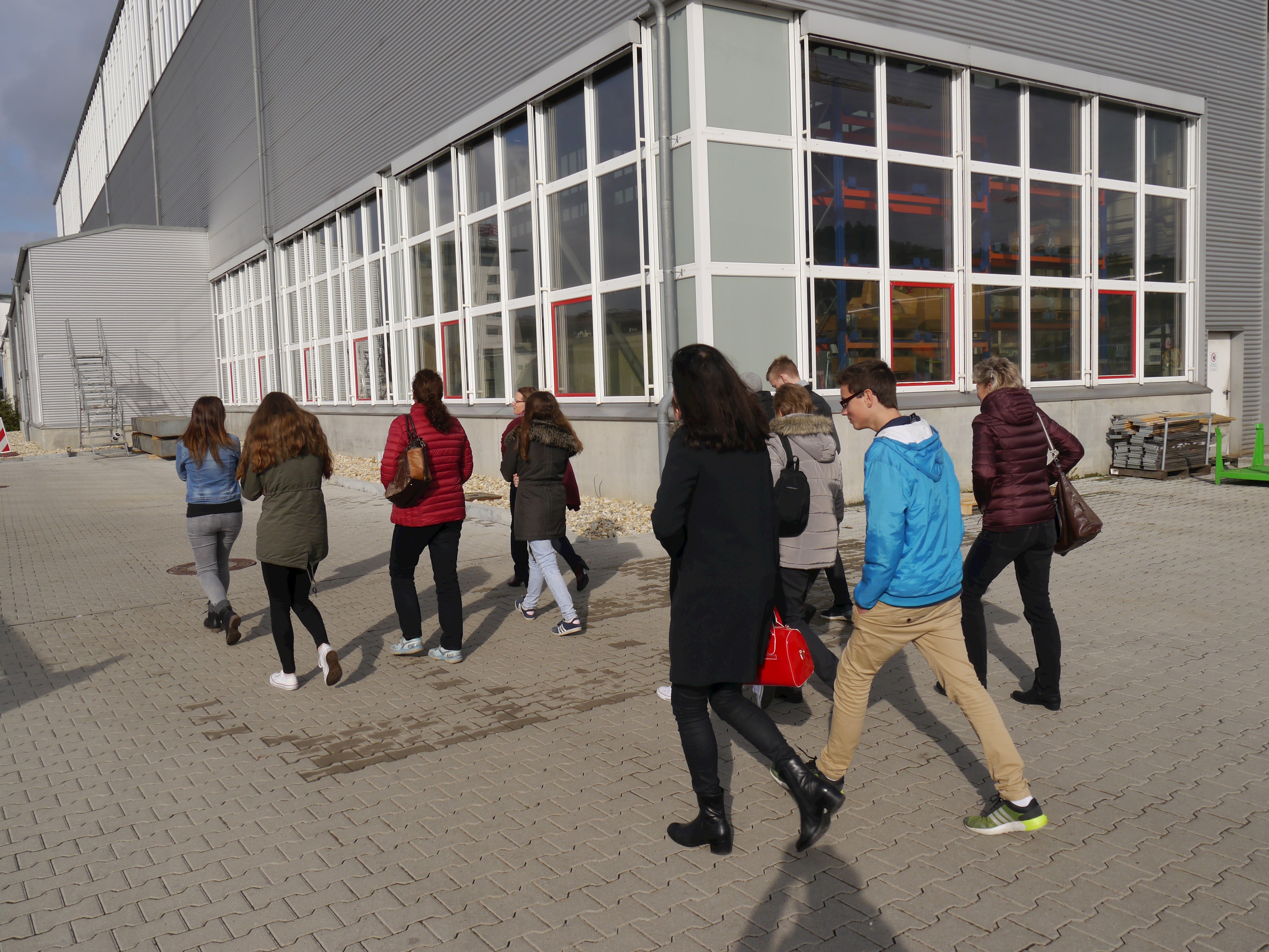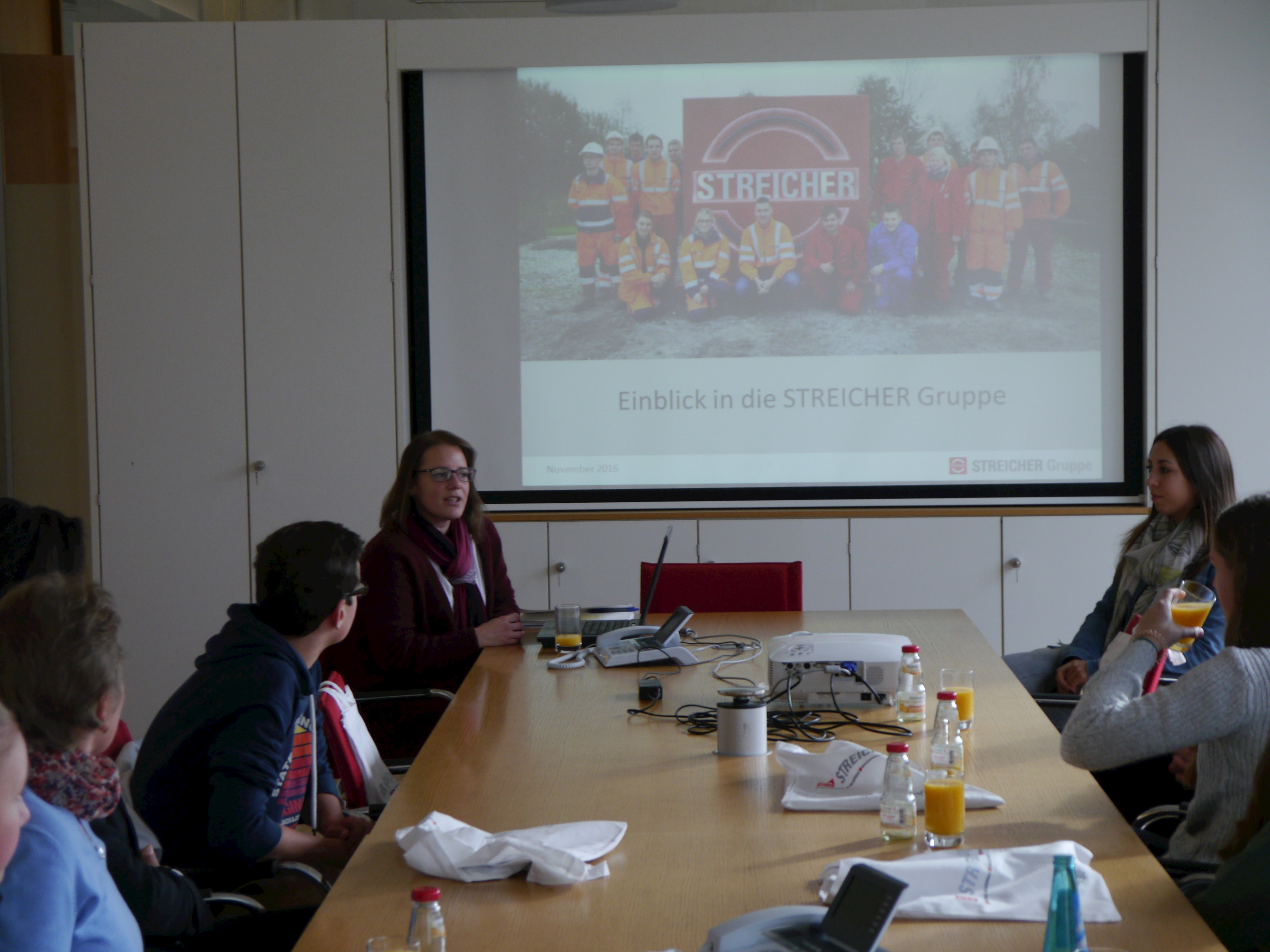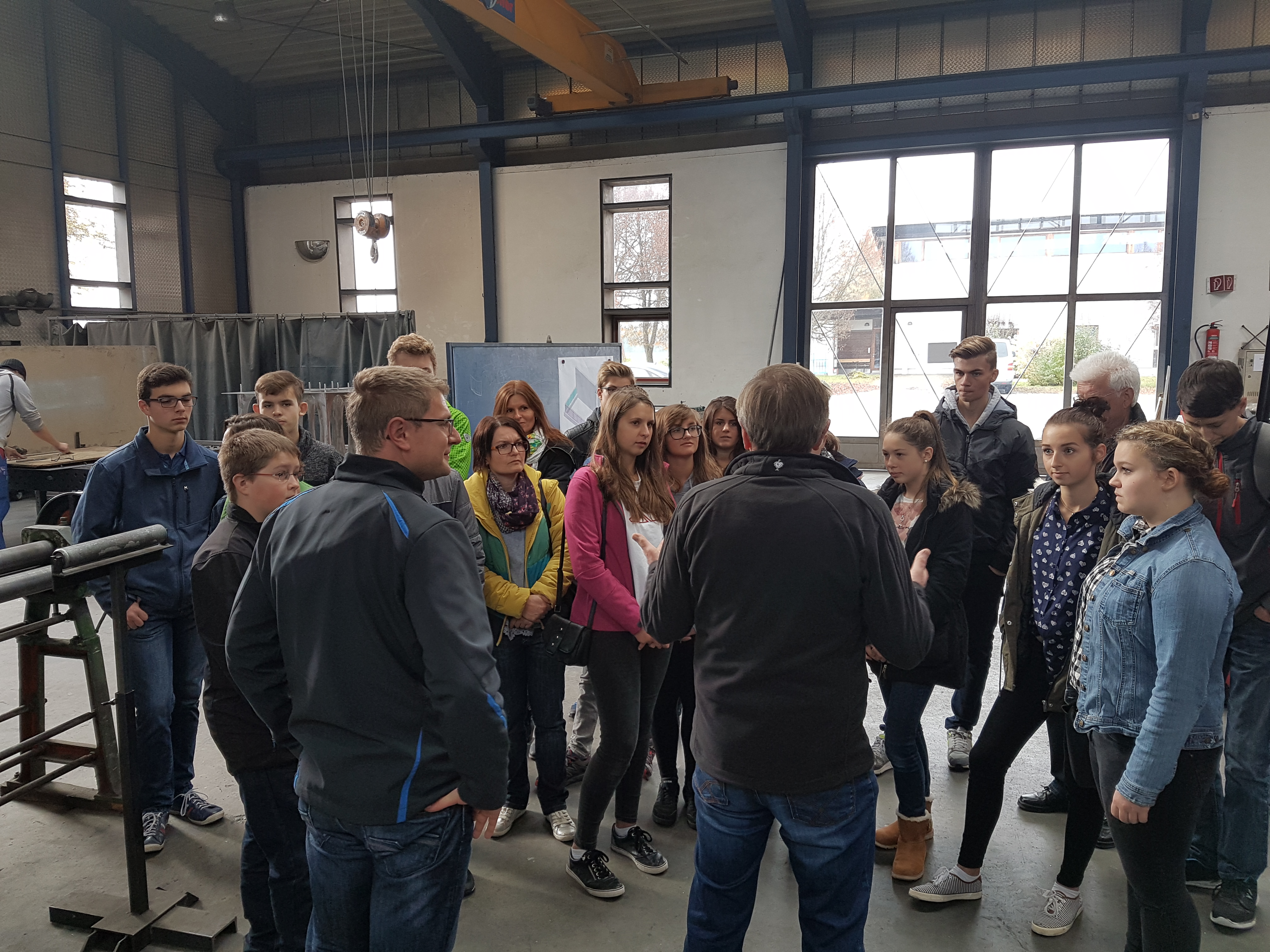 Der letzte Halt dieser Tour wurde in den neuen Hallen von Streicher in der Deggenau eingelegt. Begleitet von Kathrin Perl erkundeten die Schüler die neuen Hallen und besichtigten auch die dort eingerichtete Lehrwerkstatt. Wie vielfältig das Ausbildungsangebot bei Streicher ist und wie international Streicher aufgestellt ist, wurde bereits beim Gang durch die Hallen bewusst- und wurde beim anschließenden Vortrag im Besprechungsraum noch deutlicher: neben Straßenbau, Brückenbau und Rohrleitungsbau liegt ein weiterer Schwerpunkt der Firma in der Herstellung von Bohrtürmen, im Maschinenbau oder auch beim Bau von Achterbahnen. Dabei hat die Firma die Bindung zur Region nie verloren und agiert von Deggendorf aus weltweit.