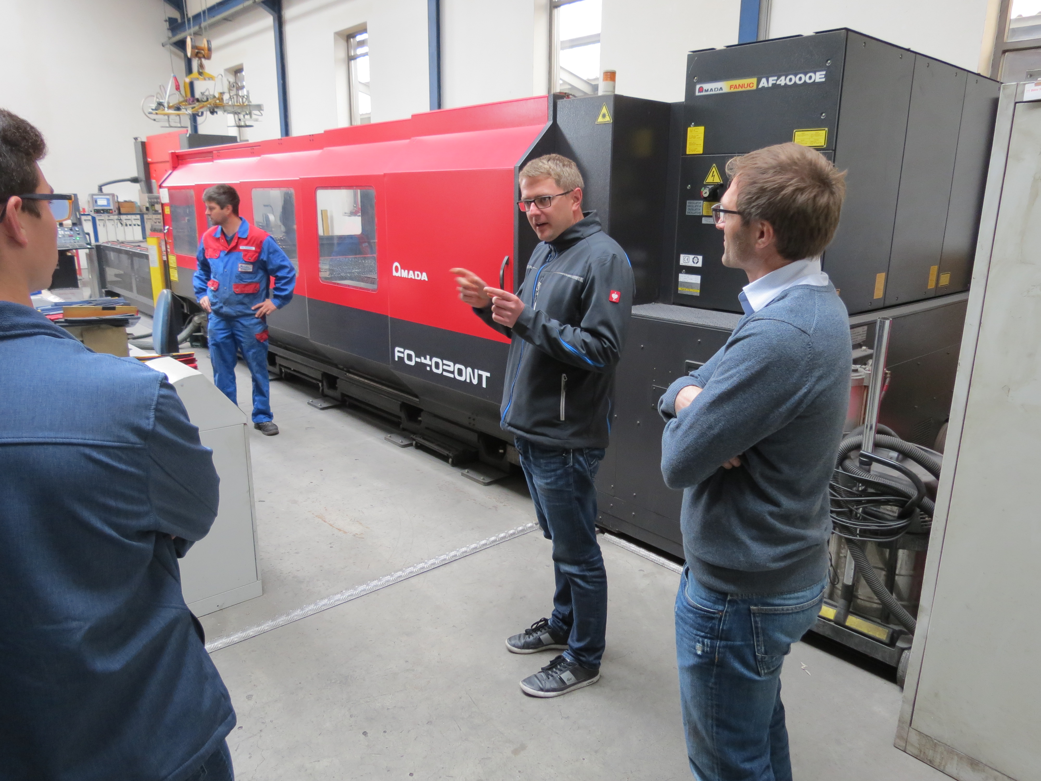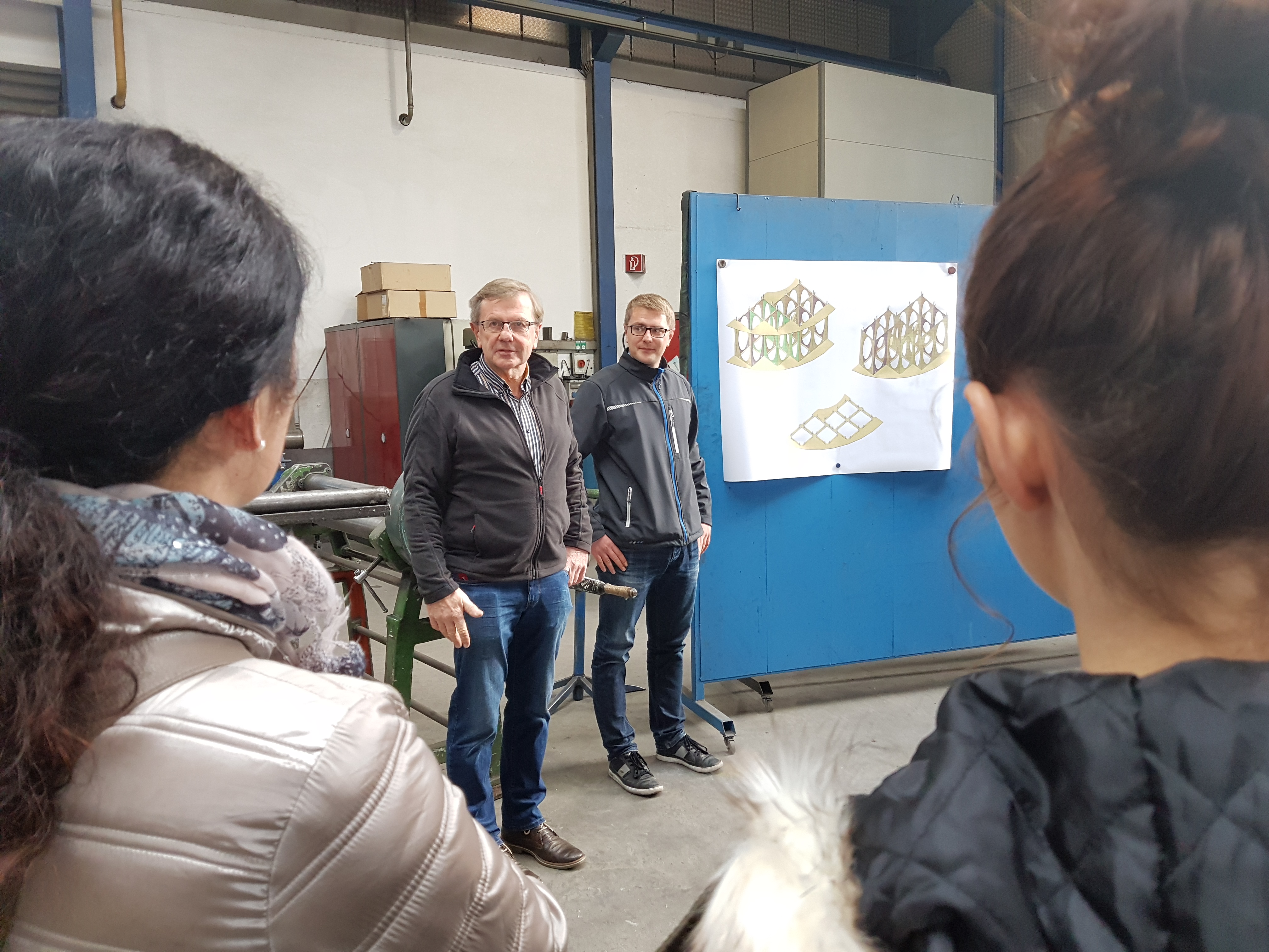 Metallverarbeitende Betriebe bilden einen Schwerpunkt der Wirtschaft im Landkreis Deggendorf. Deshalb steuerte der zweite Bus unter der Leitung von Regionalmanager Herbert Altmann zu Beginn die Firma Metallbau Voggenreiter in Niederalteich an. Der mittelständische Handwerksbetrieb wurde 2004 von Michael Voggenreiter in 2. Generation übernommen. Er und sein Vater Josef, der Gründer der Firma zeigten den Teilnehmern, wie sich die Firma Voggenreiter in der Branche einen guten Ruf erarbeitete: mit viel Begeisterung, fundierten Können, den Blick über den Tellerrand, Vielseitigkeit und Flexibilität. Entsprechend gestaltet und organisiert ist bei Voggenreiter die Ausbildung zum Metallbauer. Zum Abschluss gab´s für jeden Teilnehmer ein Geschenk in Form eines vor ihren Augen vom Laser ausgeschnittenen und von Josef Voggenreiter gefalteten Doppeldeckers aus Edelstahl.