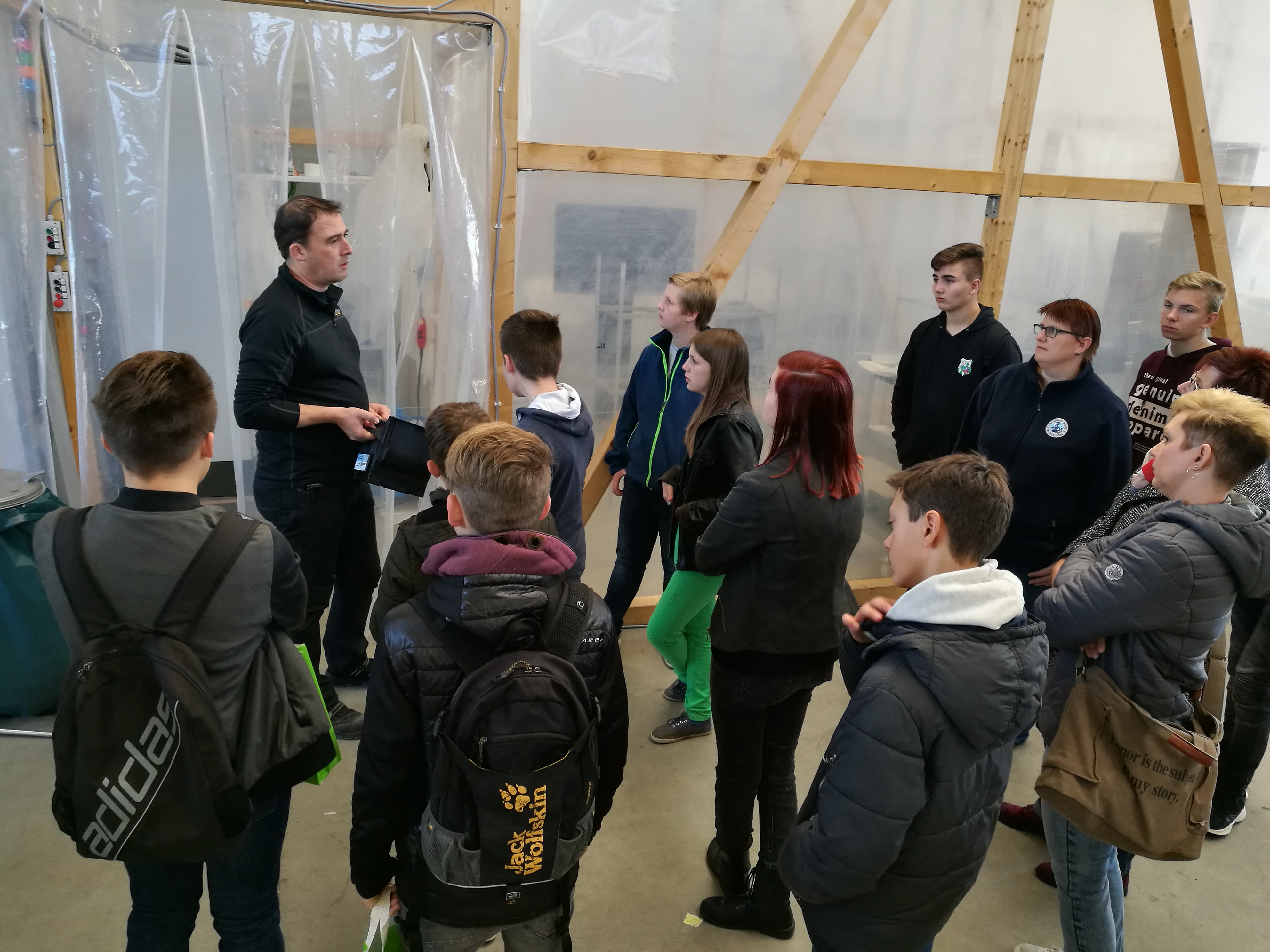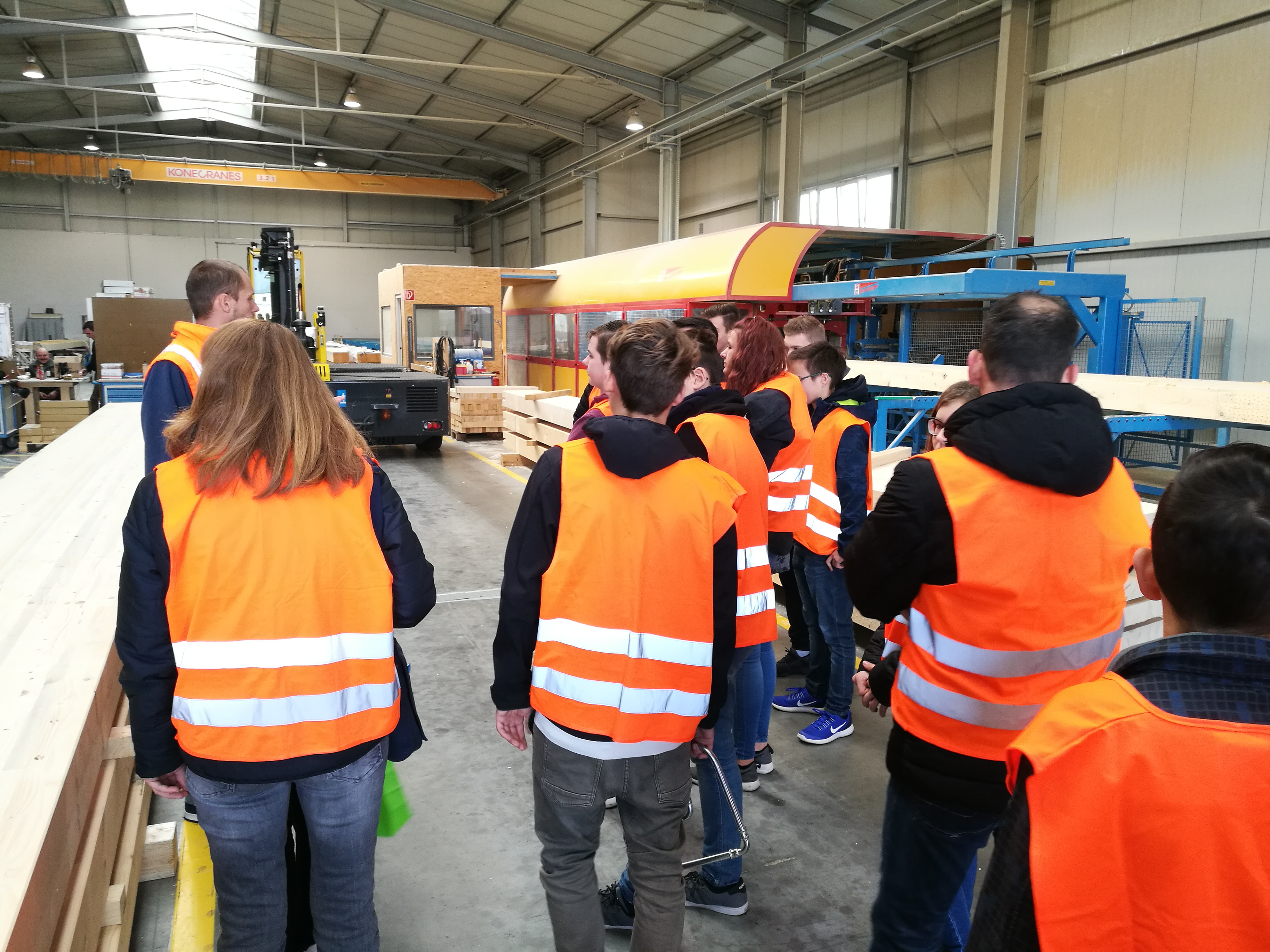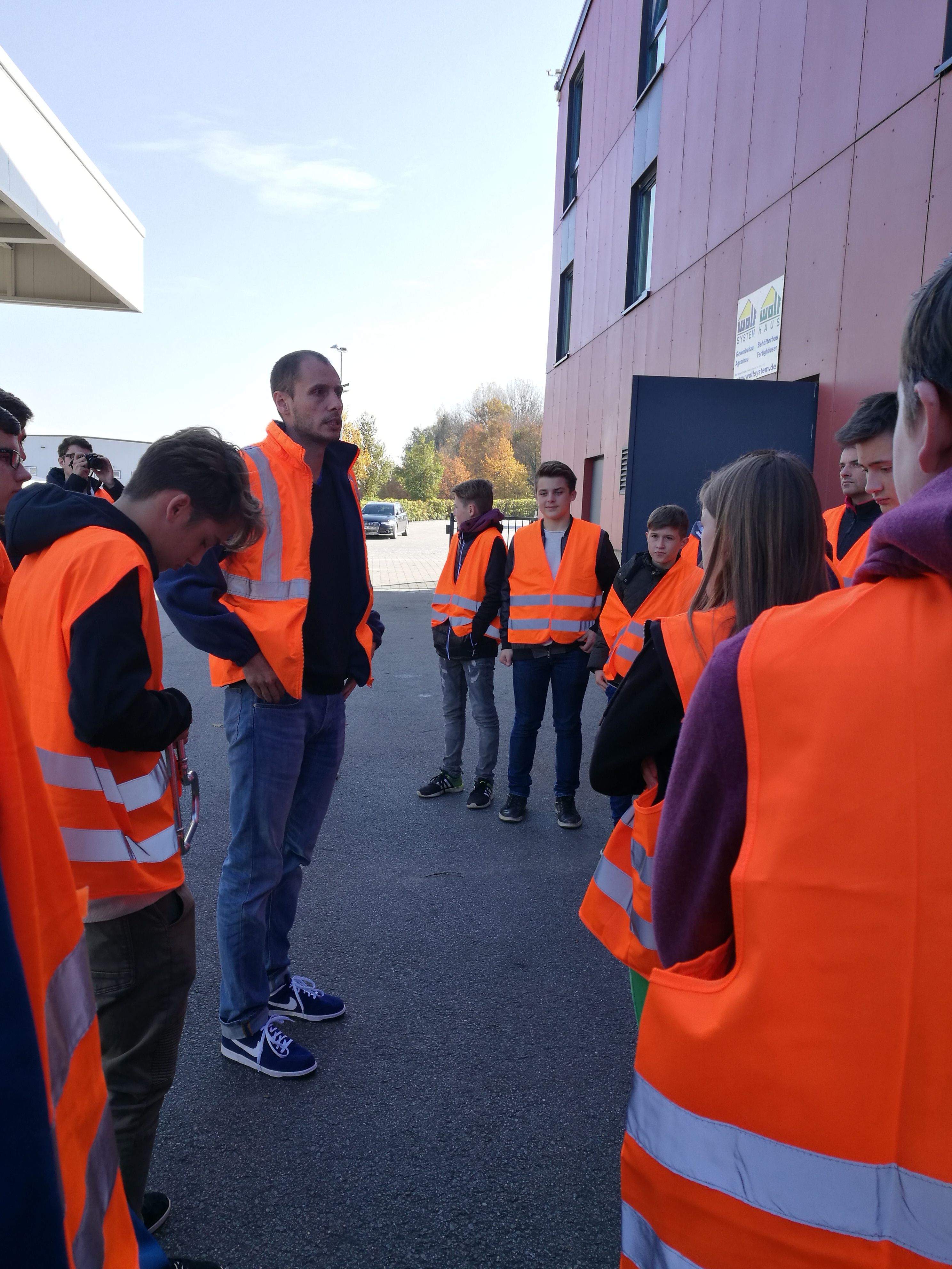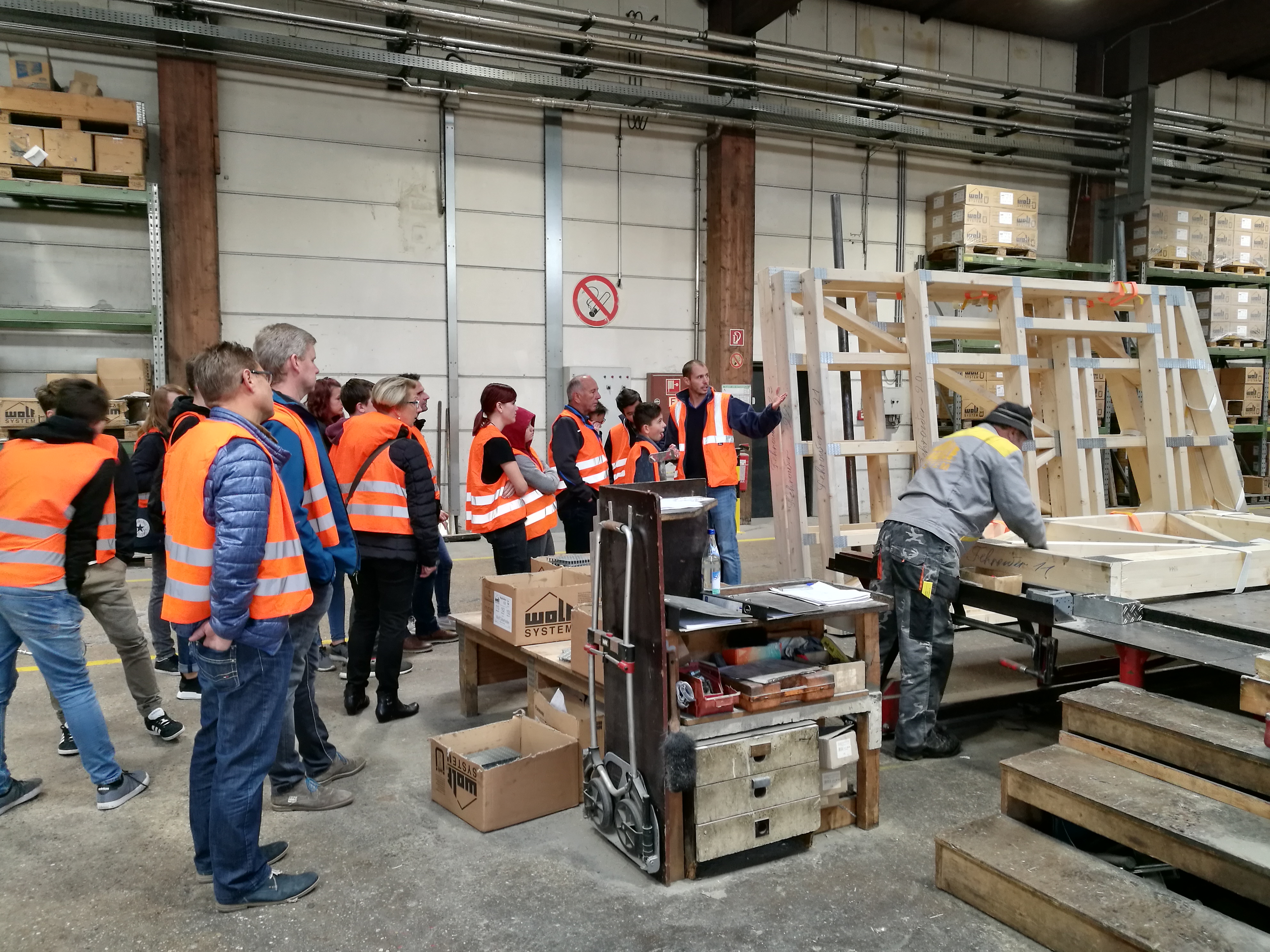 Als letzte Station stand einer der größten Arbeitgeber im Landkreis auf dem Programm: die Firma Wolf System aus Osterhofen. In zwei Gruppen aufgeteilt wurden die Produktionshallen erkundet und die wichtigsten Infos weitergegeben. Wolf System bildet Zimmerer, Konstruktionsmechaniker, Stahlbetonbauer oder auch Industriekaufleute und Bauzeichner aus. Als überregional tätiger Arbeitgeber bietet Wolf vielseitige Karrierechancen und Einsatzmöglichkeiten. Dass der Firma Wolf die Mitarbeiter sehr viel wert sind, dass die Firma für eine gute Atmosphäre innerhalb der Firma bekannt ist- das wurde auch bei dem Rundgang sehr deutlich. Zugleich ist Wolf sehr international aufgestellt. So besteht die Möglichkeit, seinen Beruf auch im Ausland auszuüben.