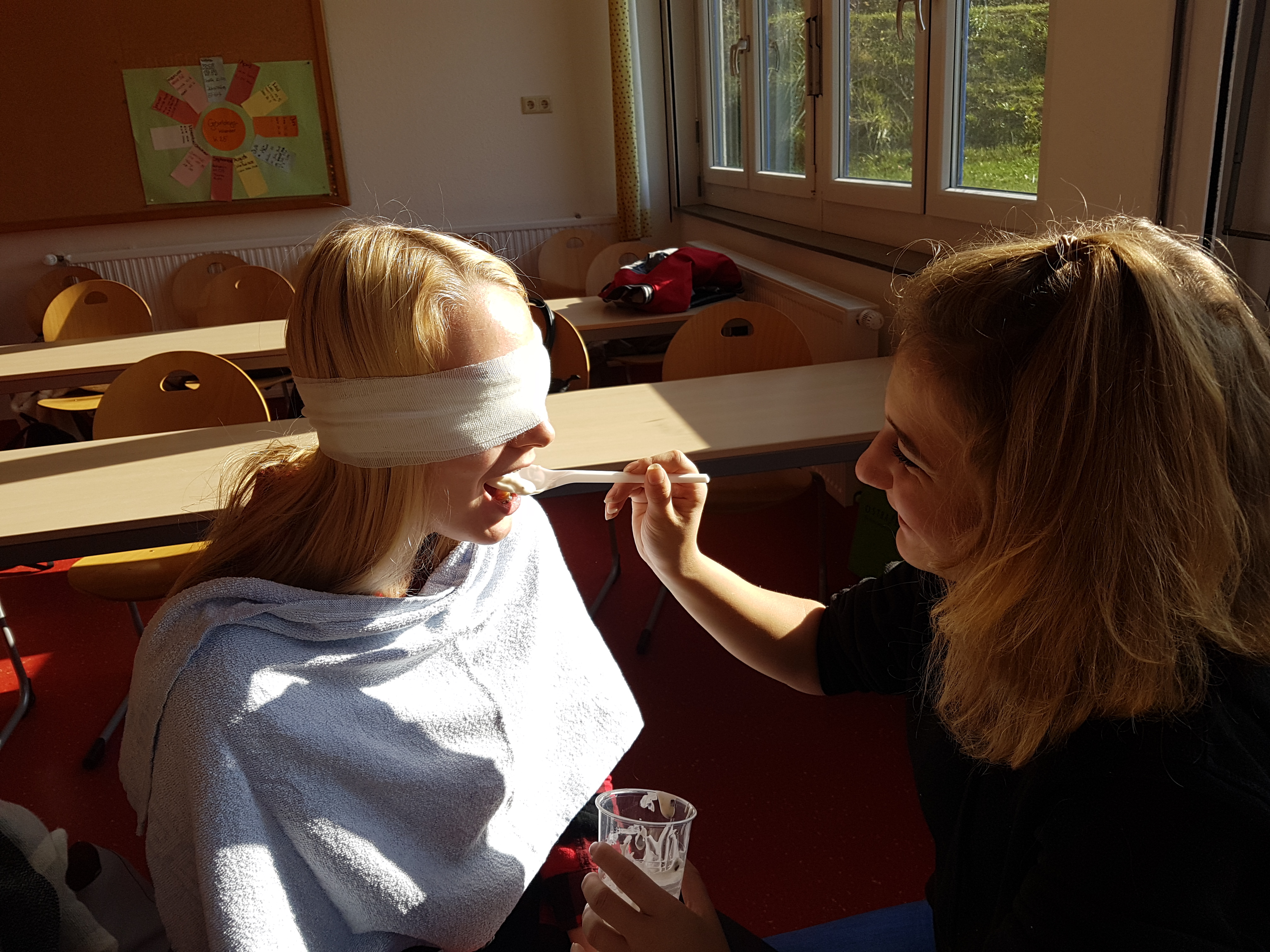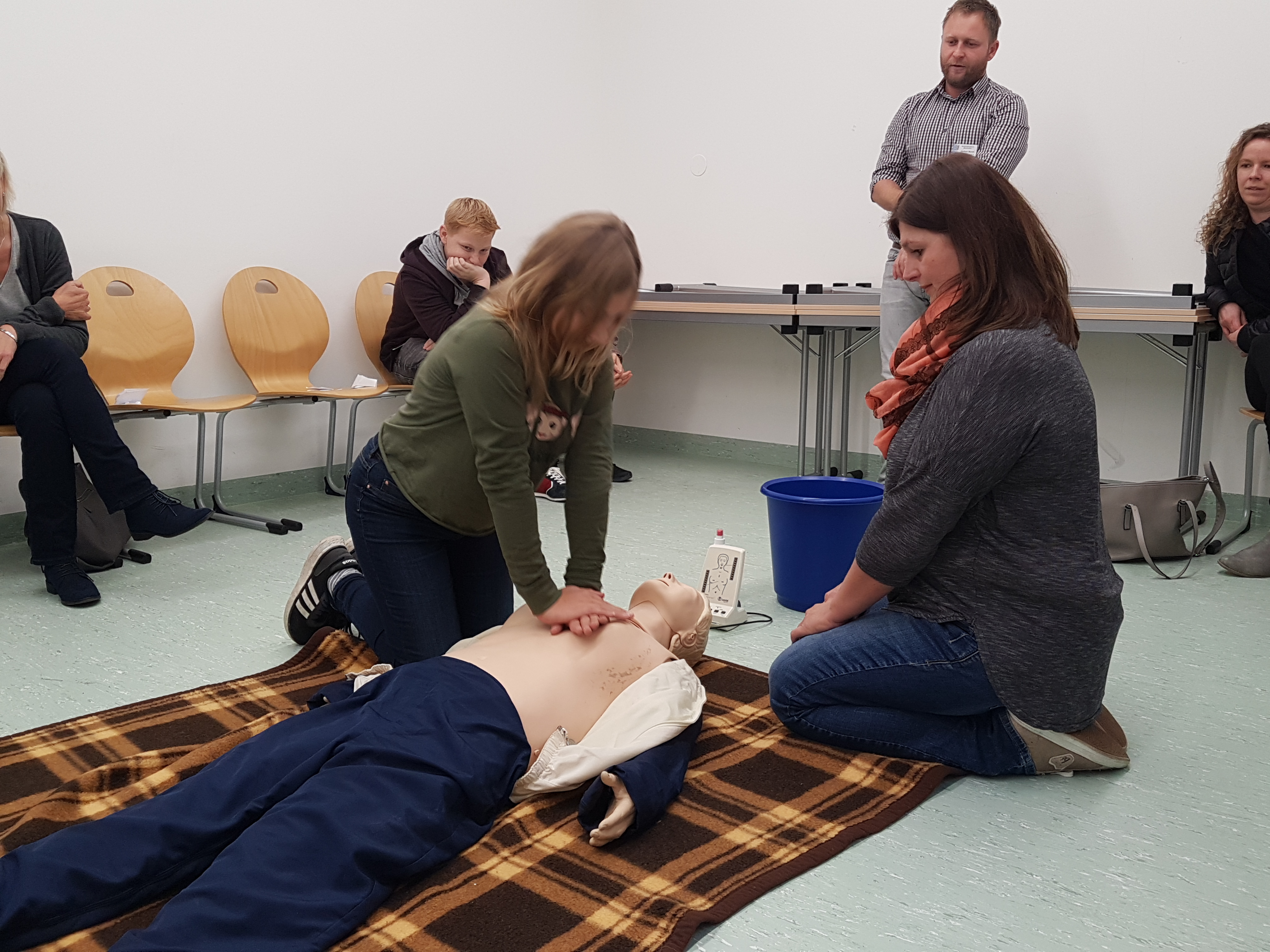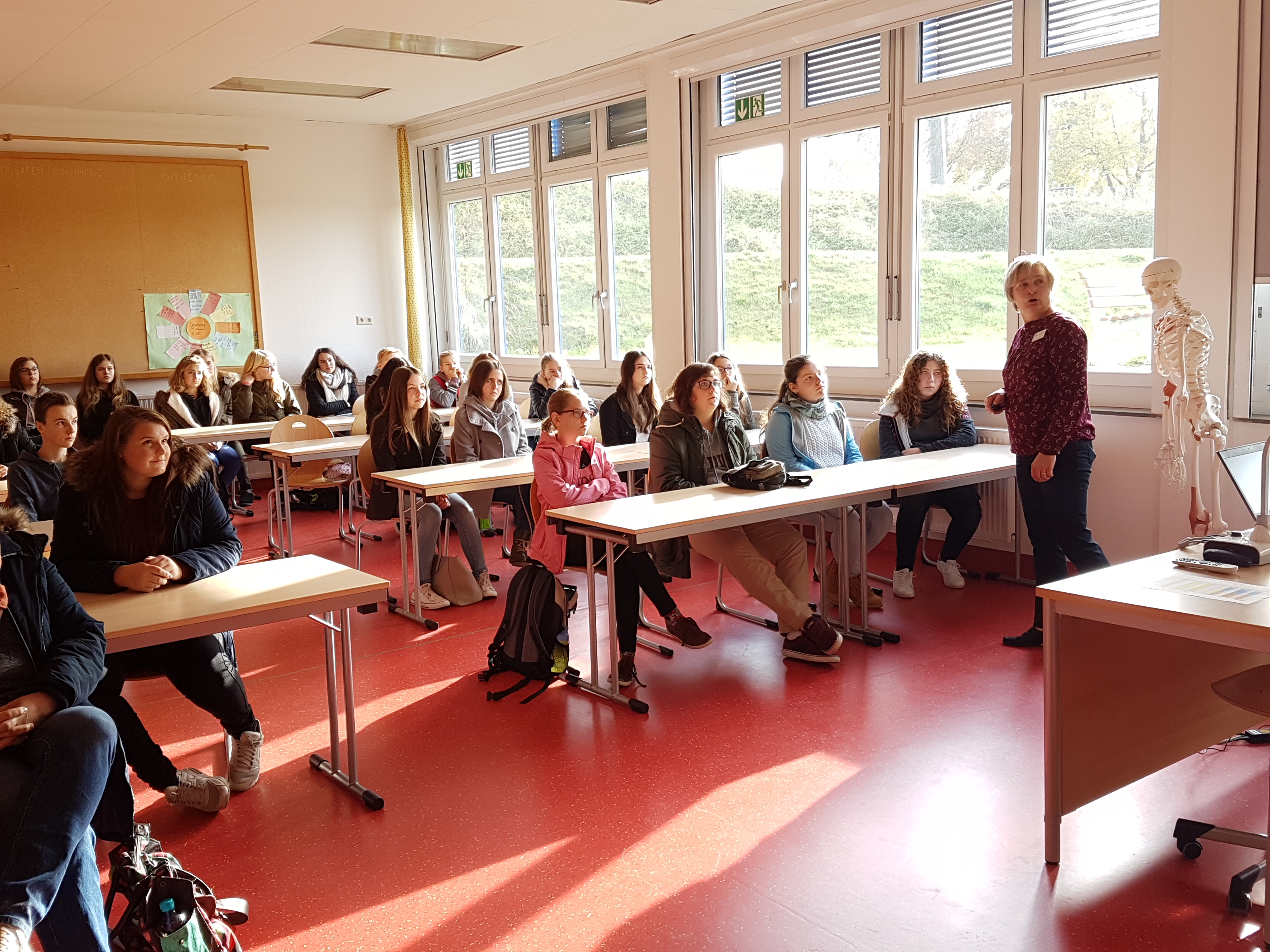 Die zweite Tour beschäftigte sich nicht mit technischen Berufen, sondern ging mehr in die Richtung "Soziales". Nachdem alle Jugendlichen und auch Eltern an den Haltestellen in Osterhofen, Langenisarhofen und Plattling eingesammelt wurden, machte sich die Gruppe auf den Weg in Bezirksklinikum in Mainkofen. Empfangen von der Stv. Schulleiterin der dortigen Krankenpflegeschule, wurden vorab die wichtigsten Informationen zum Pflegeberuf weitergegeben. Anschließend teilte sich die Gruppe in 3 Teile. Nun konnten in kleinen Gruppen verschiedene Tätigkeiten und Anwendungen im Pflegealltag erfahren werden: von einer Blindverkostung (wie fühlt man sich, wenn man jemanden hilft?) über das richtige Händewaschen (mit Kontrolle unter UV-Licht) bis hin zur Reanimation und erster Hilfe- da erkannten die Teilnehmer wie vielseitig und abwechslungsreich der Pflegeberuf ist. Frau Seeholzer verwies auf die Möglichkeit eines freiwilligen sozialen Jahres, um herauszufinden, ob der Pflegeberuf das Richtige ist.