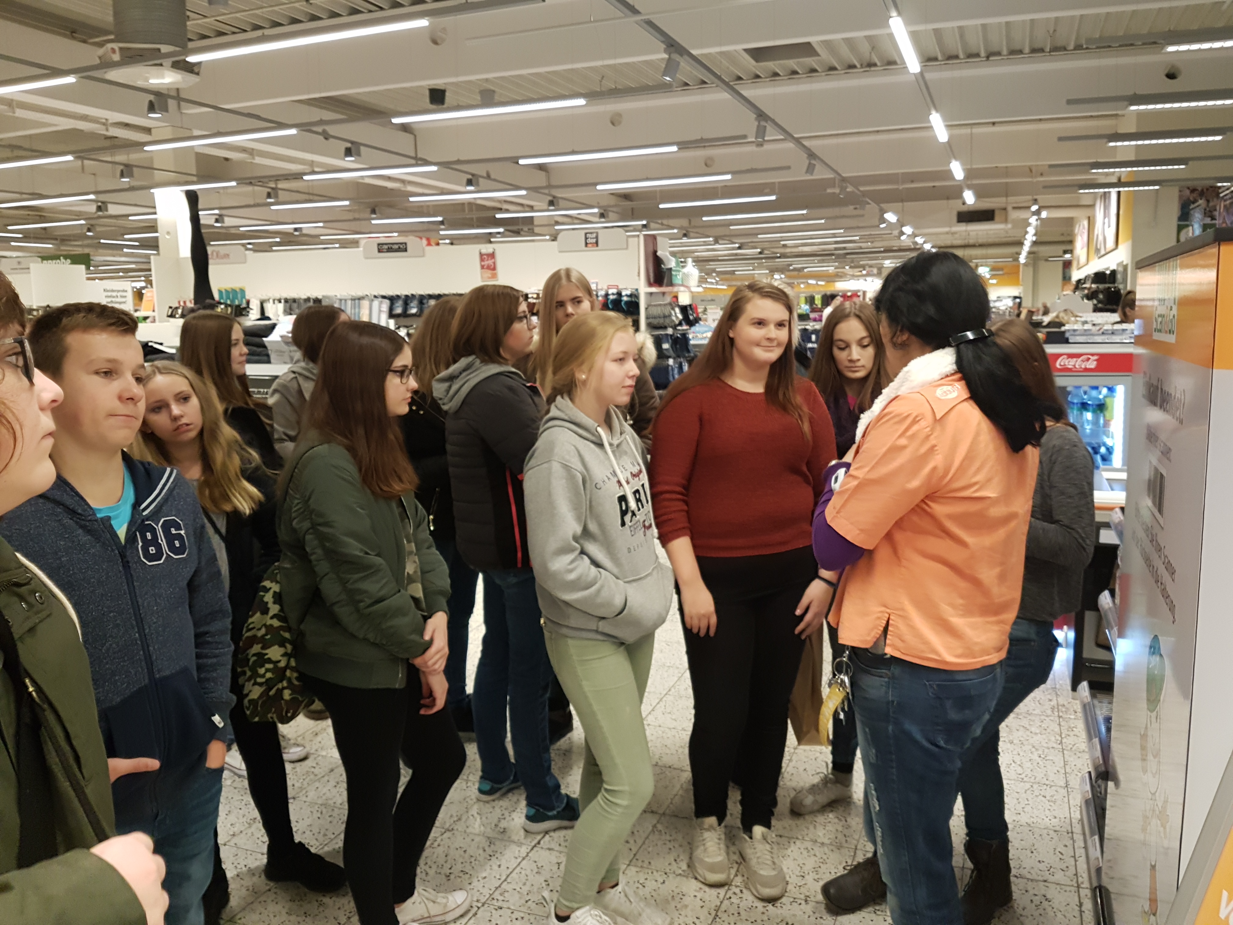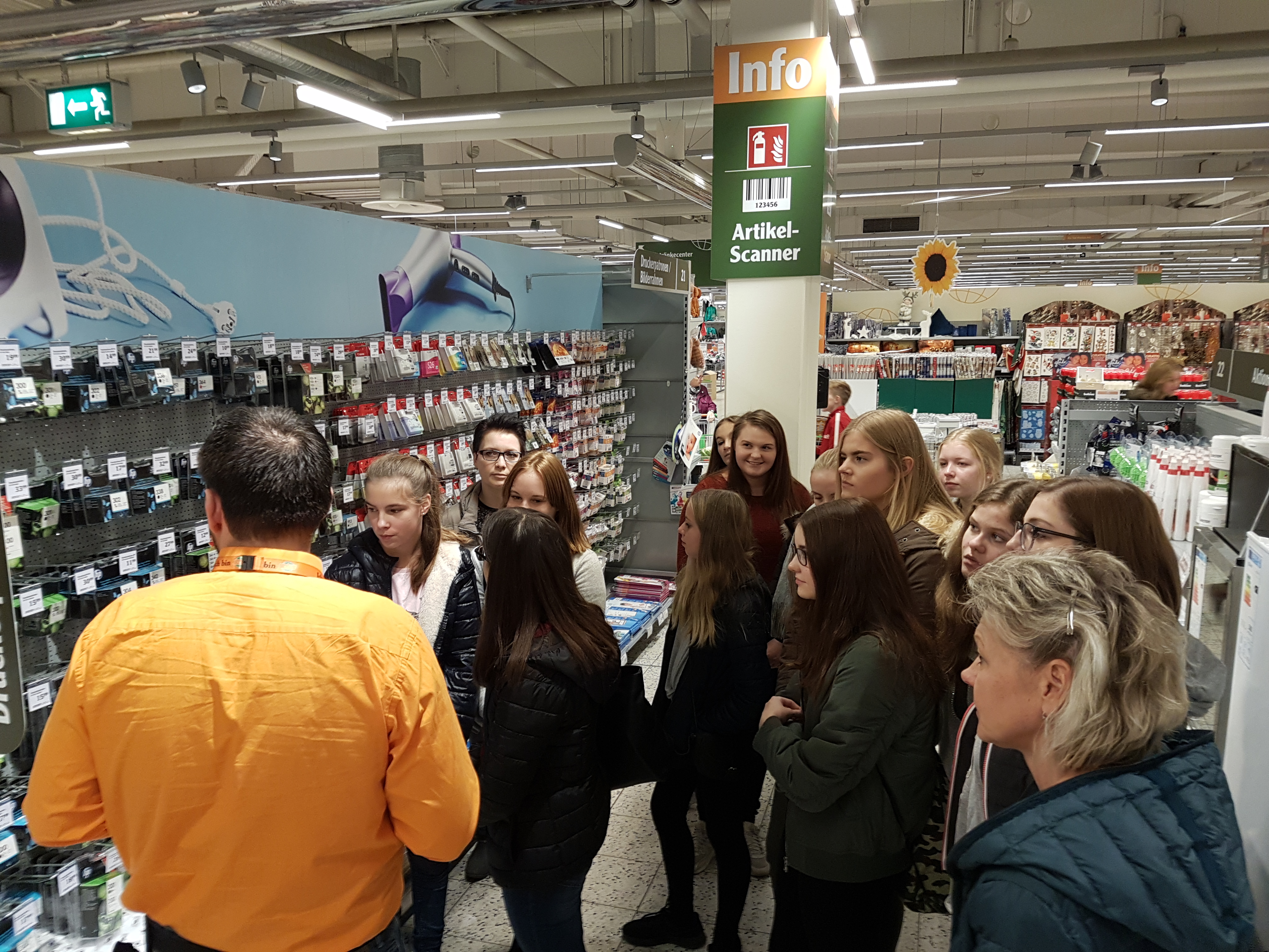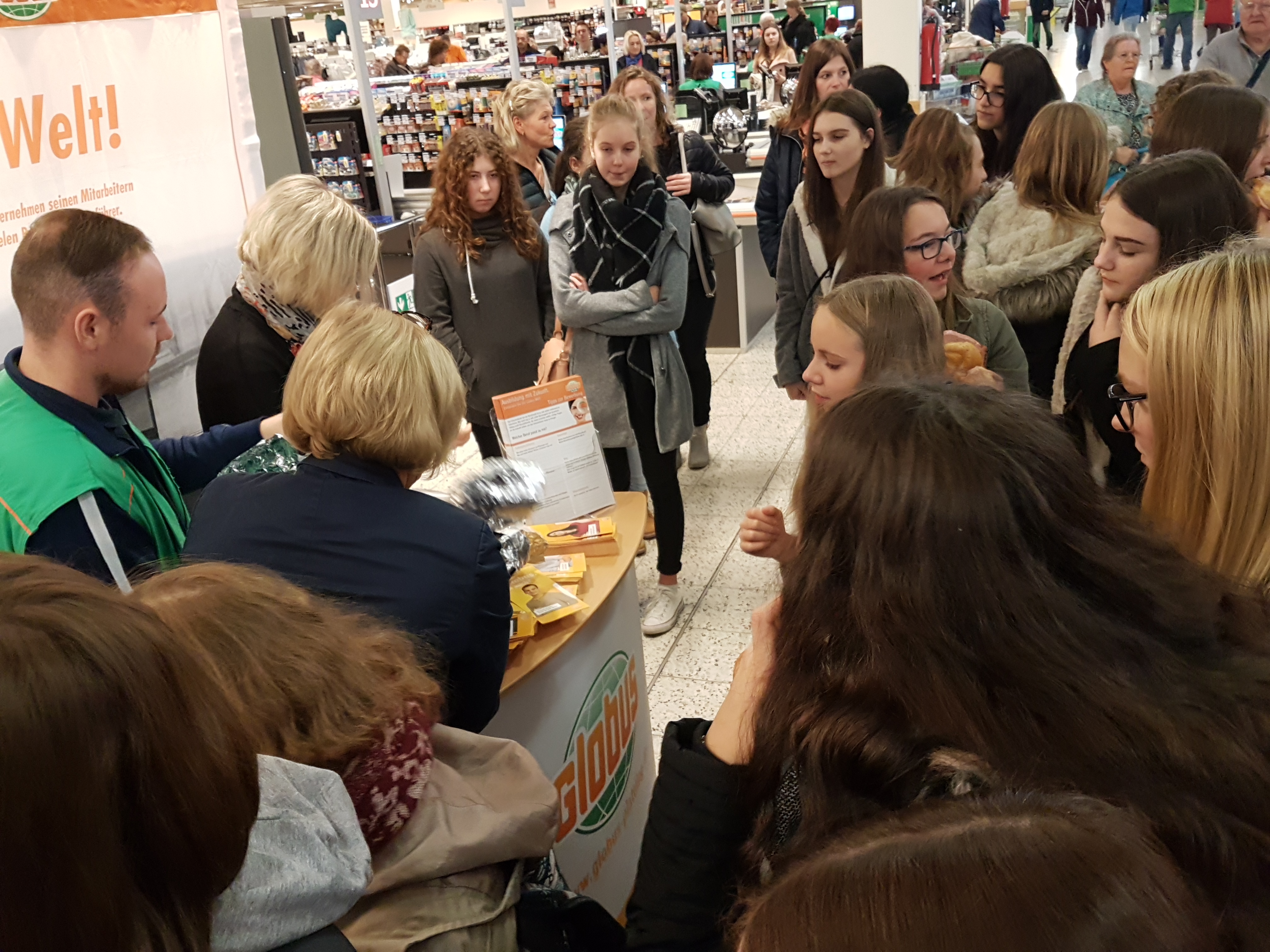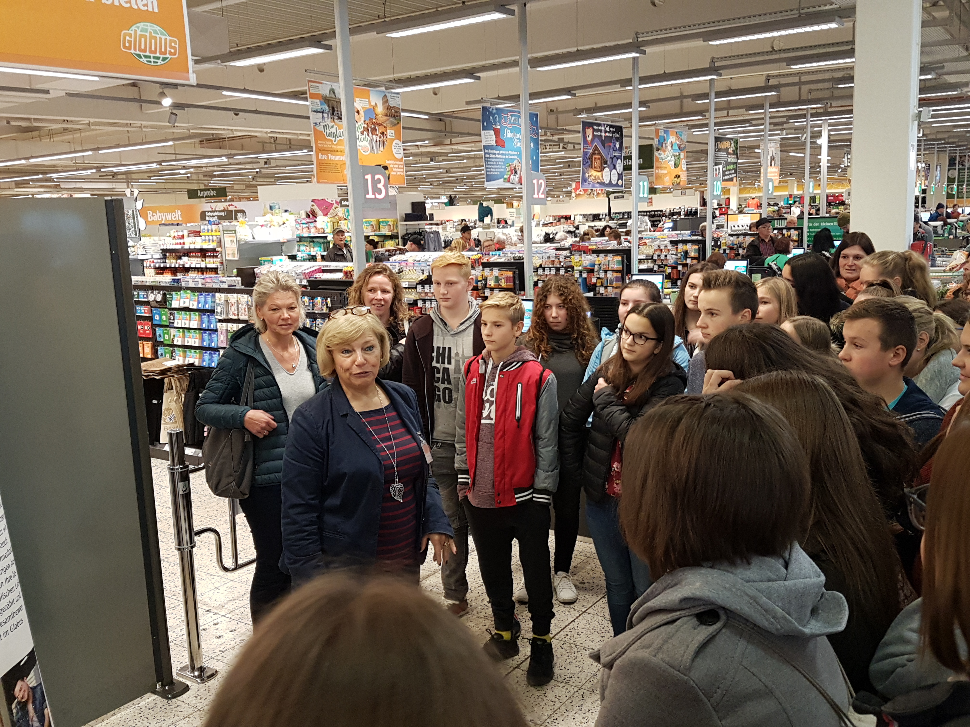 Anschließend steuerte Bus 2 Globus an. Dort wartete bereits die Personalleiterin Karin Ascherl und begrüßte die Tour-Teilnehmer auf´s Herzlichste. Nach einem kleinen Überblick über Globus in Plattling teilte sich die Gruppe auch hier auf und erhielt insbesondere in 2 Bereichen einen sehr intensiven Einblick: in das Bestellsystem und die Pflege der Regale sowie in das neue System "Scan and Go". Zusätzlich informierten Mitarbeiter an einem kleinen Stand über die vielfältigen Karrieremöglichkeiten im Betrieb. Karin Ascherl betonte auch die Möglichkeit eine (auch kurzen) Praktikums, um für sich selbst zu erfahren, ob der Beruf das Richtige für einen ist. Nach der obligatorischen Globus-Leberkäse-Semmel ging die Tour weiter Richtung Isar-Park.