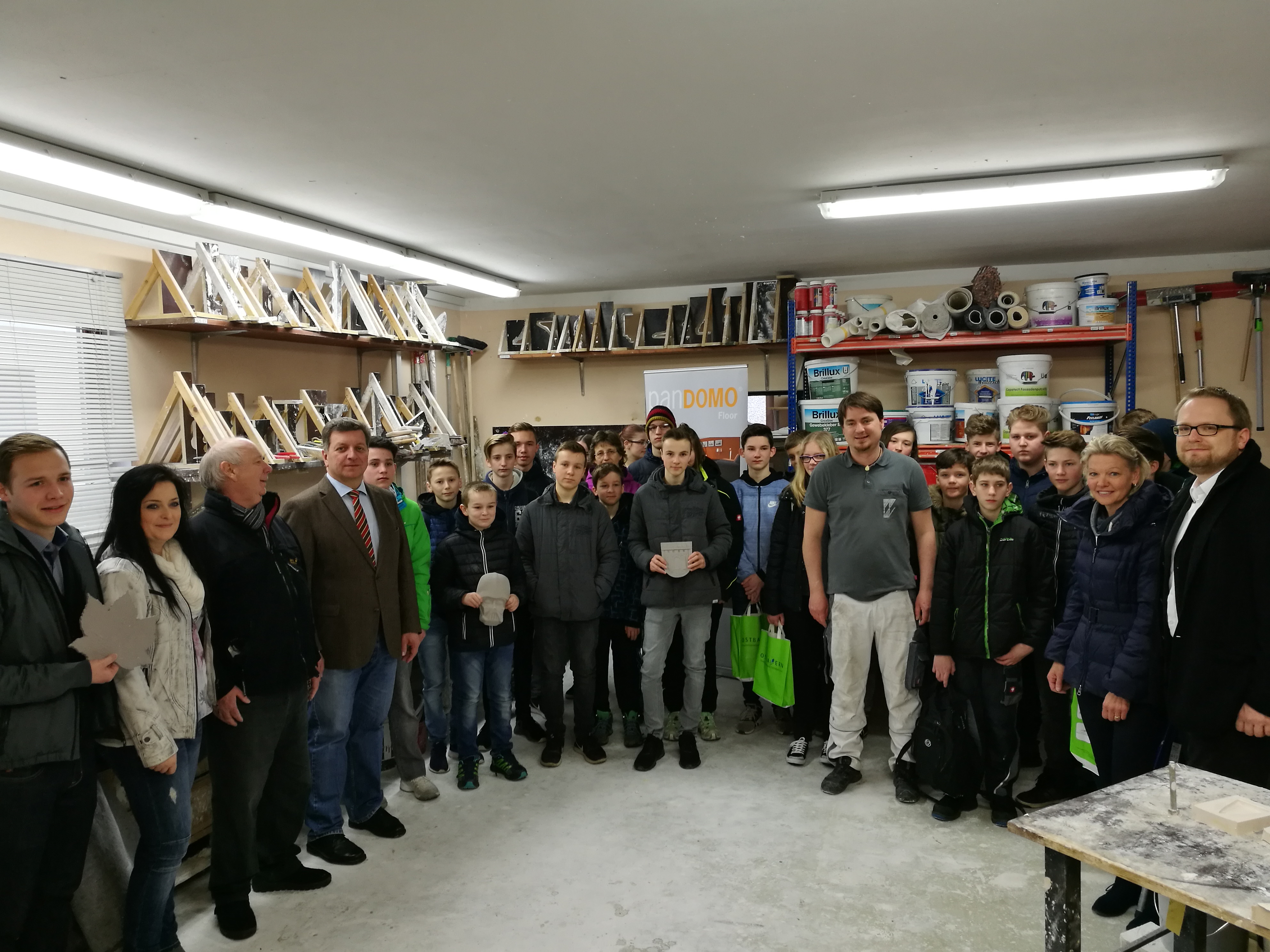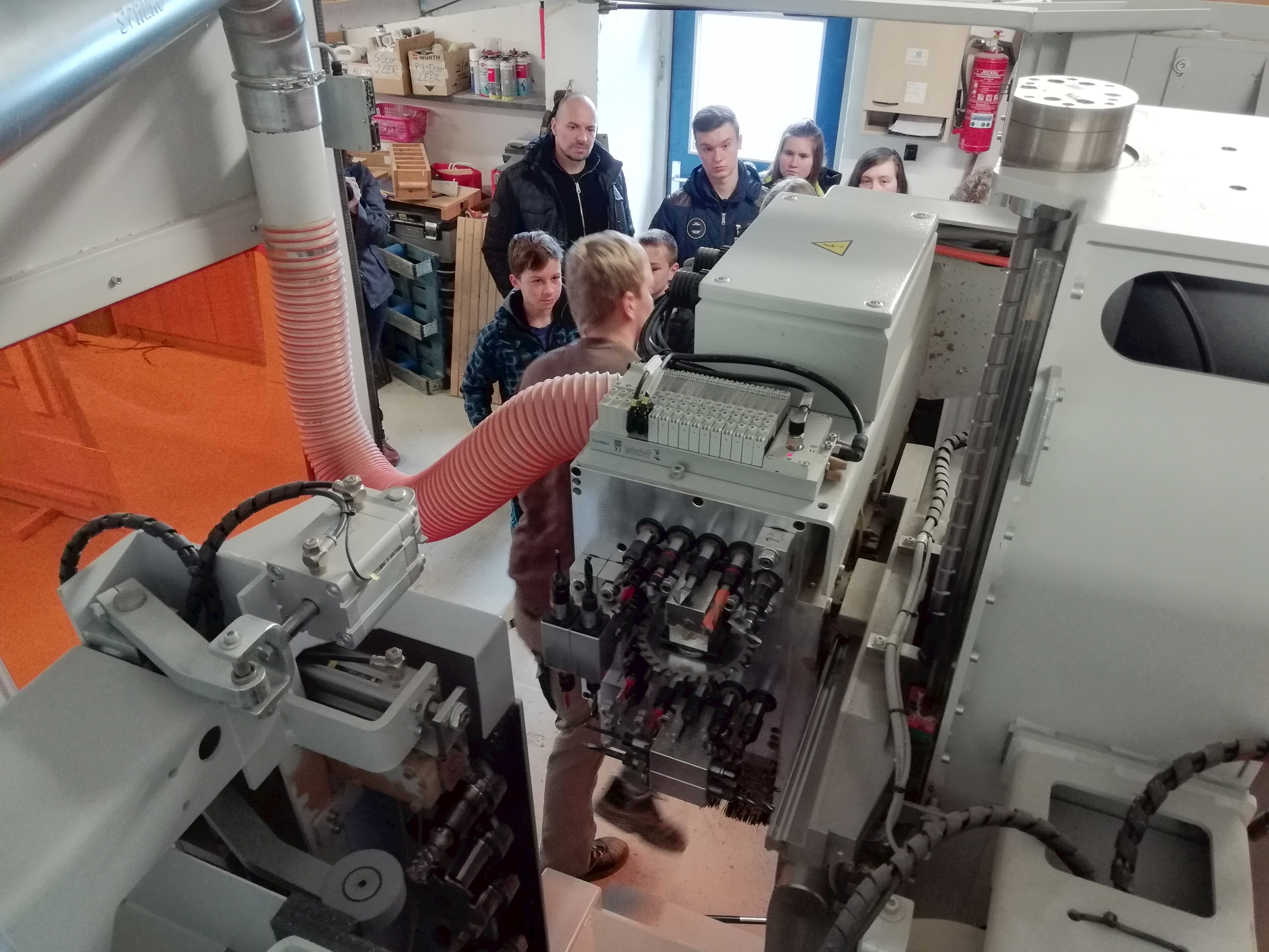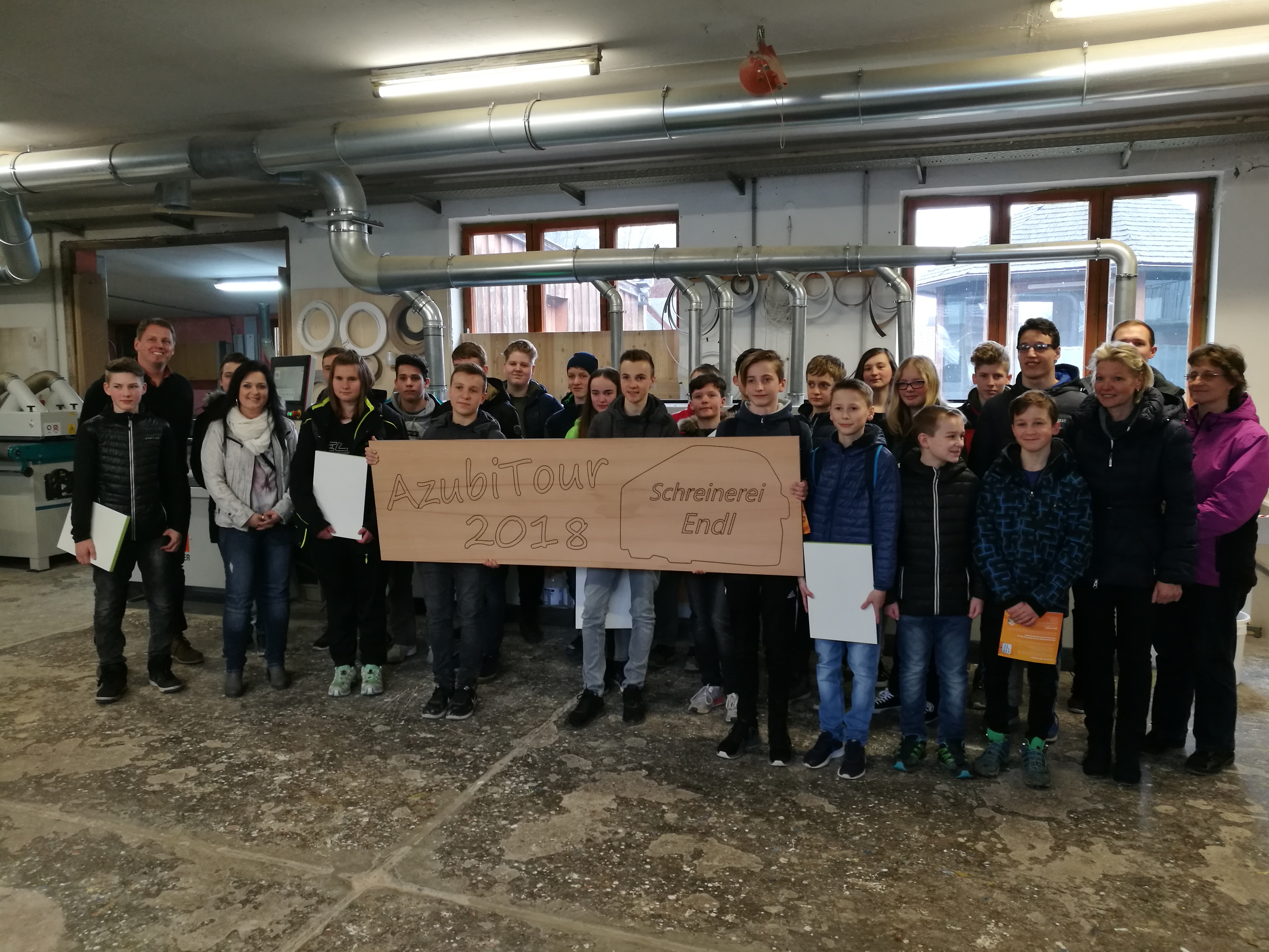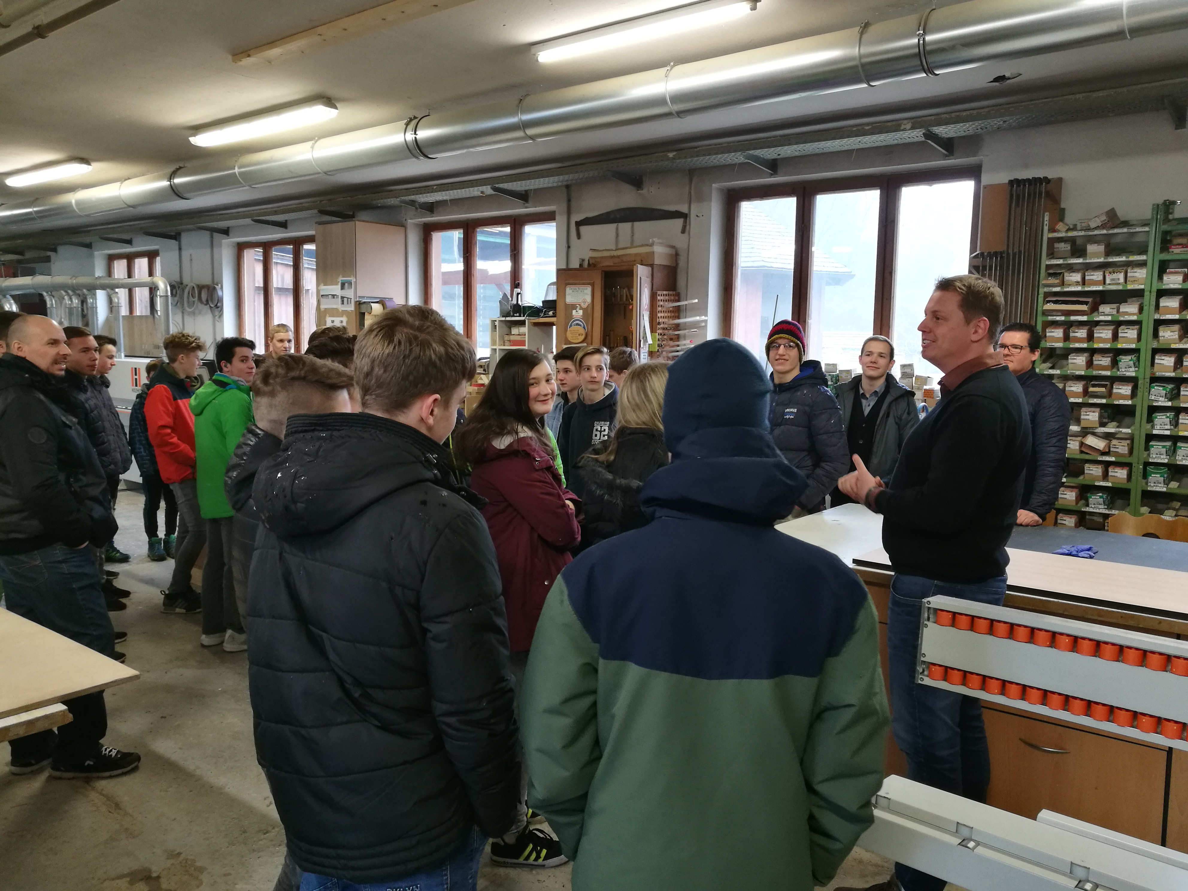 Die letzte Station von Tour 1 war die Schreinerei Endl in Winzer. Firmenchef Roland Endl zeigte anfangs auf, was es braucht um ein Schreiner zu werden. Dann zeigte er den Teilnehmern die Produktionshalle mitsamt den Maschinen. Um konkreter auf einzelne Fragen einzugehen, wurden die rund 30 Schüler in zwei Gruppen aufgeteilt. Beim Rundgang durch die Büros erkannten die Teilnehmer sehr schnell, wie umfangreich der Beruf des Schreiners ist: von Entwürfen am PC mit CAD-Programm bis hin zur großen Fräsmaschine, wo die Jugendlichen ihre eigenen Stücke, unter Aufsicht von einem Meister, fräsen konnten.