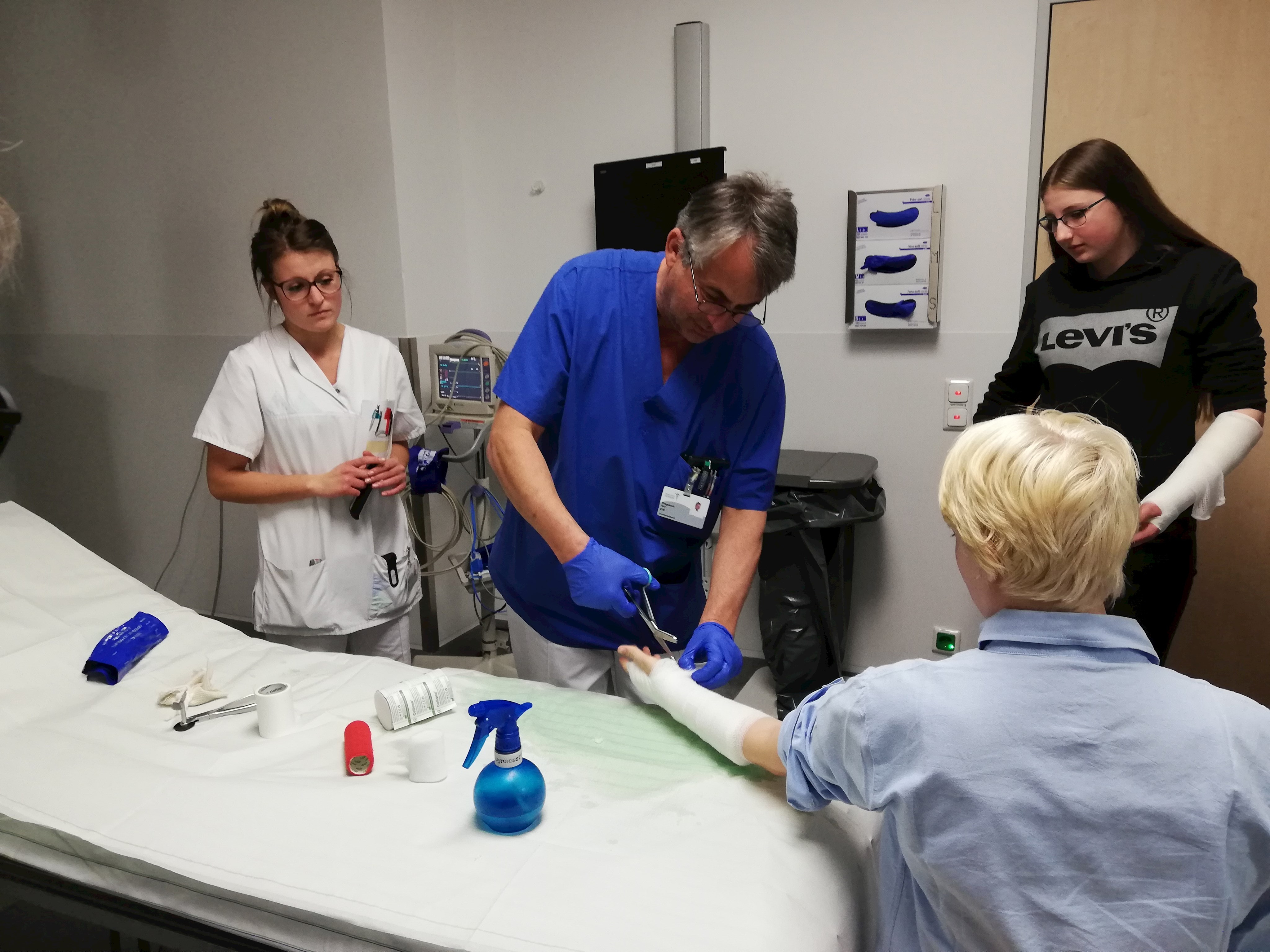 Die soziale Tour bot zwei äußerst interessante und abwechslungsreiche Einrichtungen. So startete diese Tour mit der Lebenshilfe in Metten. Dabei konnten die Teilnehmer die Vielfalt dieser Einrichtung kennenlernen: Von der Betreuung von körperlich und geistig behinderten Personen über die Mettener Werkstätten bis hin zur Küche und dem Heim für das betreute Wohnen. Die Schüler und Eltern konnten sich einen Überblick über das große Leistungsspektrum der Lebenshilfe verschaffen und die zahlreichen Ausbildungs- und Weiterbildungsmöglichkeiten erkunden. Beim 2. Halt der Tour konnten die Teilnehmer gleich 2 Einrichtungen erkunden: das DONAUISAR Klinikum und die Berufsfachschule für Krankenpflege in Deggendorf. Kernpunkt dabei war die Besichtigung der Notaufnahme, bei der den Teilnehmern die konkrete Behandlungsabfolge bei einem Notfall erklärt und das Anlegen von Gipsverbänden in der Praxis gezeigt wurde. Im Rahmen dessen durften die Schüler sowohl den Schockraum als auch den neuen Hubschrauberlandeplatz mit einer tollen Aussicht betreten. Im Anschluss daran konnten die Teilnehmer in der Krankenpflegeschule selbst einige ärztliche Techniken, wie Blutdruck messen, ausprobieren. Bei einer kleinen Brotzeit wurde ihnen noch Vieles über die Ausbildung zum Gesundheits- und Krankenpfleger erzählt.