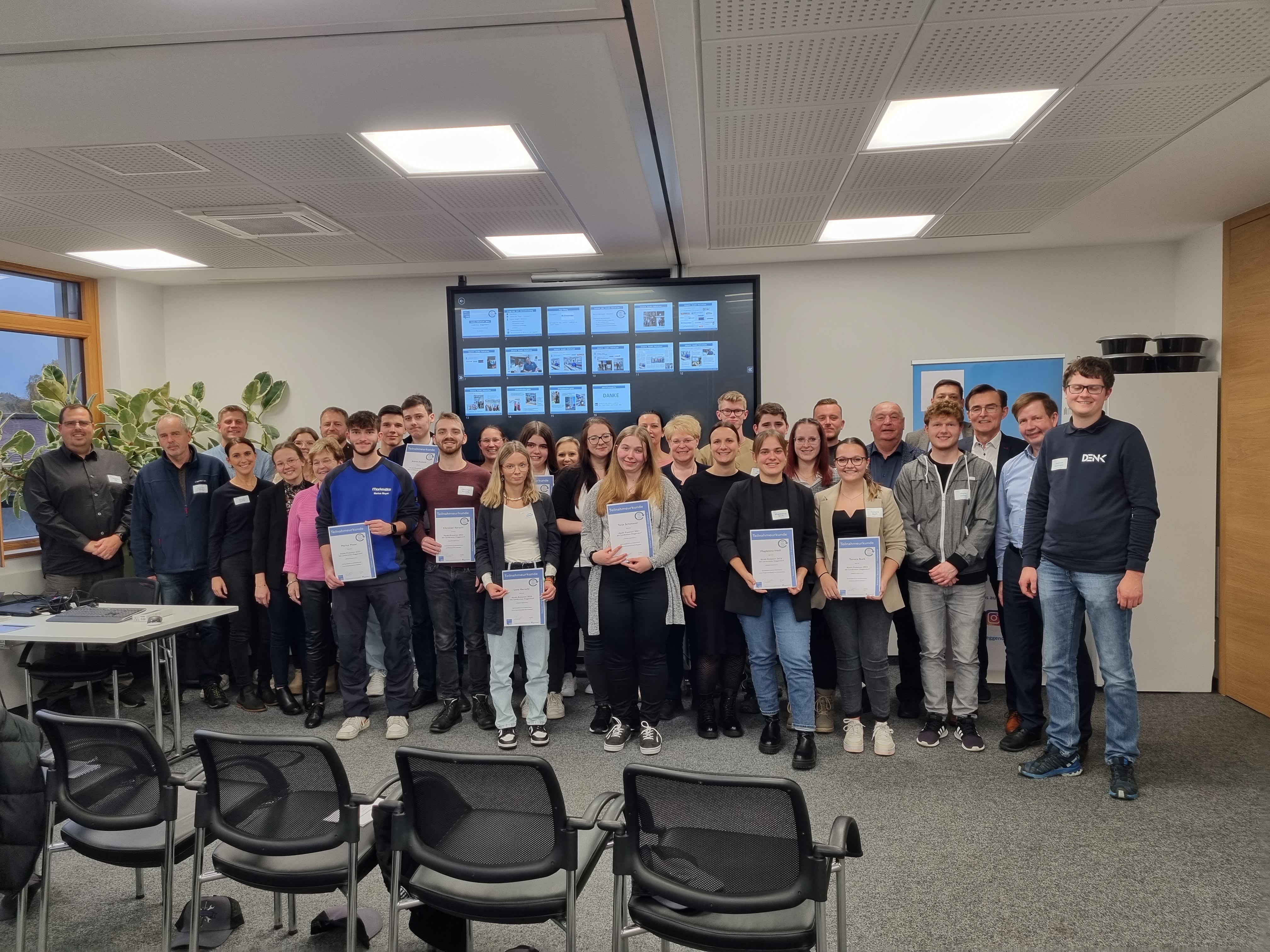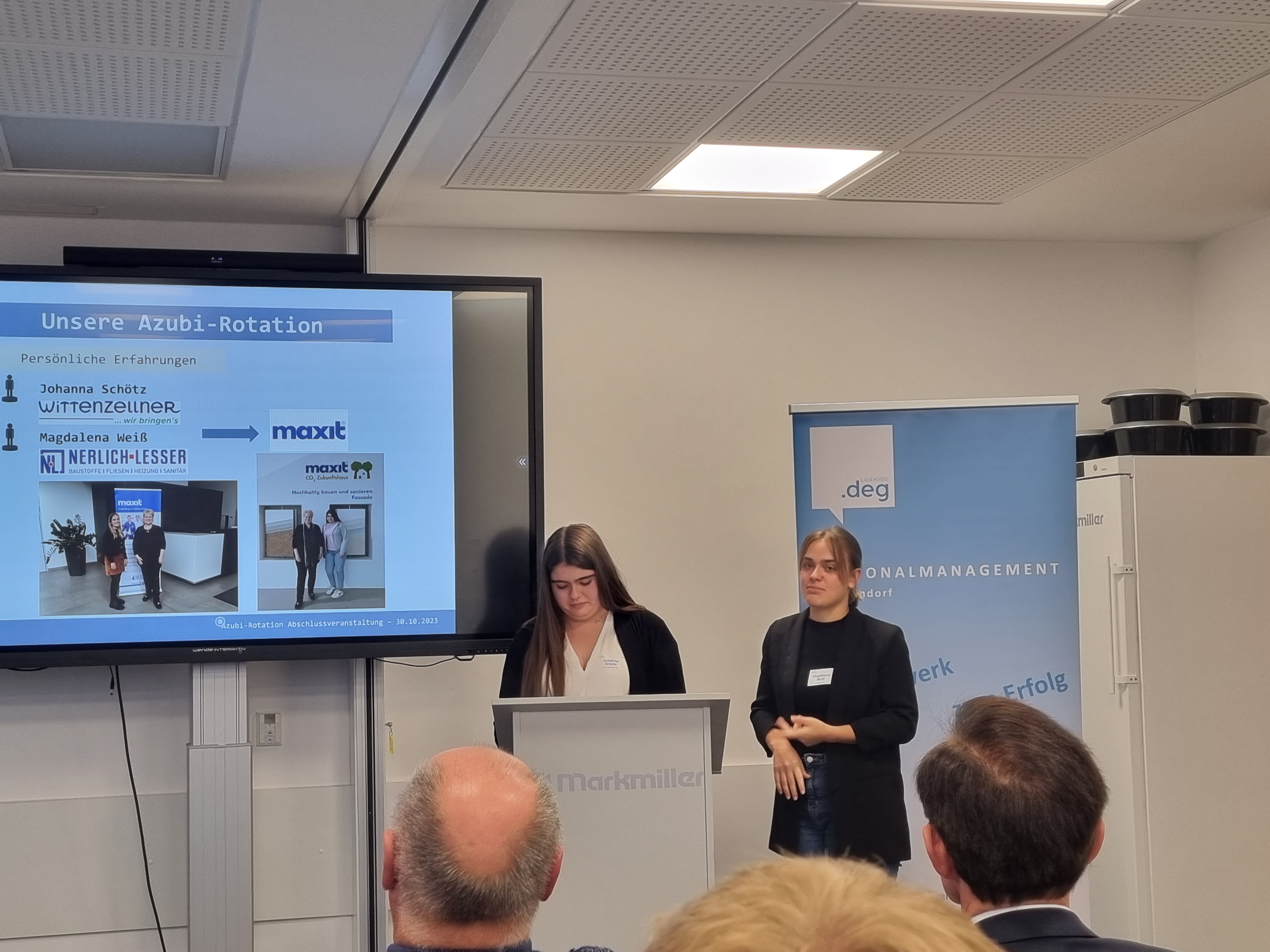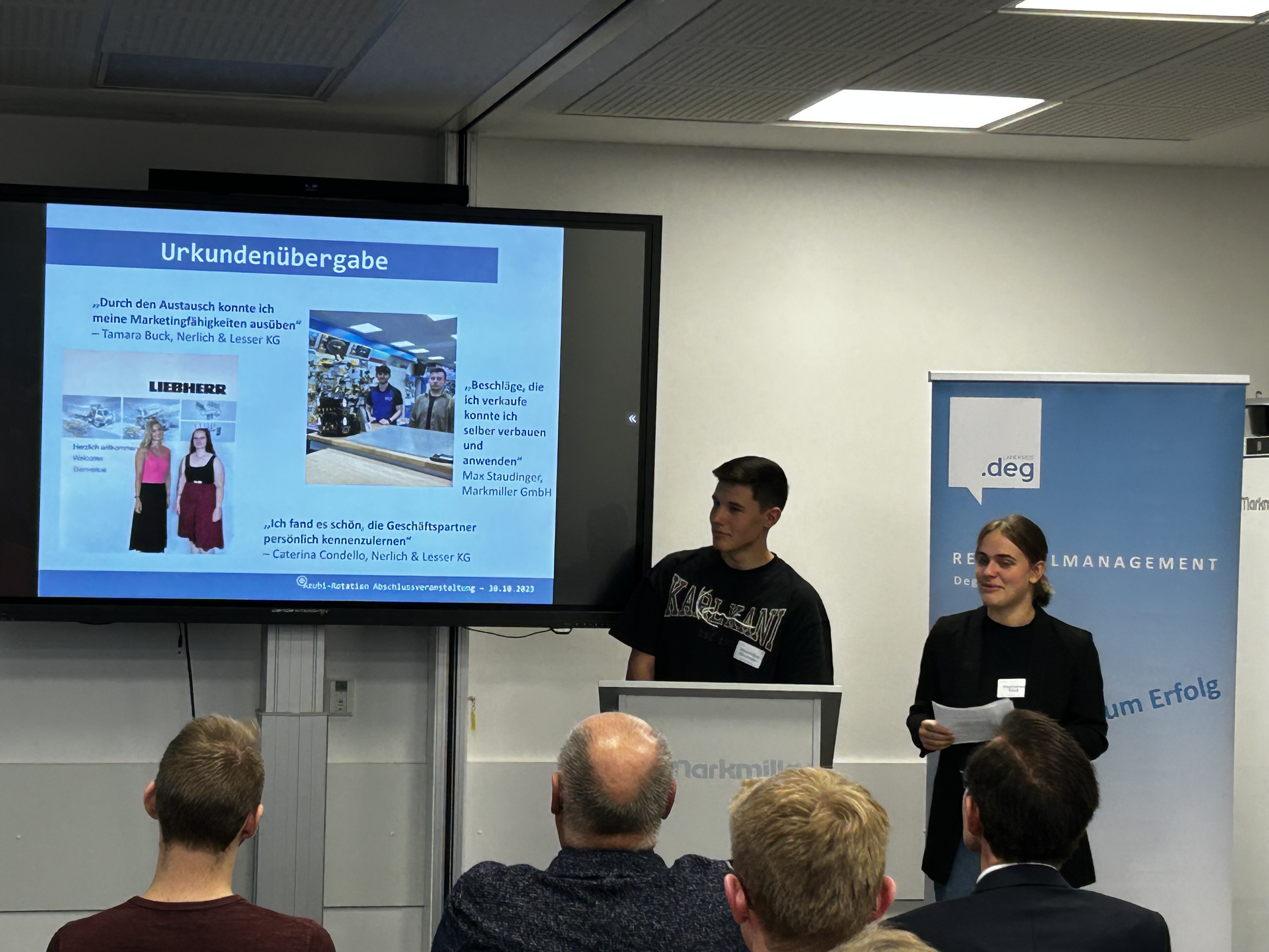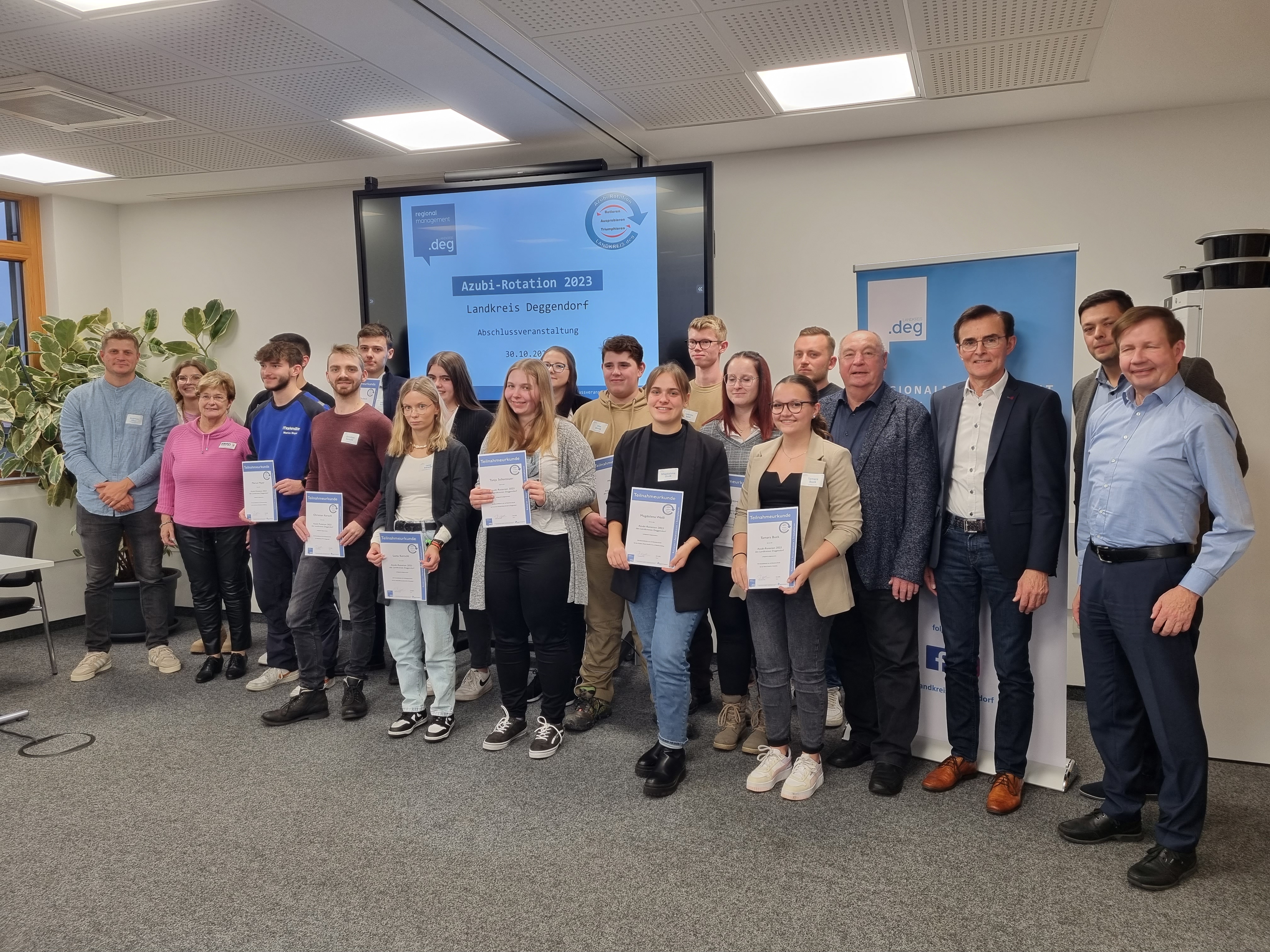 Neben Vertretern der beteiligten Betriebe und den Azubis war der stellvertretende Deggendorfer Landrat Josef Färber zu Gast. Nach den Grußworten von Herrn Tändler im Namen von Markmiller äußerte sich Färber beeindruckt über das große Engagement aller Beteiligten an dem Projekt. Ohne die Offenheit der Firmen, an der Azubi-Rotation teilzunehmen, wäre das Projekt aber erst gar nicht möglich gewesen, betonte er.