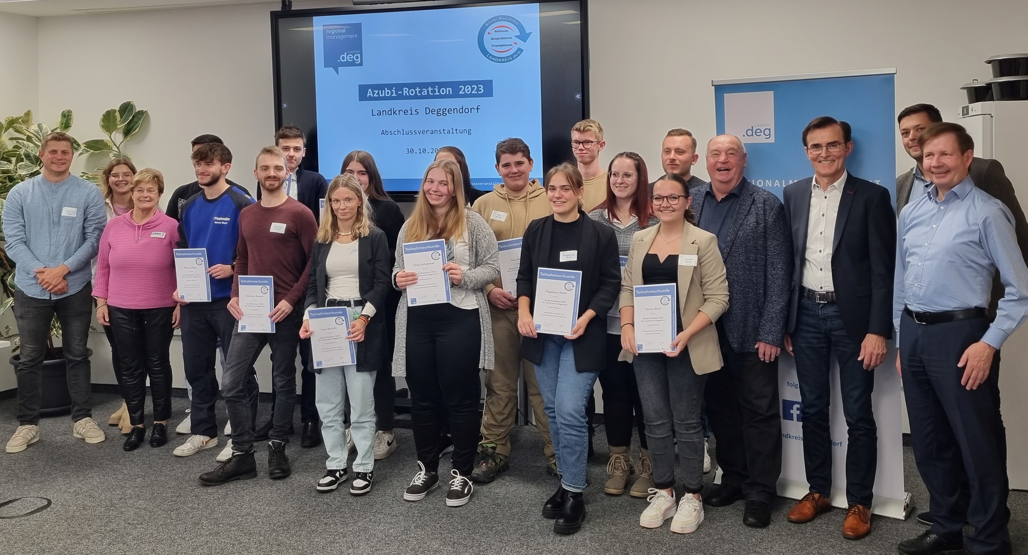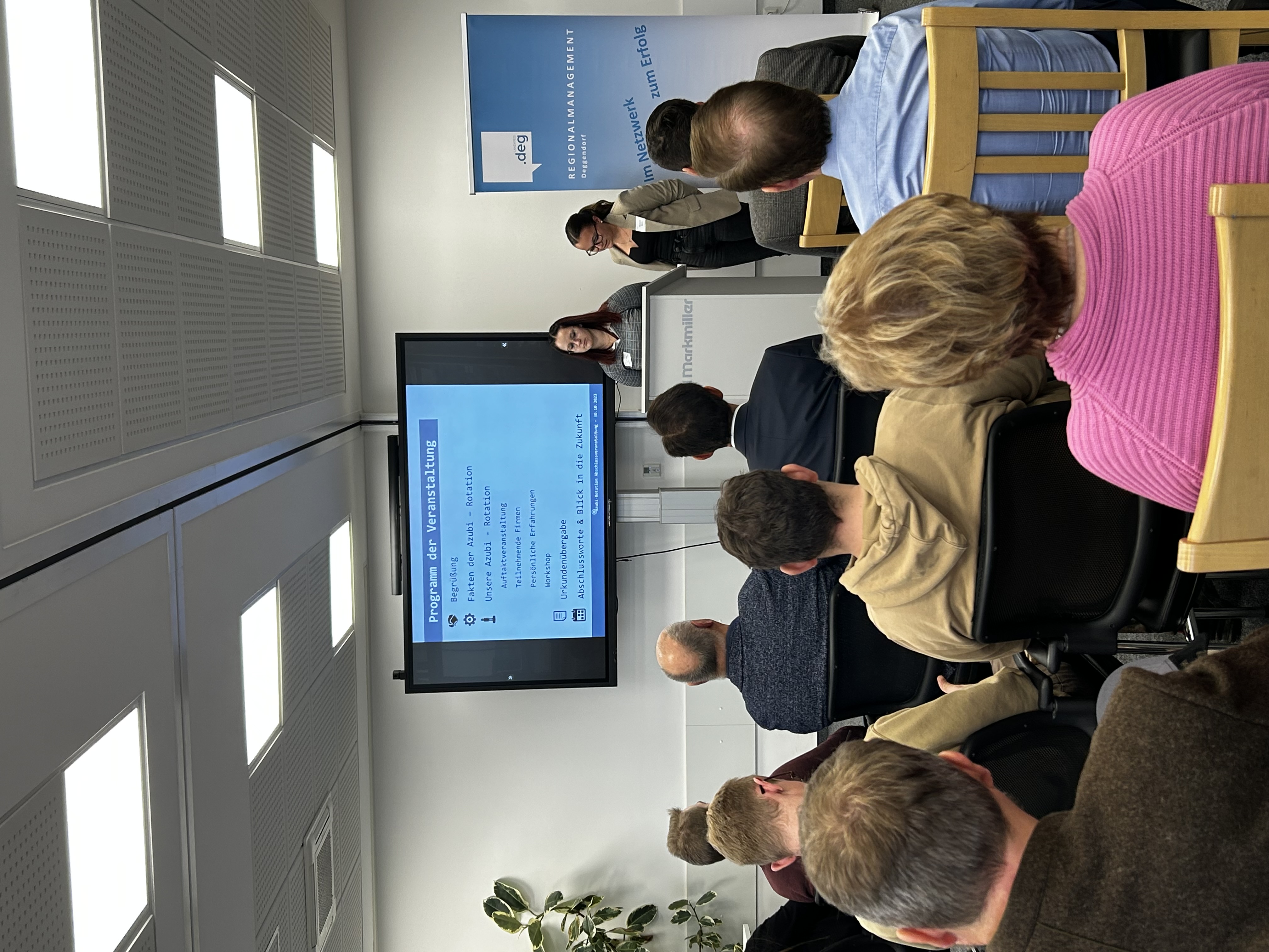 Nach der Corona-Pandemie durfte endlich voll rotiert werden! Das zeigt auch das rege Interesse an der diesjährigen Azubi-Rotation von insgesamt 23 rotierenden Azubis aus 14 Betrieben. Zum Abschluss der Azubi-Rotation 2023 hatte das Regionalmanagement in die Firma Markmiller in Deggendorf eingeladen.