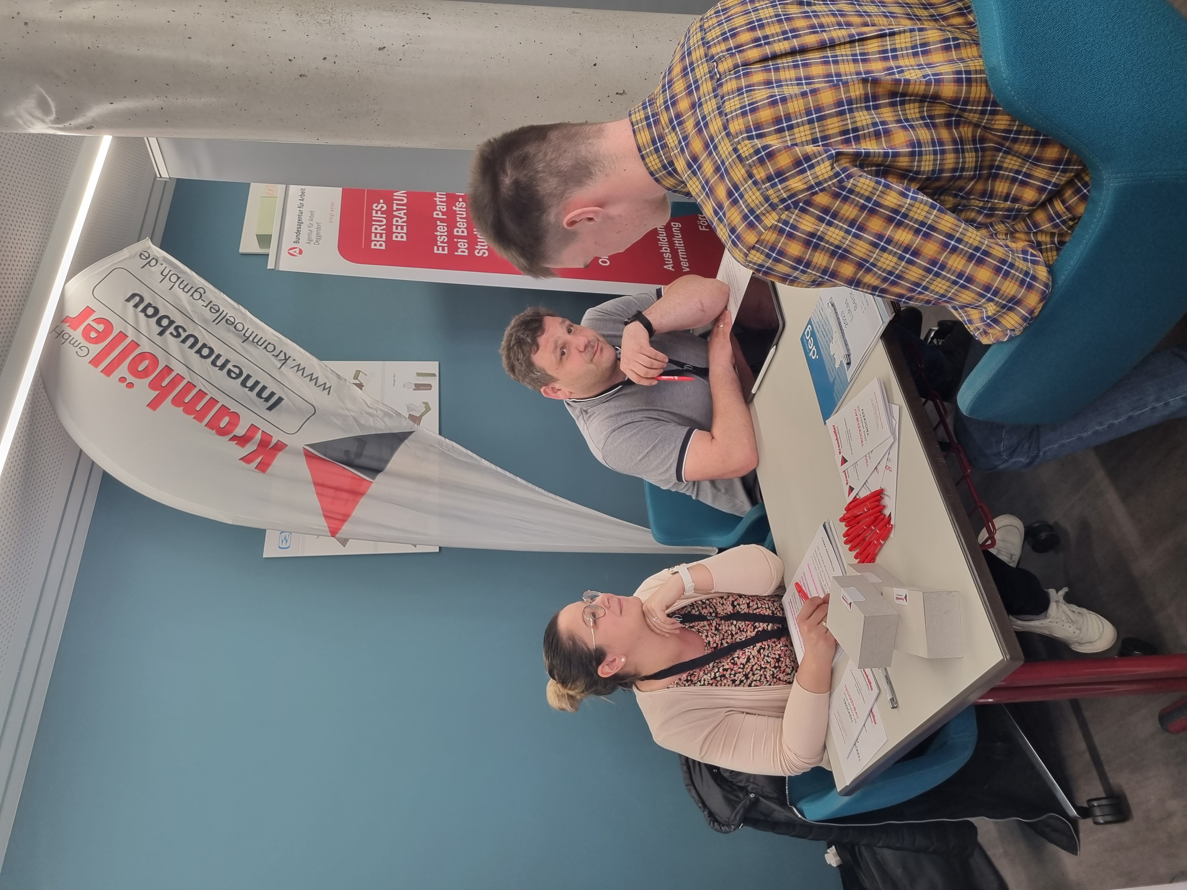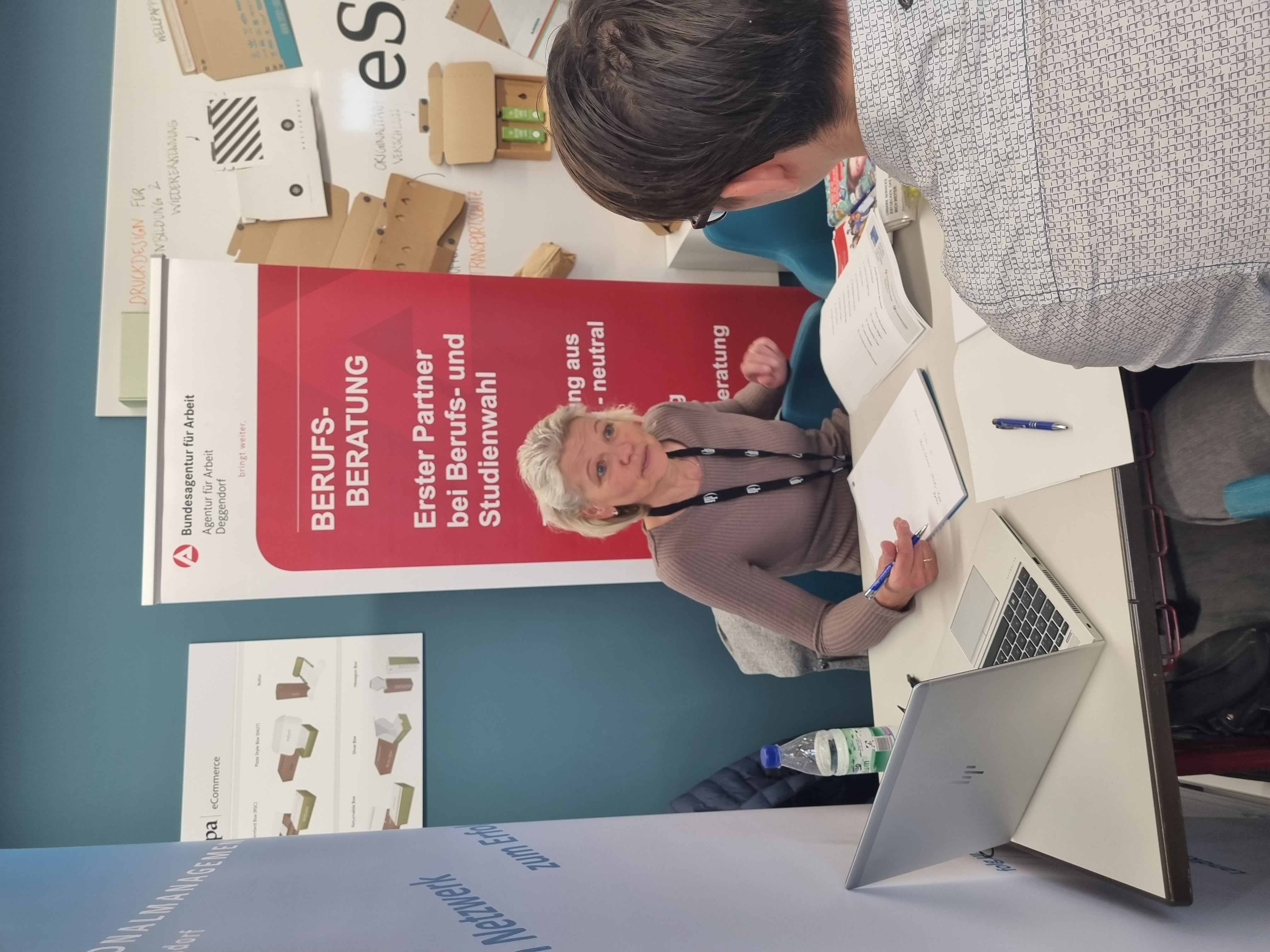 Bei den Gesprächen hatten die Schüler jeweils 8 Minuten Zeit, um sich mit den Unternehmen auszutauschen. Nach Ablauf dieser Zeit und einer kurzen Pause rotierten die Schüler zum nächsten Unternehmen. So konnten sie in kürzester Zeit viele verschiedene Firmen kennenlernen und viele Gespräche führen. Von Gespräch zu Gespräch gewannen die Jugendlichen an Sicherheit und wußten immer mehr zu überzeugen.