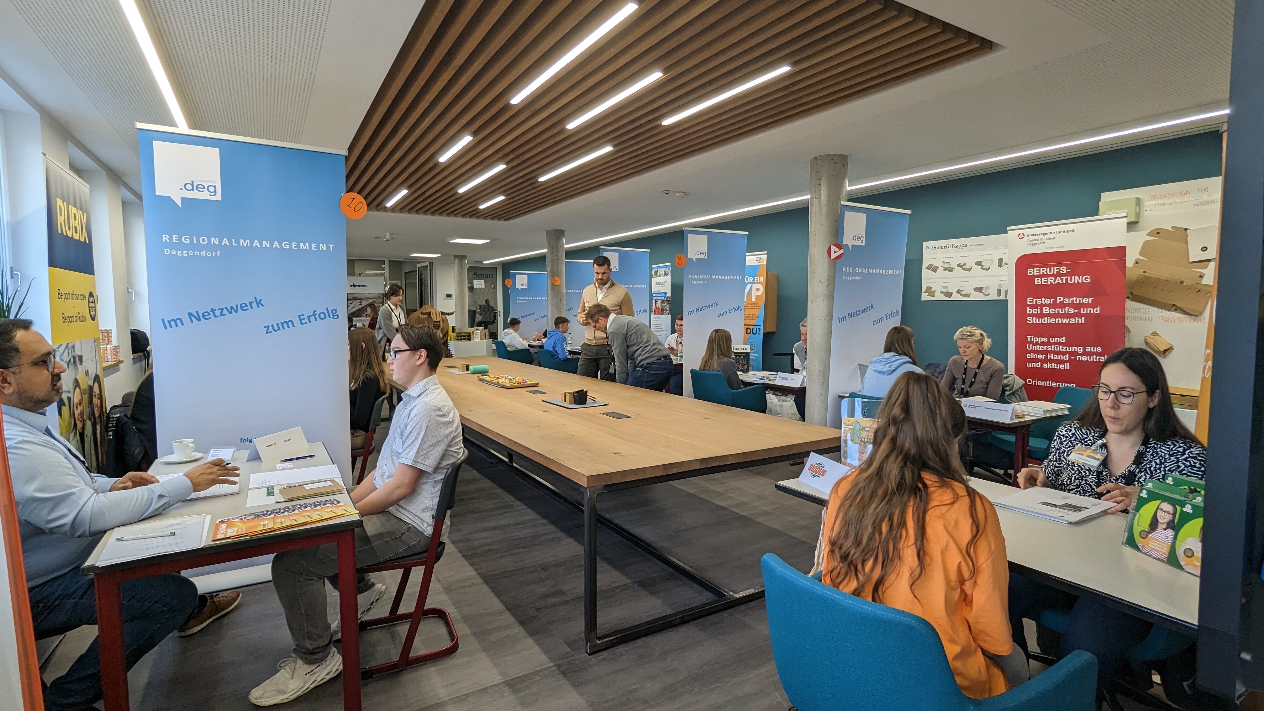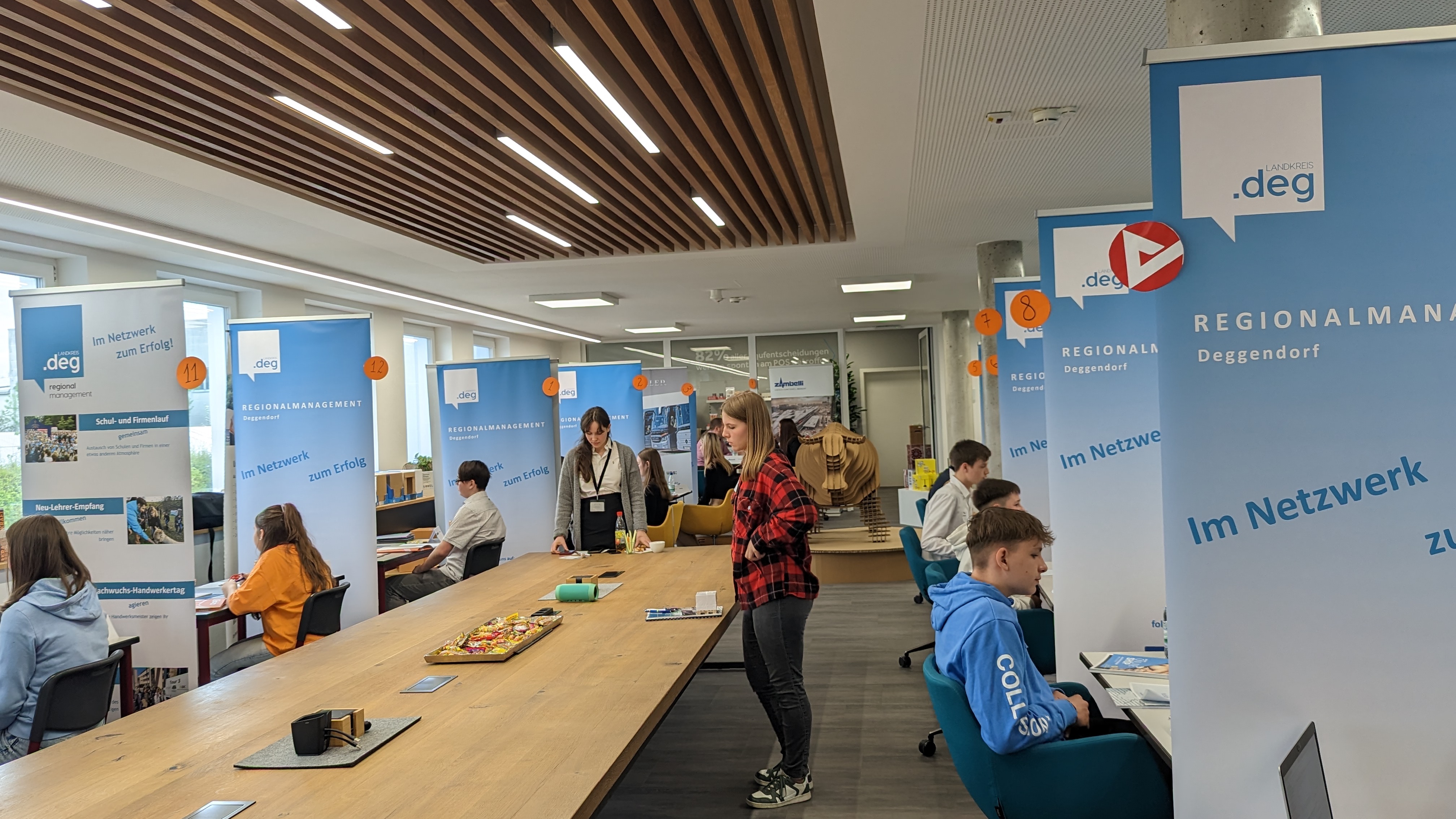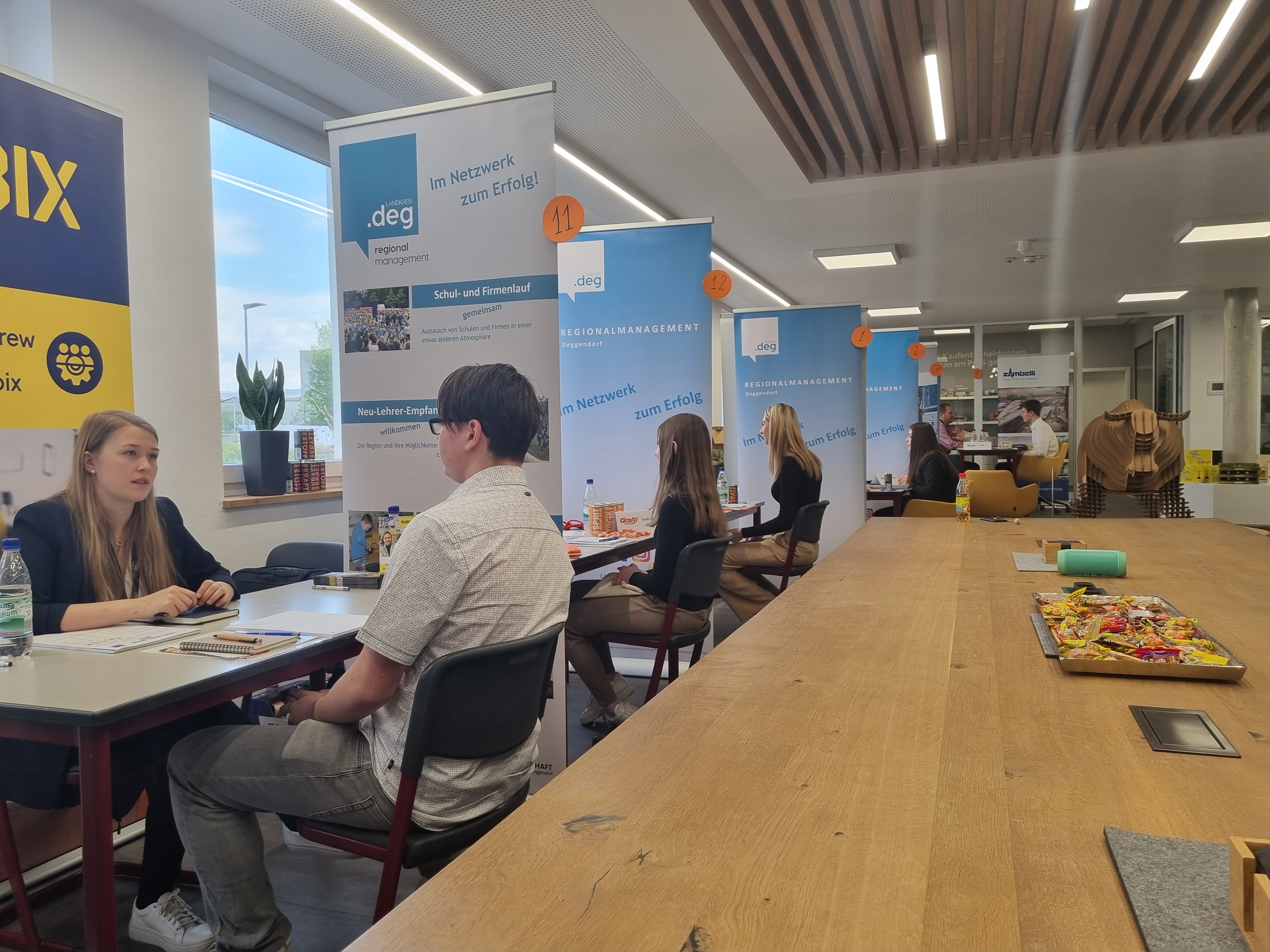 Nachdem sowohl Schüler als auch Lehrer und Firmen vorbereitet wurden, konnte das Azubi-Speed-Dating am 25. April im Experience Center von Smurfit Kappa starten. Insgesamt 16 Unternehmen aus dem Industriegebiet Plattling sowie 25 Schülern aus den Mittelschulen Wallerfing und Plattling sowie den Realschulen Osterhofen und Plattling nahmen teil.