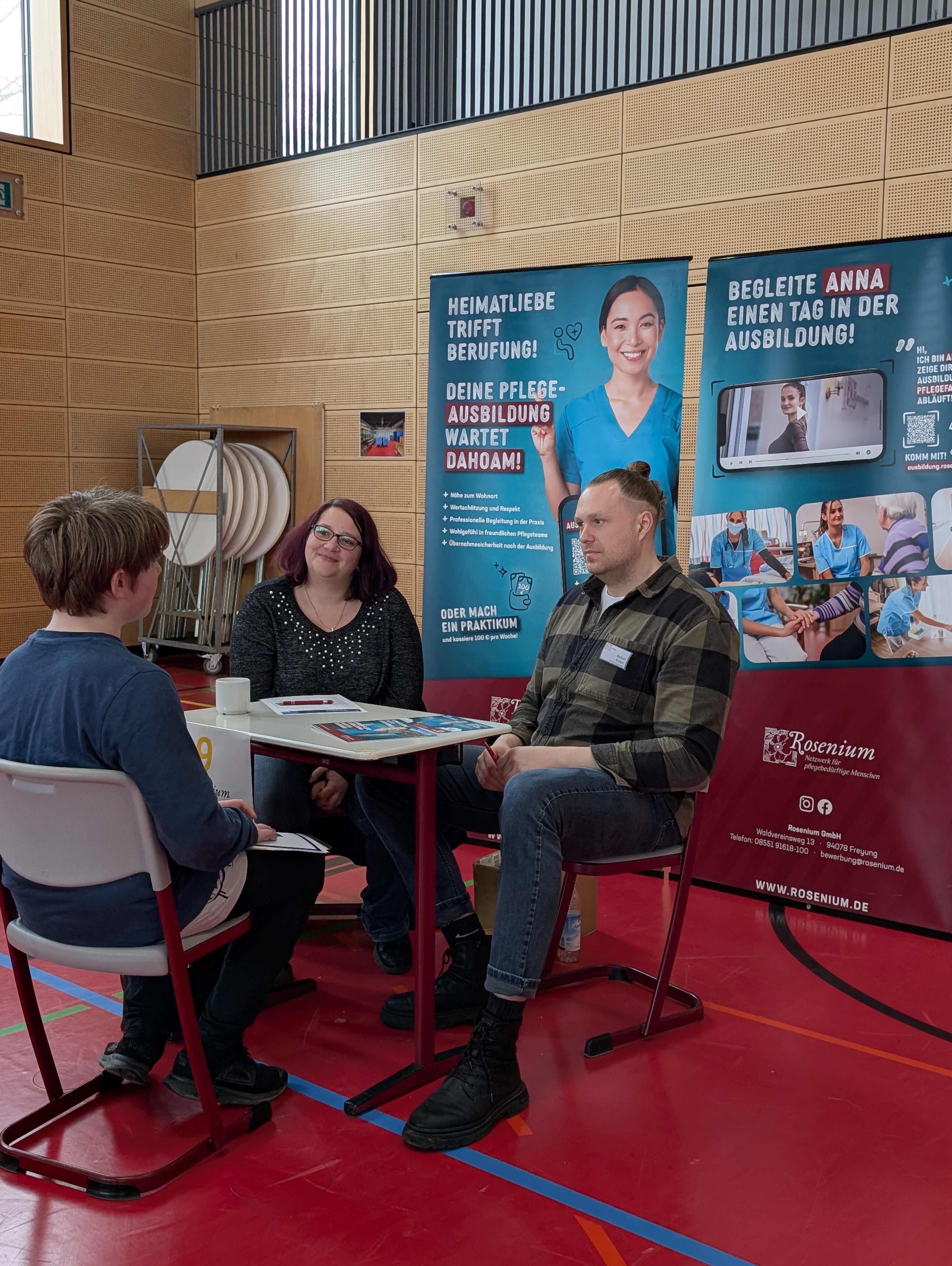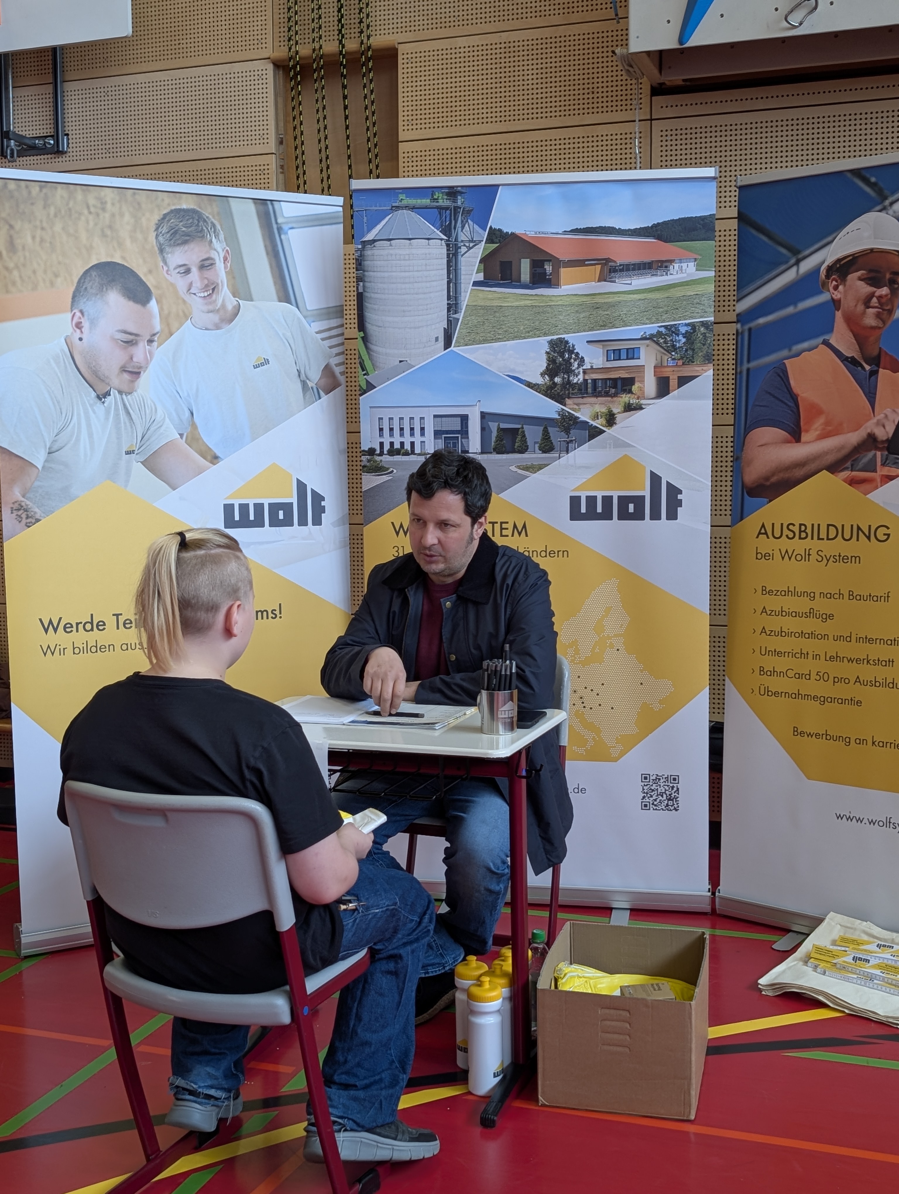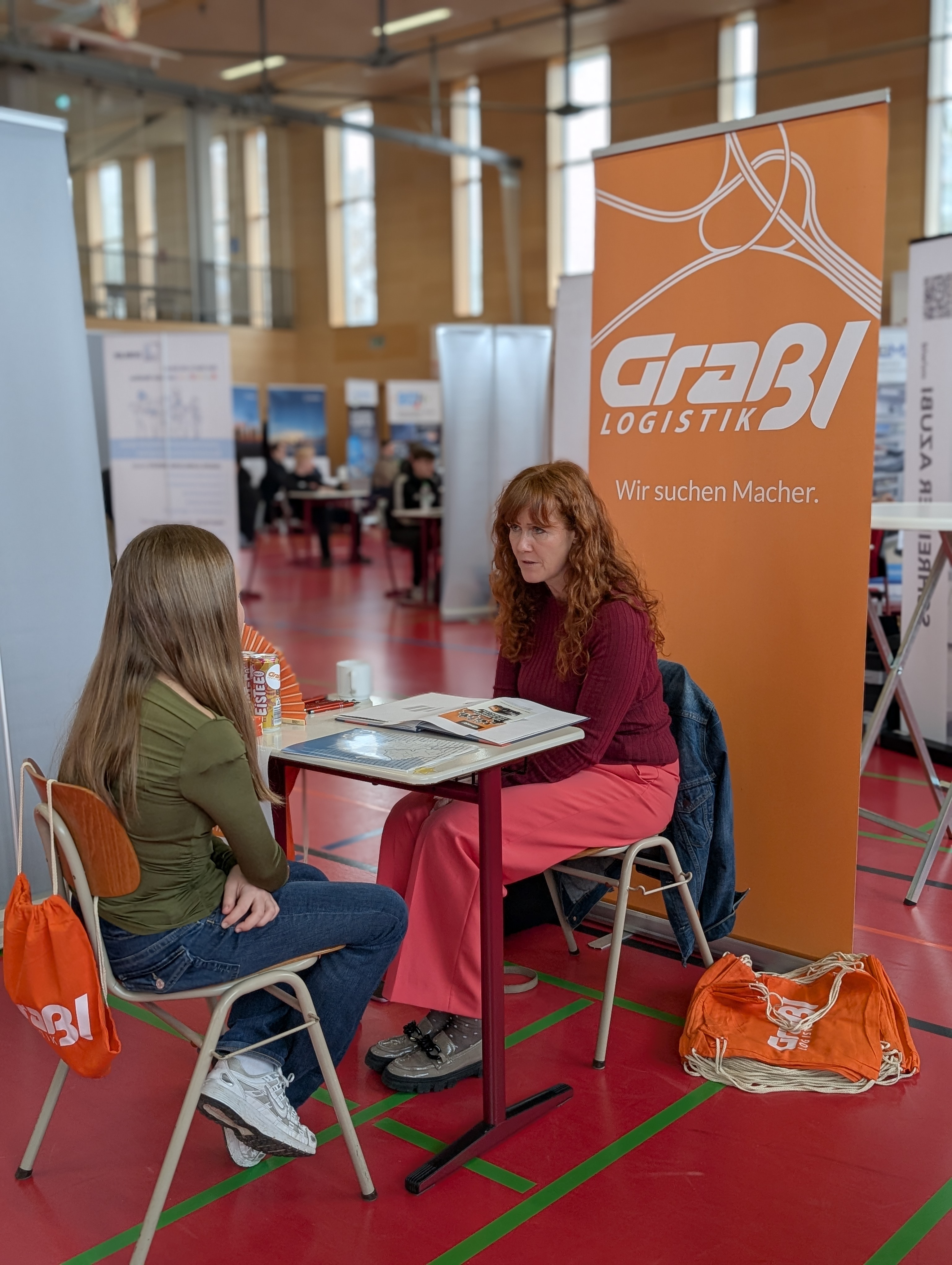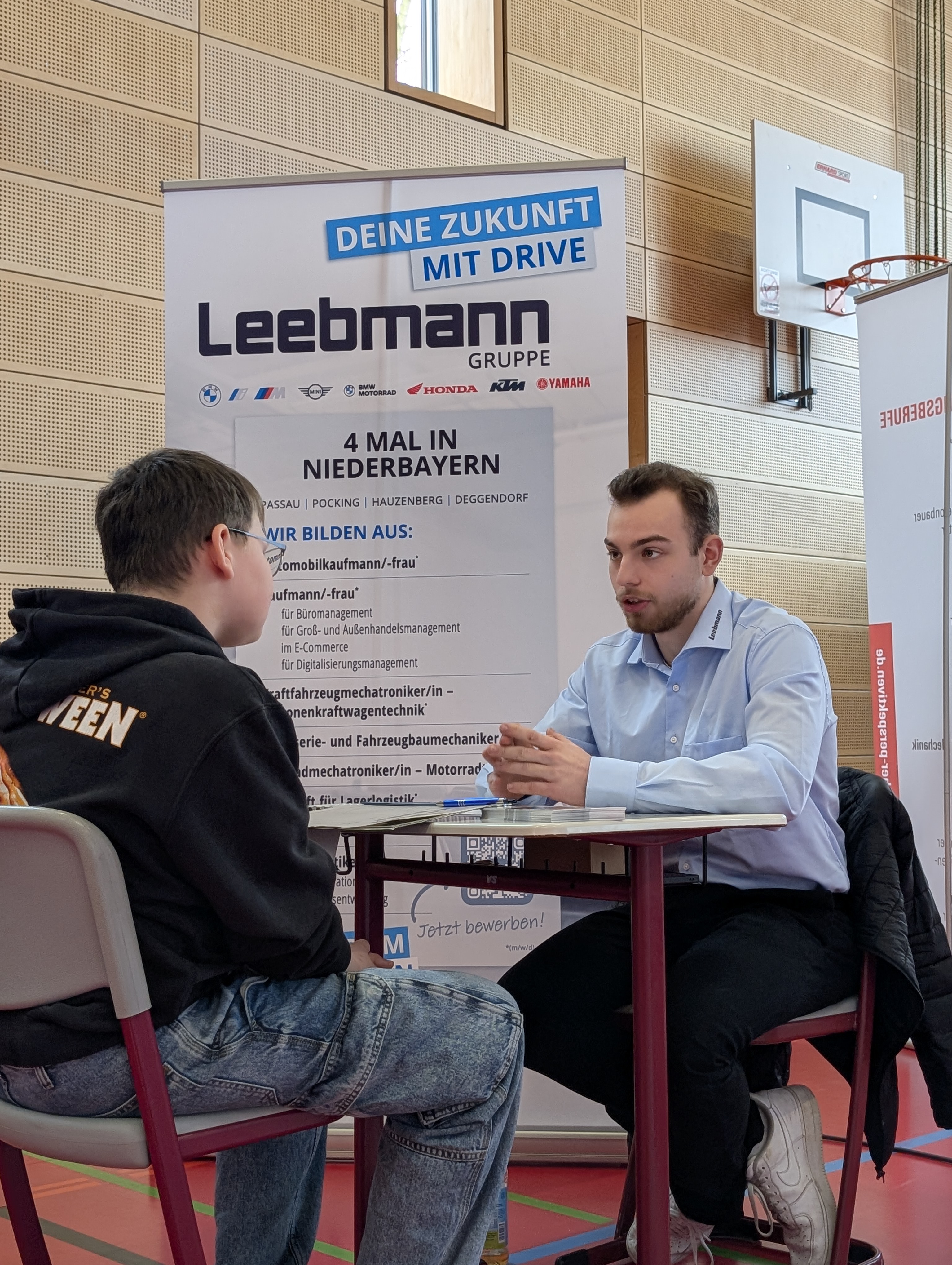 Die Mittelschule Hengersberg unterstützte die Organisation des Tages mit großem Engagement. Schülerinnen und Schüler halfen beim Auf- und Abbau der Stände und kümmerten sich um die Verpflegung der teilnehmenden Betriebe. Bereits im Vorfeld wurden die Jugendlichen durch das Regionalmanagement intensiv auf die Gespräche vorbereitet. Dabei standen Themen wie Auftreten, Gesprächsführung und gezielte Fragestellungen im Mittelpunkt. Während viele zu Beginn noch etwas zurückhaltend waren, gewannen sie im Laufe des Vormittags zunehmend an Sicherheit und Selbstbewusstsein.