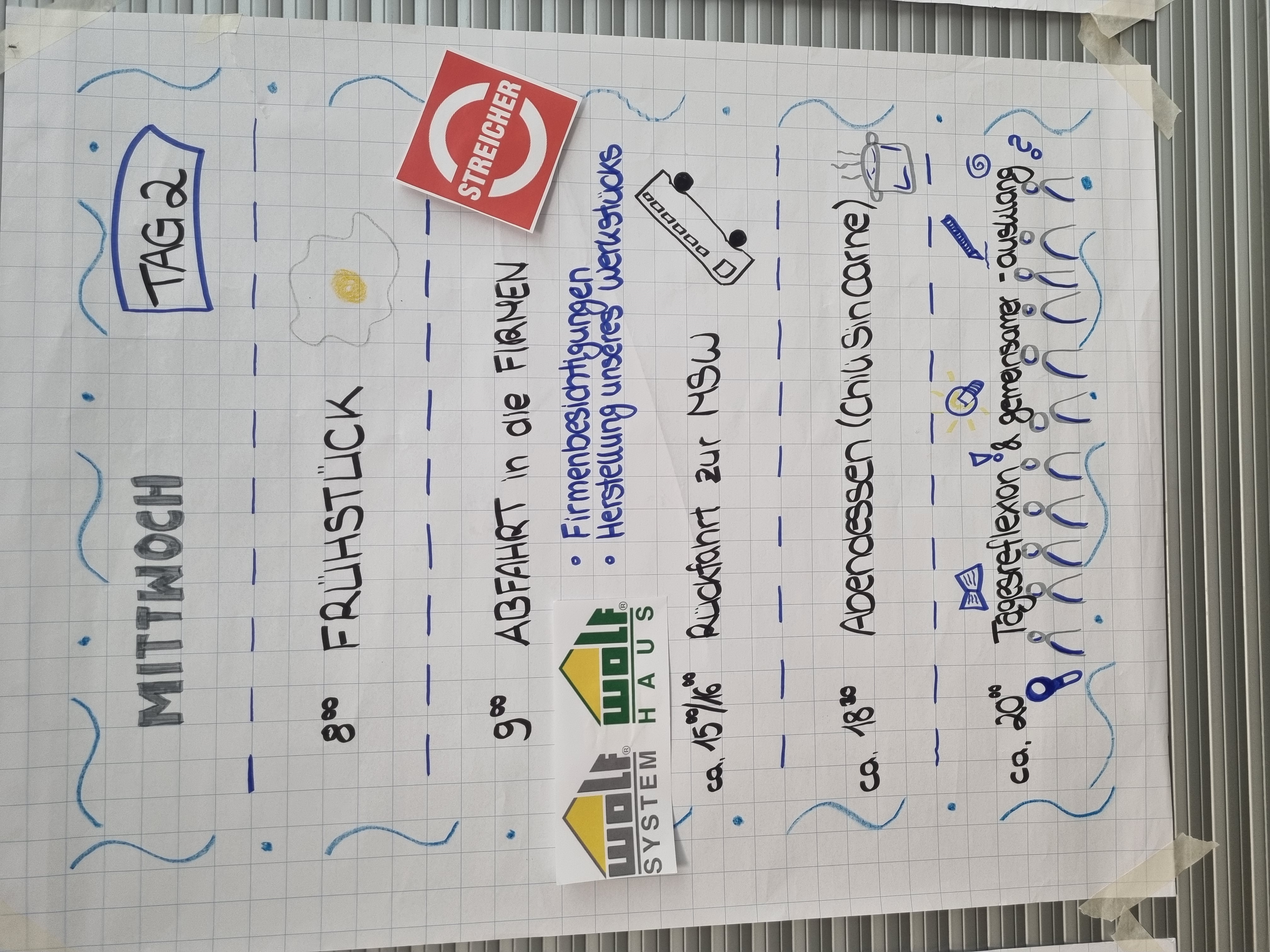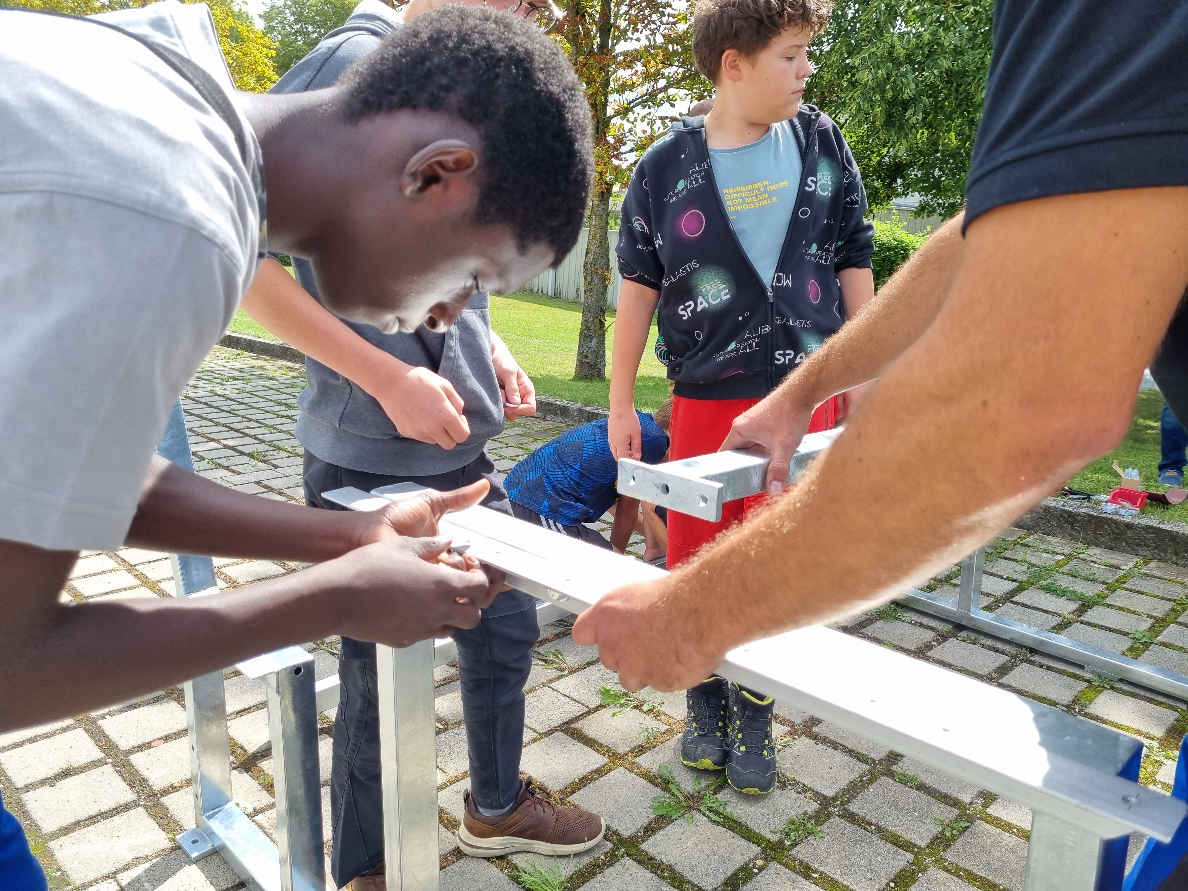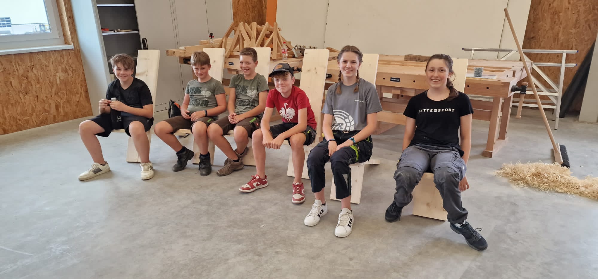 Am zweiten Tag teilte sich die Gruppe: ein Teil machte sich auf den Weg nach Deggendorf zur Firma STREICHER. Dort wurde nach einer Betriebsführung das Metallgestell für die Sitzgruppe hergestellt. Die zweite Gruppe fuhr währenddessen nach Osterhofen zu Wolf System. Dort bekamen die Jugendlichen einen kleinen Einblick in die Firma und fertigten die Holzauflagen für die Sitzgruppe. Da noch etwas Zeit war, baute sich jeder Teilnehmer auch noch gleich eine eigene Sitzgelegenheit, die zuhause sicher einen guten Platz findet.