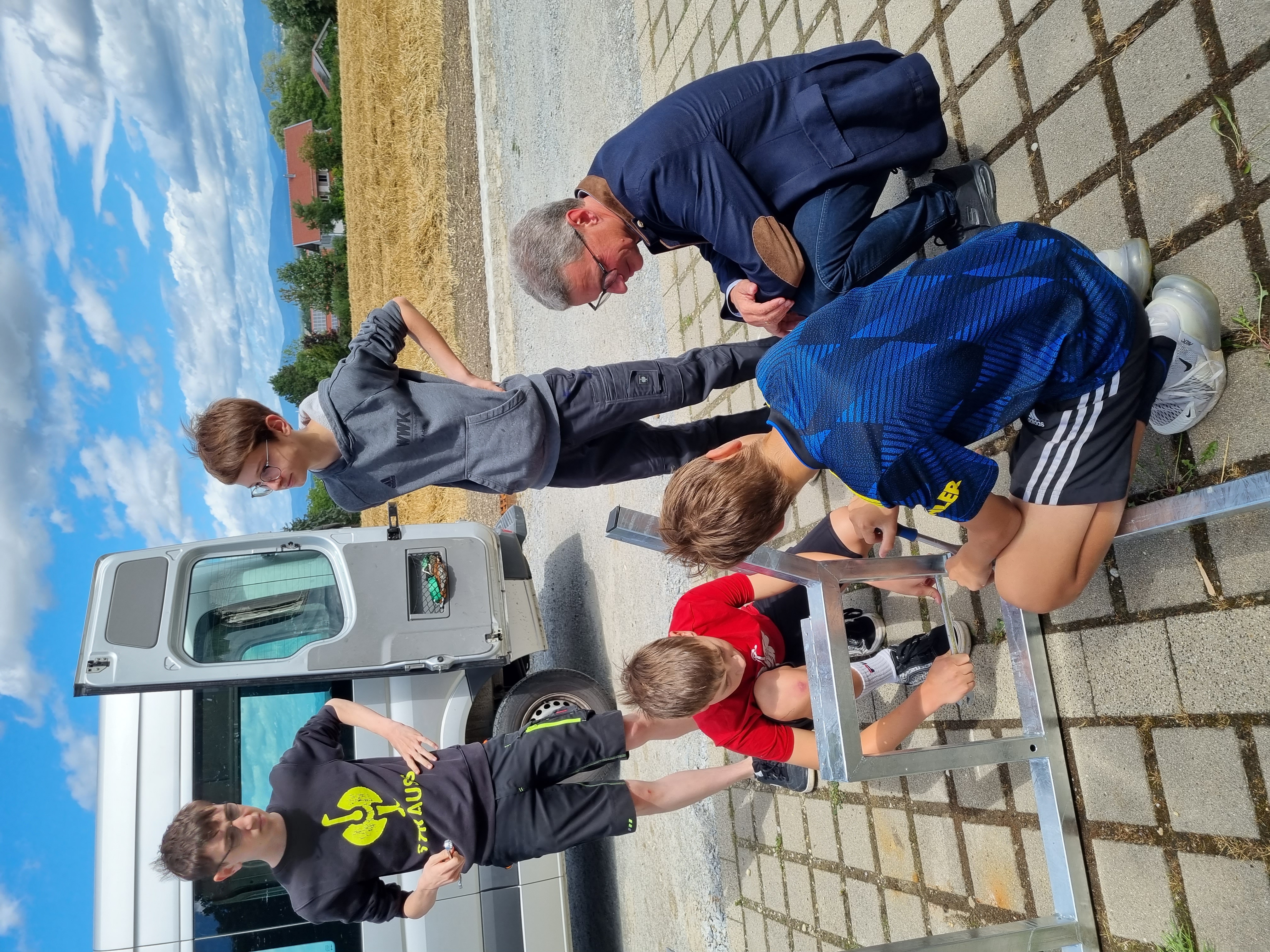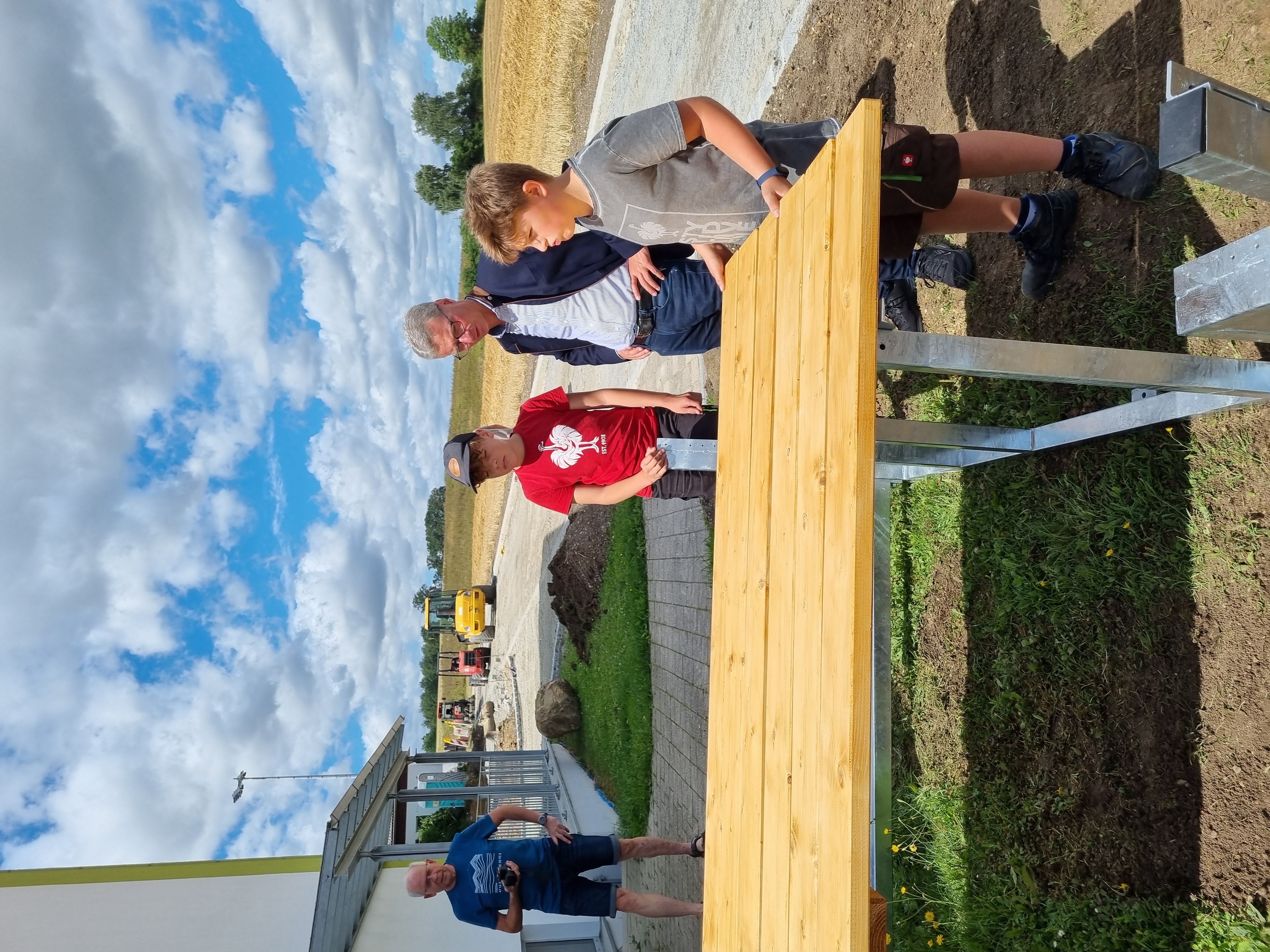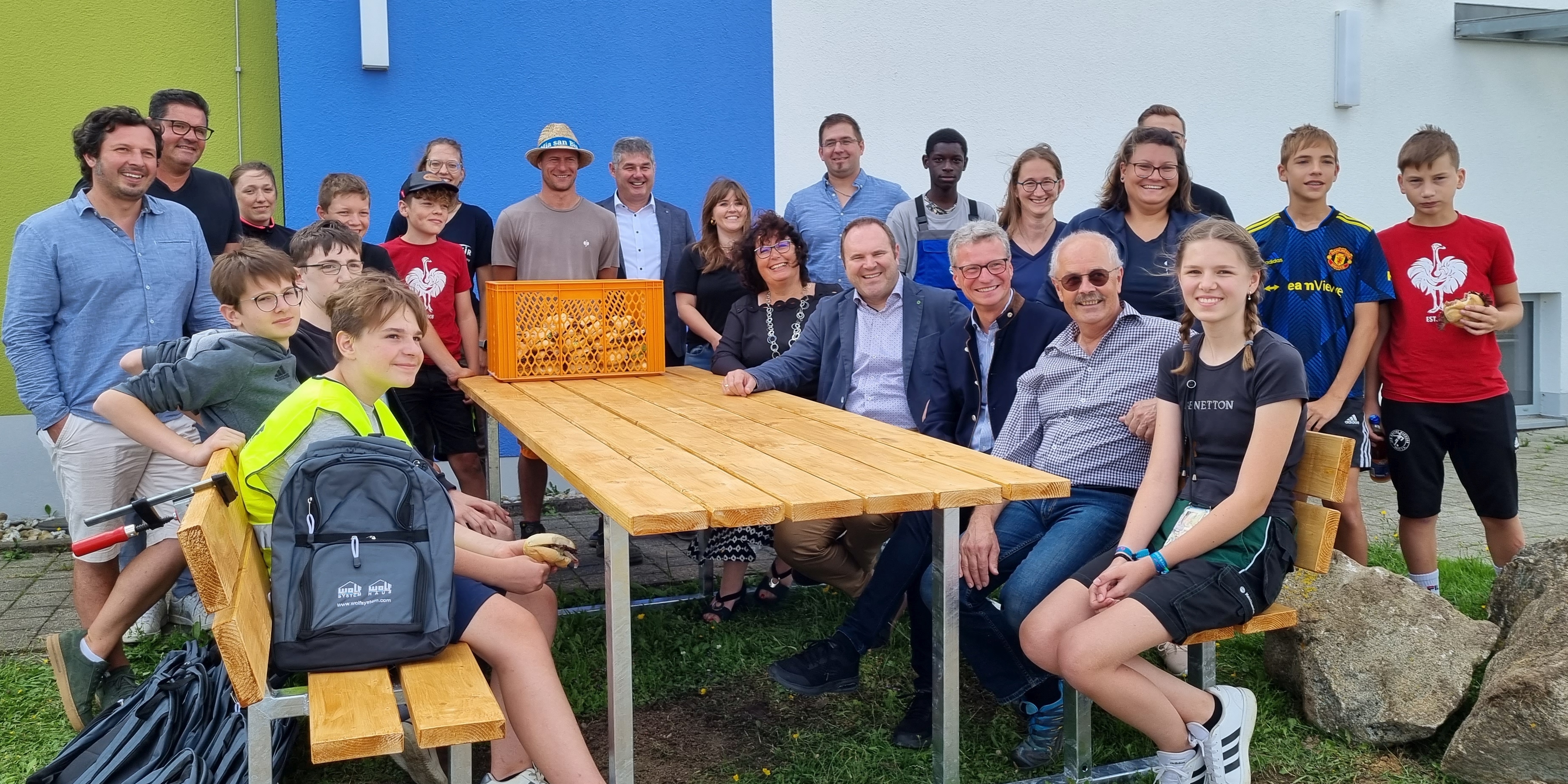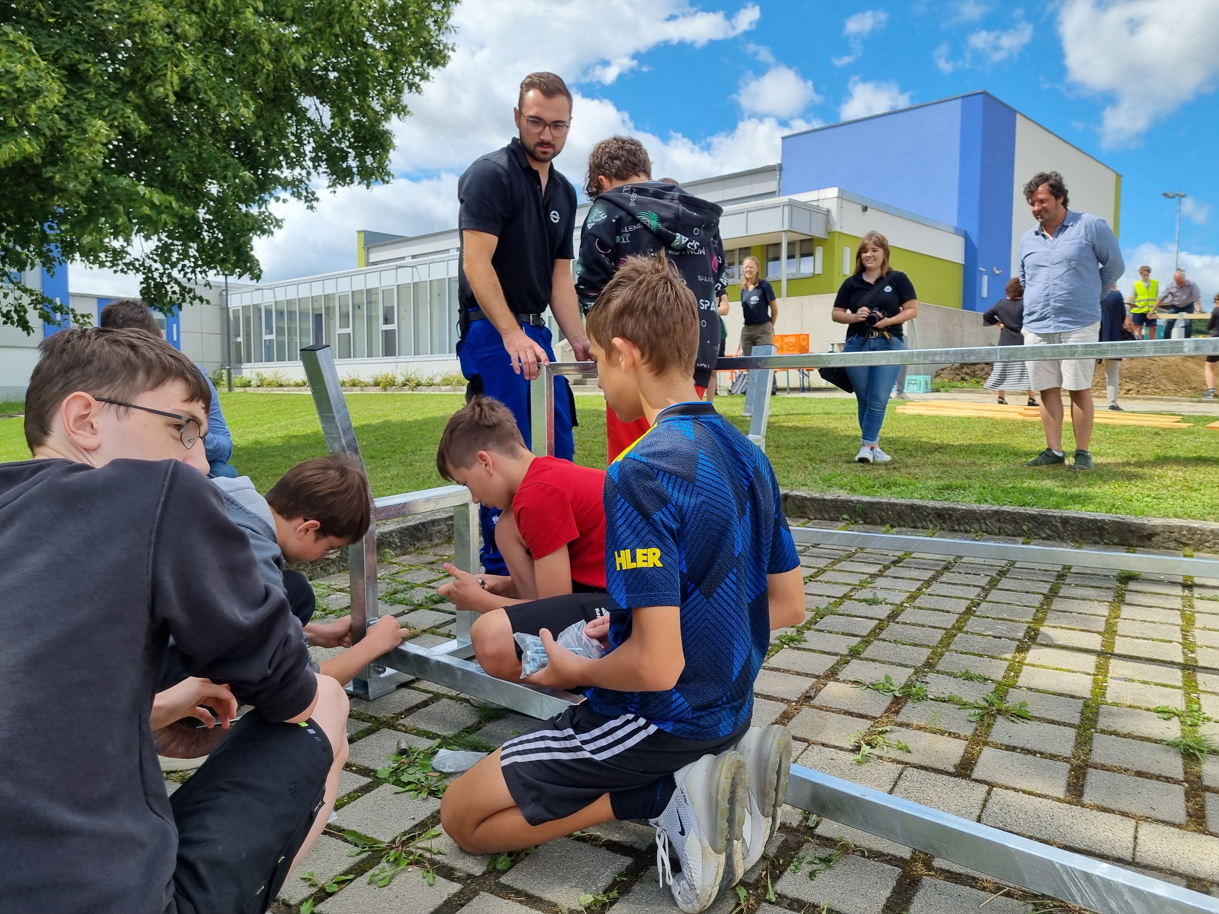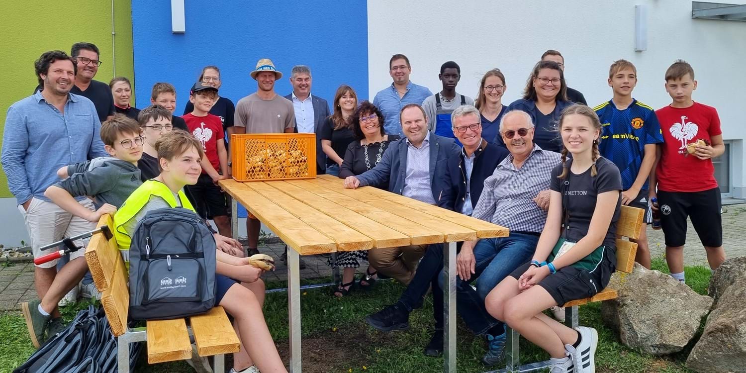 Die beteiligten Firmen Wolf und Streicher zeigten sich vom Projekt ebenfalls überzeugt: „Es ist wichtig, dass die Jugendlichen praktische Erfahrungen sammeln und Einblicke in die Firmen der Region erlangen. Im Rahmen der Praktika machen wir das gerne in der Schulzeit. Beim BauCamp ist das jetzt organisiert auch in den Ferien möglich. Das freut uns sehr“, betonen Stefan Weinberger (STREICHER) und Matthias Meier (Wolf System). Zum Abschluss des BauCamps wurde die Sitzgelegenheit von den Ehrengästen und Teilnehmern bei einer Brotzeit und Limo ausgiebig getestet.