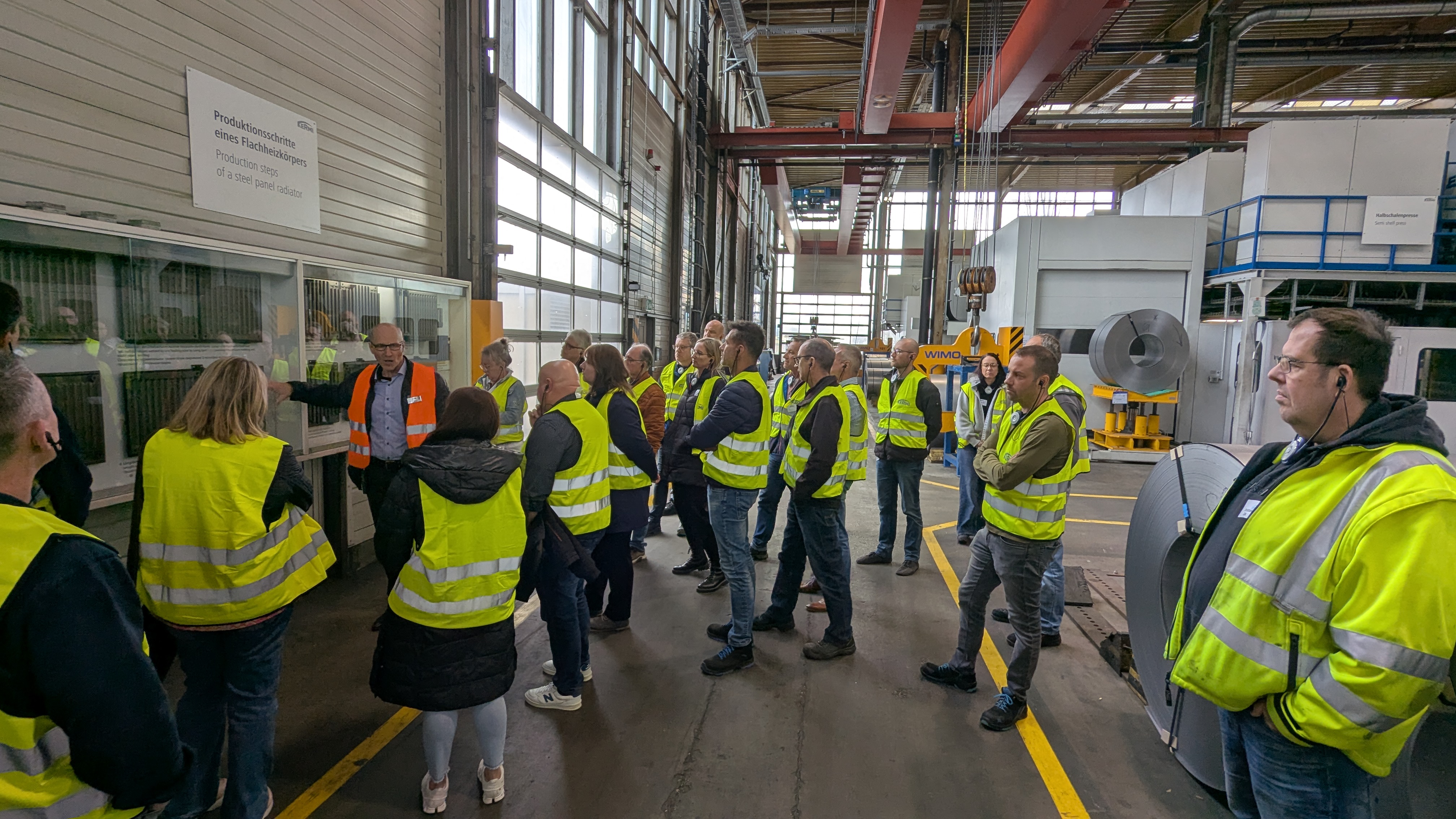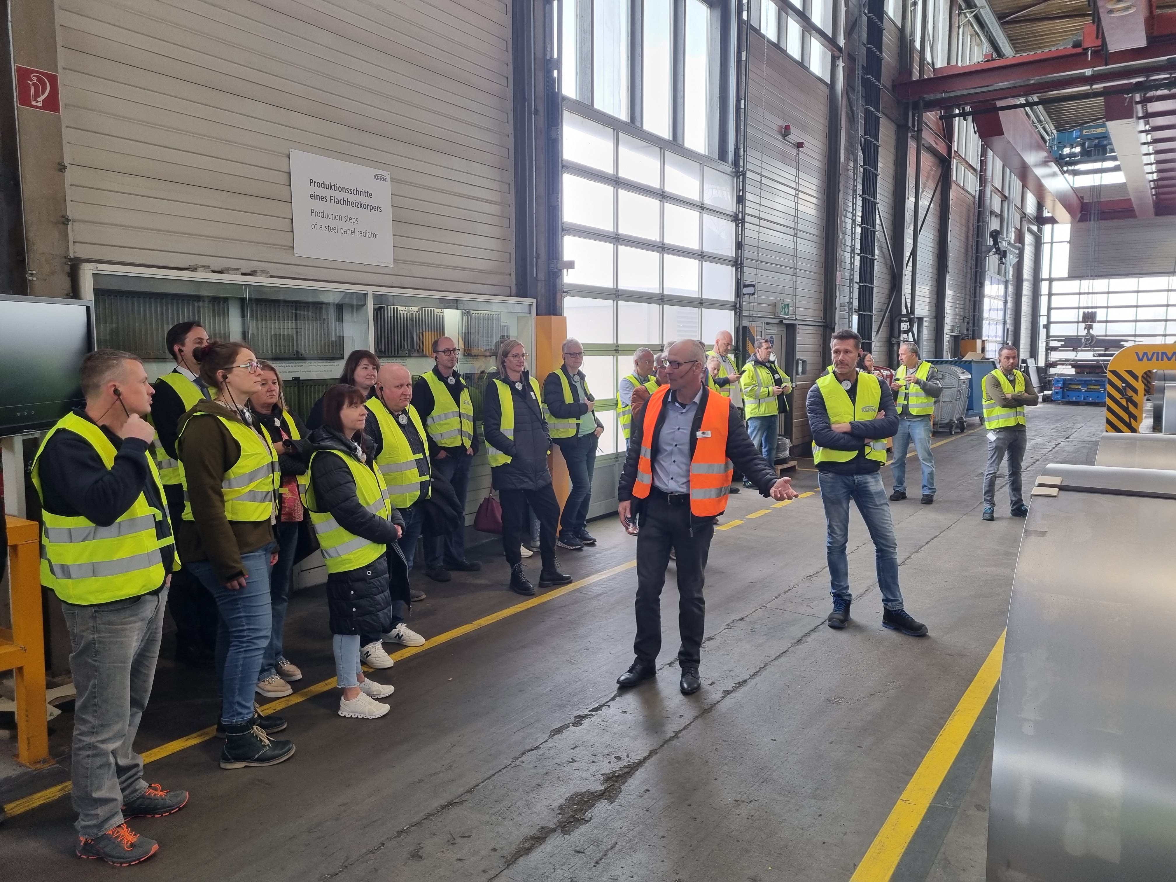 Ein besonderes Highlight war die Führung durch die modernen Produktionshallen: Betriebsrat Hans Ehrl zeigte eindrucksvoll, wie Automatisierung und Künstliche Intelligenz bereits heute bei der Herstellung von Duschkabinen und Flachheizkörpern zum Einsatz kommen. Die Teilnehmenden zeigten großes Interesse – viele Fragen und spannende Gespräche inklusive.