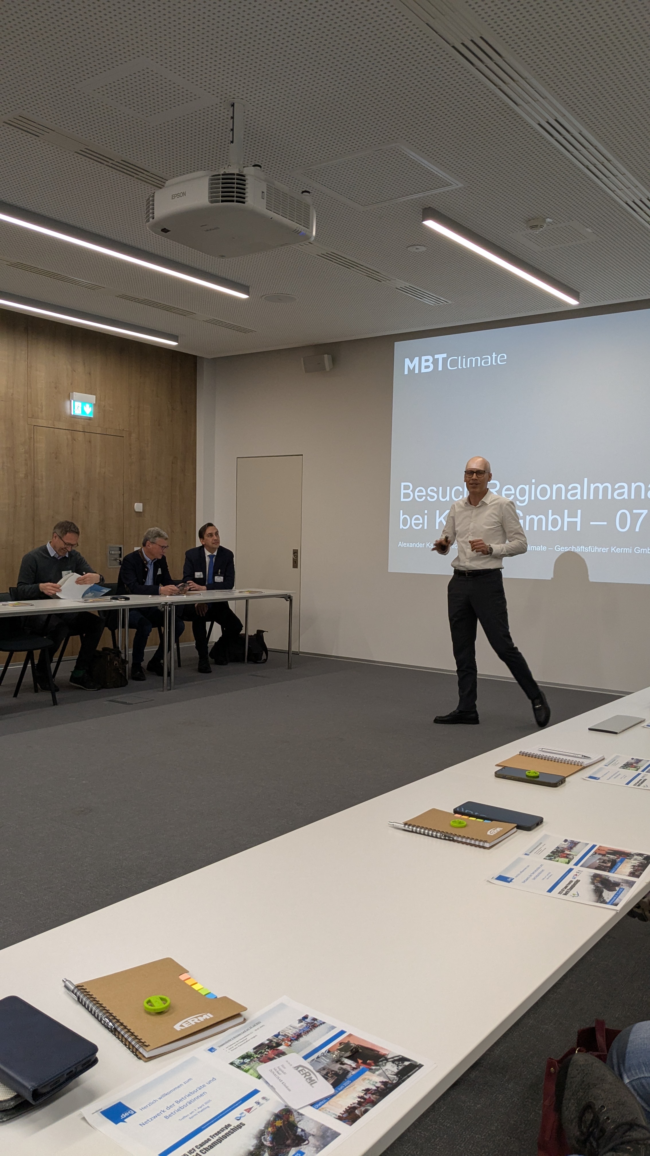 Nach der Begrüßung durch Betriebsrat Rudolf Kerschl und Landrat Bernd Sibler, der die Bedeutung des Austauschs und der Zusammenarbeit über Unternehmensgrenzen hinweg betonte, stellte Alexander Kaiß, Geschäftsführer der Kermi GmbH, das Unternehmen vor. Dabei gab er spannende Einblicke in die Entwicklung, Schwerpunkte und Zukunftsstrategien des Traditionsunternehmens.
