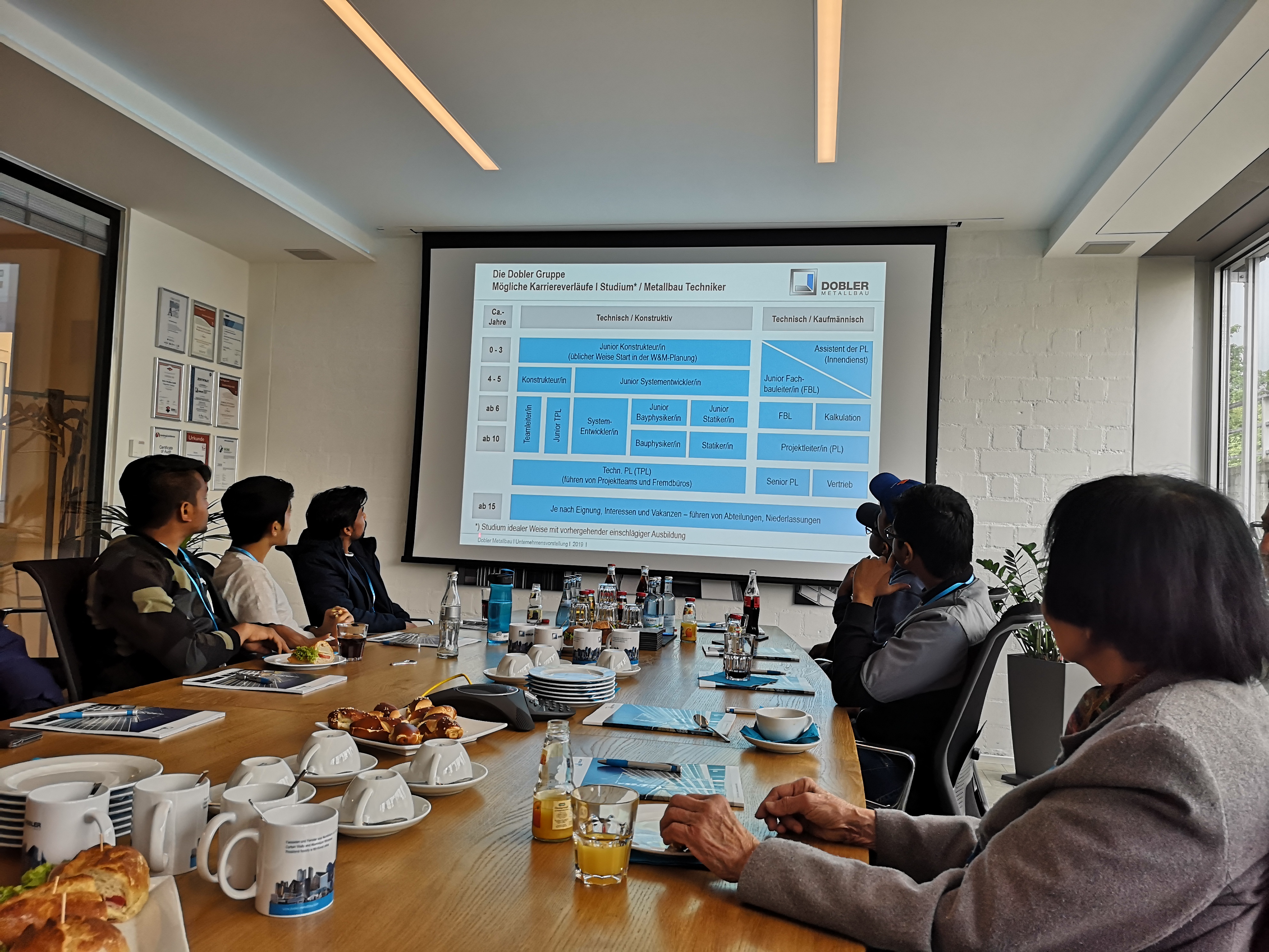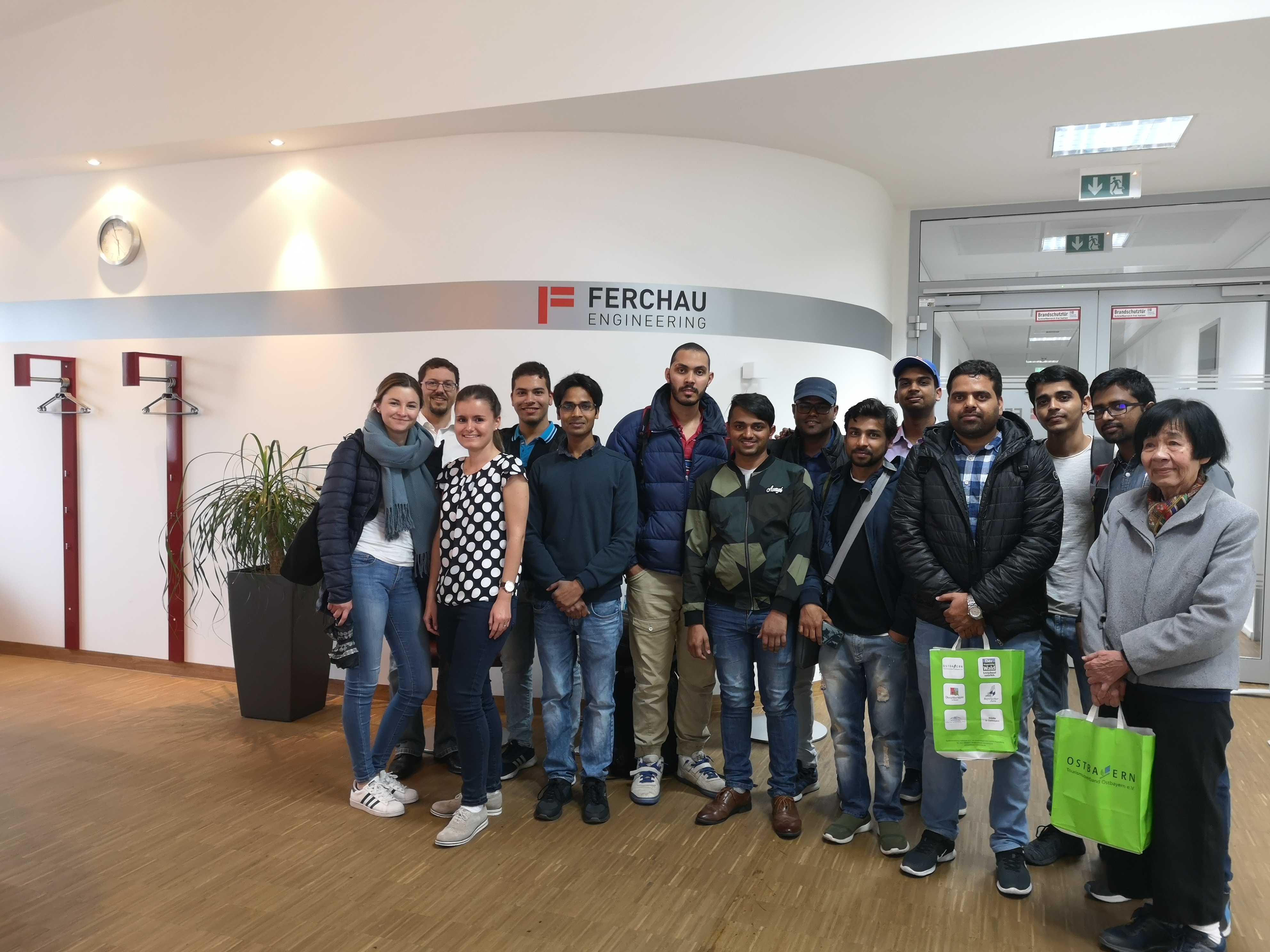 Die dritte Tour blieb im Landkreis Deggendorf und war insbesondere für die Ingenieurstudenten interessant: als erstes Unternehmen wurde die Firma Dobler aus Deggendorf, spezialisiert auf Fassadenbau und international tätig, angesteuert. Geschäftsführer Daniel Rauh zeigte den Studenten beim Rundgang durch die Firma die Produkte, deren Herstellungsverfahren und beantwortete alle möglichen Fragen der Studenten- insbesondere auch die Fragen über einen möglichen Einstieg bei Dobler. Als zweites Unternehmen nutzte Edscha die Career Tour, um sich bei den Studenten zu präsentieren. Als wichtiger Zulieferer für die Automobilindustrie fertigt Edscha u.a. Scharniere, was bei einer interessanten Tour durch die Werkshallen gezeigt wurde. Abgeschlossen wurde die Tour bei der Firma Ferchau am ITC2 in Deggendorf. Sie sind in den verschiedensten IT- und Ingenieurfachbereichen tätig und zeigten den Studenten ebenfalls, wie ein Einstieg nach dem Studium gelingen kann.