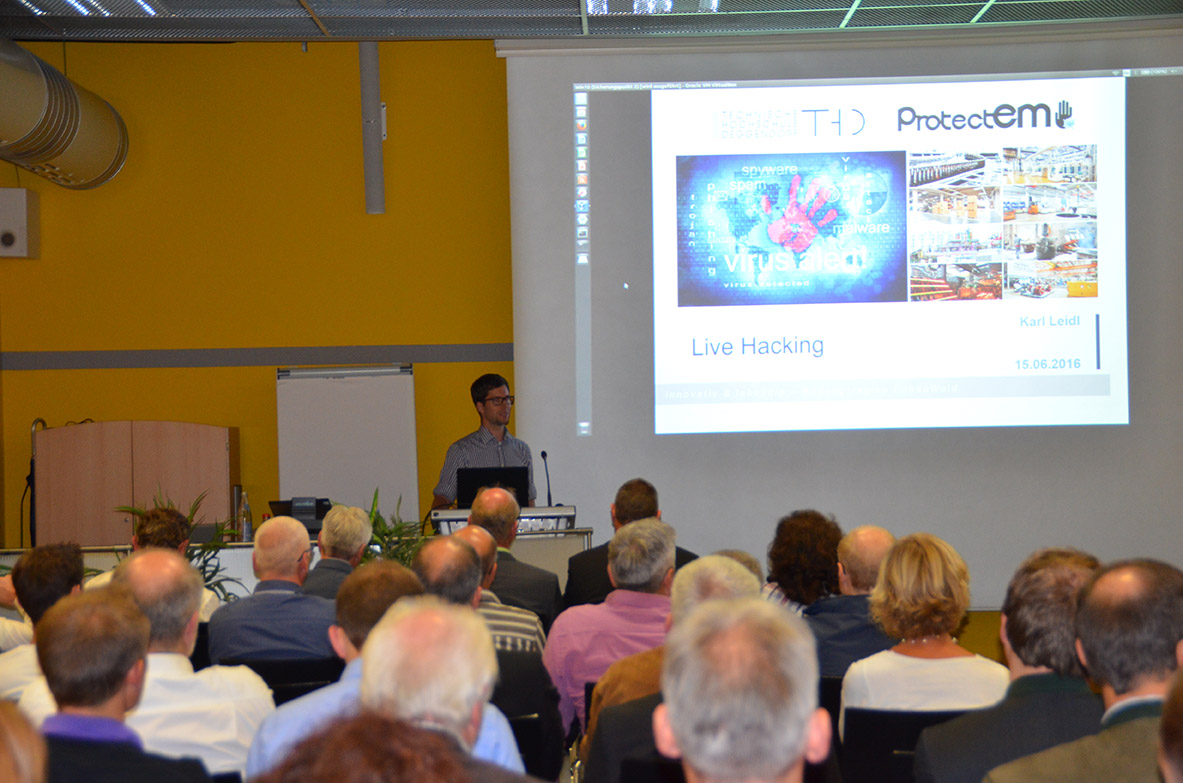 Welche Gefahren und Verbrechen sich im Alltag eines Unternehmens dahinter verbergen, wurde beim Unternehmertag 2016 von vier Referenten aus verschiedenen Blickwinkeln beleuchten. Frank Winter und Wolfgang Stegbauer, zwei Cyber-Cops von der Kriminalpolizeidienststelle Straubing, Karl Leidl technischer Mitarbeiter von der Technischen Hochschule Deggendorf und Christian Volkmer von Projekt 29 Regensburg hatten den knapp 100 anwesenden Teilnehmern zum Thema einiges zu erzählen. Der Informationsnachmittag mit anschließendem Grillfest am ITC1 Deggendorf hat aufgezeigt, welche Art von Internetverbrechen bei uns in der Region aktenkundig sind und welche Handhabe die Unternehmer dagegen haben. In einem Live-Hackingangriff, durchgeführt von Herrn Leidl, wurde visualisiert, wie leicht es ist, ein Firmennetzwerk zu durchdringen und dementsprechend Daten zu platzieren oder zu entwenden. „Es war eine lockere Netzwerkveranstaltung mit vielen Gästen und aufschlussreichen Vorträgen,” so das Fazit der Teilnehmer.