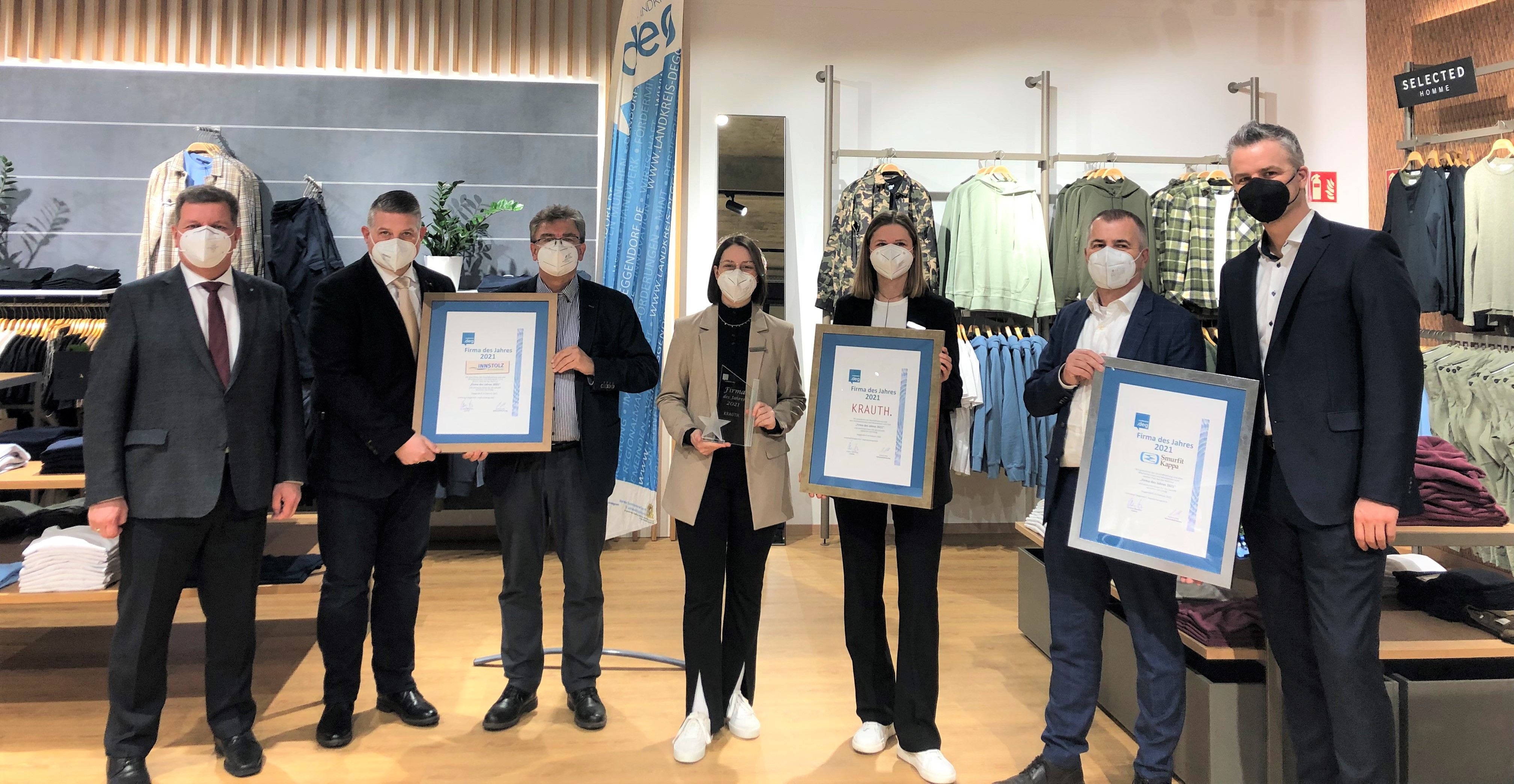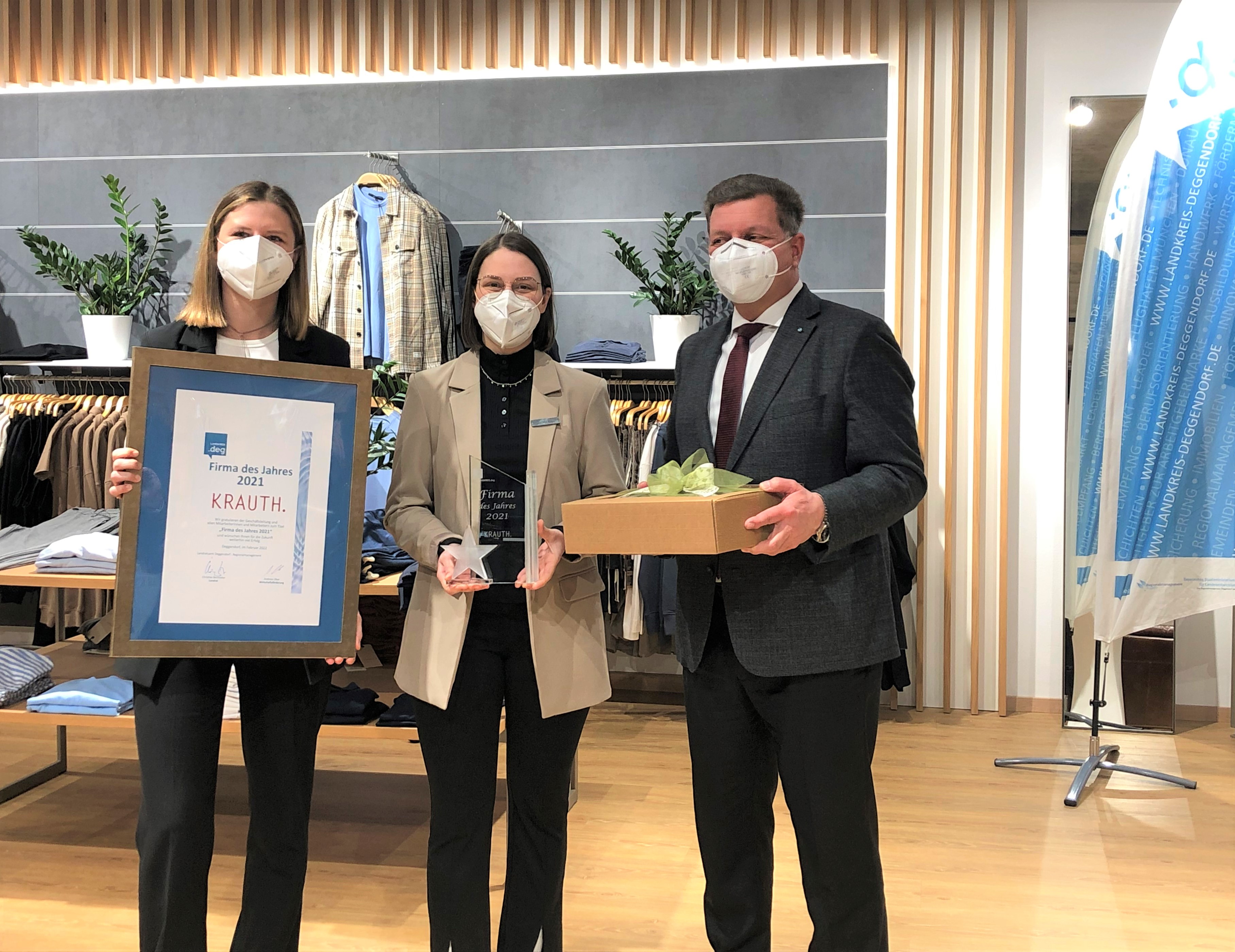 „Bereits auf 250 Jahre Firmengeschichte blickt die diesjährige „Firma des Jahres“ zurück. Seit der Gründung als Gemischtwarengeschäft im Jahre 1771 hat sich der Betrieb immer wieder angepasst und weiterentwickelt. Mittlerweile in 8. Generation ist das Modehaus Krauth seit jeher ein wichtiger Anlaufpunkt im Stadtzentrum von Deggendorf“, stellte Landrat Bernreiter bei der Ehrung fest. Franziska und Antonia Krauth nahmen im Anschluss den Pokal und die Urkunde zur „Firma des Jahres 2021“ entgegen. „Wir freuen uns sehr über diese Auszeichnung. Vor allem auch, weil wir die letzten Jahre ziemlich viele wichtige Zukunftsentscheidungen getroffen haben: die Verkaufsflächen wurden vergrößert und modernisiert. Die Herrenabteilung neu geschaffen. So bieten wir unseren Kunden ein tolles Einkaufserlebnis und zusätzlich unseren 40 Mitarbeiterinnen und Mitarbeiter ein gutes Arbeitsumfeld“, blicken die beiden zurück und bedankten sich für die Auszeichnung.