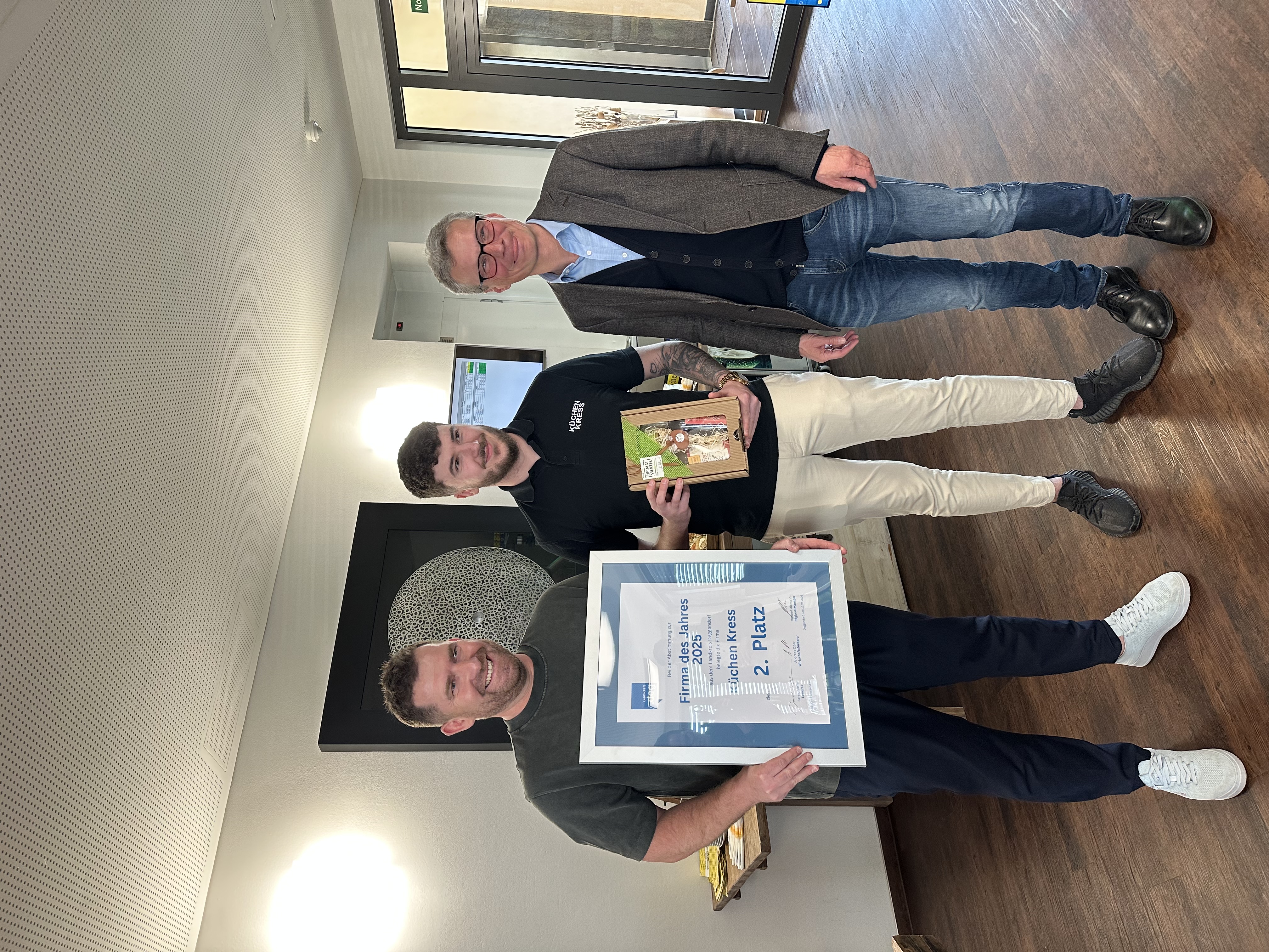Die Auszeichnung wurde in den Räumlichkeiten des Unternehmens verliehen. Vor Ort gratulierten unter anderem Bernd Sibler und Hans Schmalhofer persönlich zum Erfolg. Neben dem Gewinner durften sich auch Küchen Kress und Pia’s Partyservice über die Anerkennung freuen – sie hatten sich ebenfalls stark in der Abstimmung behauptet. Alle drei Unternehmen erhielten Urkunden und Präsentkörbe mit regionalen Spezialitäten.