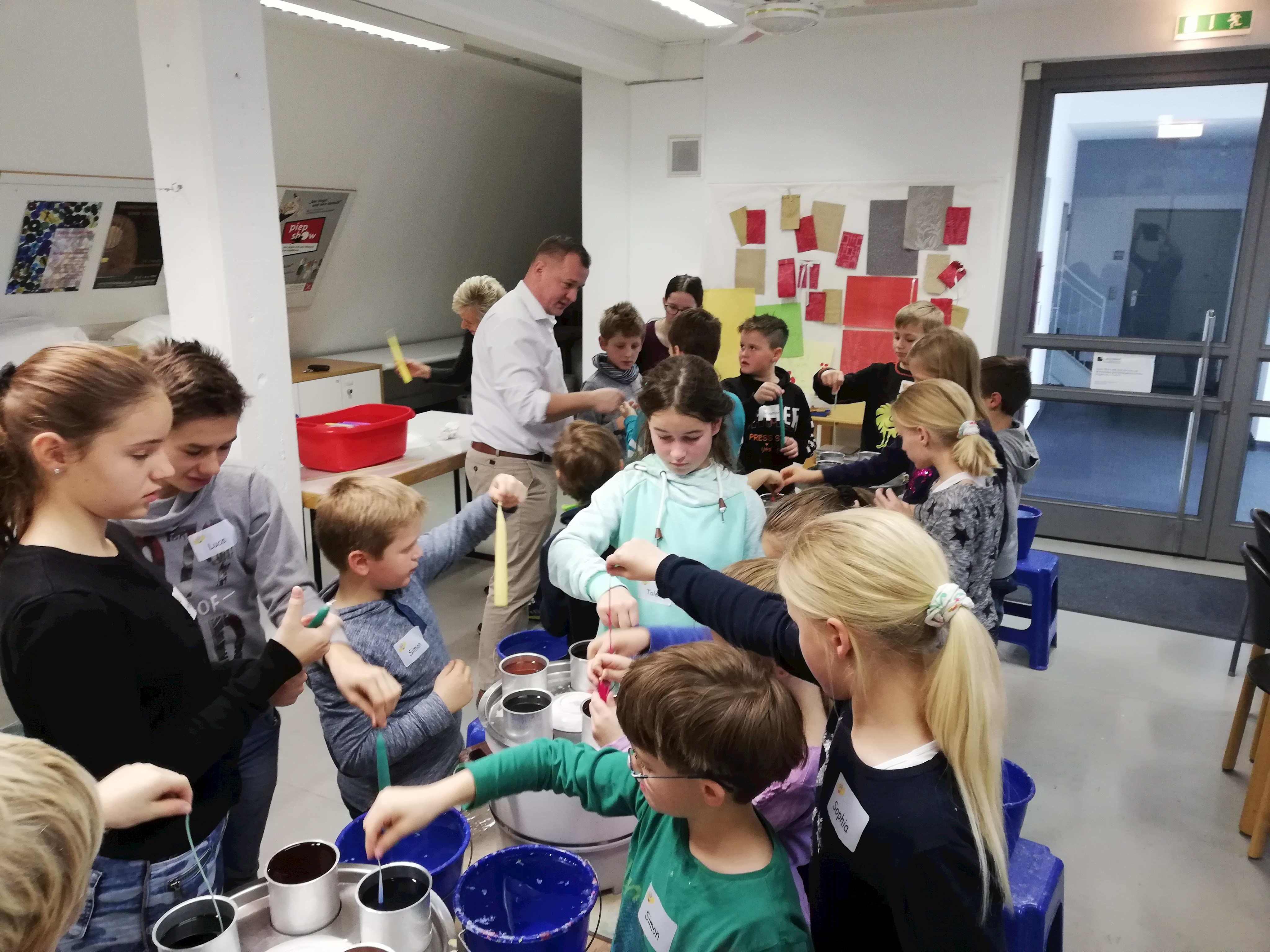 Schon nach den ersten Besprechungen der Großwaldinger Betriebe über gemeinsame Aktionen hat sich eine erste kleine Maßnahme ergeben: die Firmen Dobler Metallbau und Nerlich&Lesser haben am Buß- und Bettag ein gemeinsames Vormittagsprogramm der Mitarbeiter-Kinder organisiert. Nach der Ankunft gab´s für die Kinder erst ein gemeinsames Frühstück, bevor man auf dem Weg zum Stadt- und Handwerksmuseum machte. Dort angekommen schloss man sich dem Kindermitbringtag des Landratsamtes an. Hier konnten die Kinder zwischen Kerzenziehen und Lippenbalsam zubereiten wählen. Nach viel Ausprobieren, Gelächter, Spaß, neuen Bekanntschaften und vielen Infos ging´s gegen 12:30 Uhr wieder zurück an den Arbeitsplatz der Eltern.