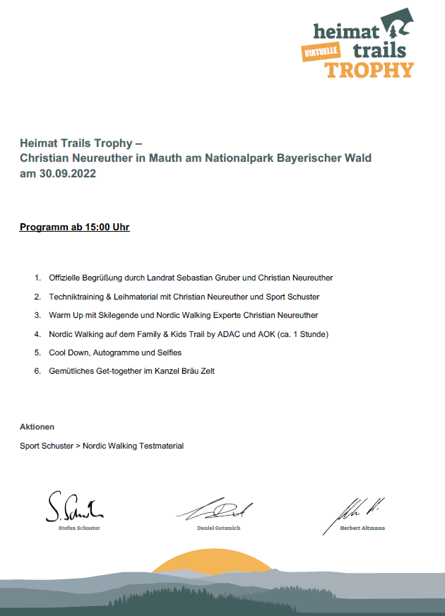 Ein absolutes Highlight wartet nachmittags insbesondere für die Nordic Walker unter den Heimat Trails-Akteuren: Christian Neureuther kommt! Gemeinsam mit allen Interessierten wird er die Strecken rund um Mauth absolvieren und sicher einige Tipps parat haben. Vorbeischauen lohnt sich!