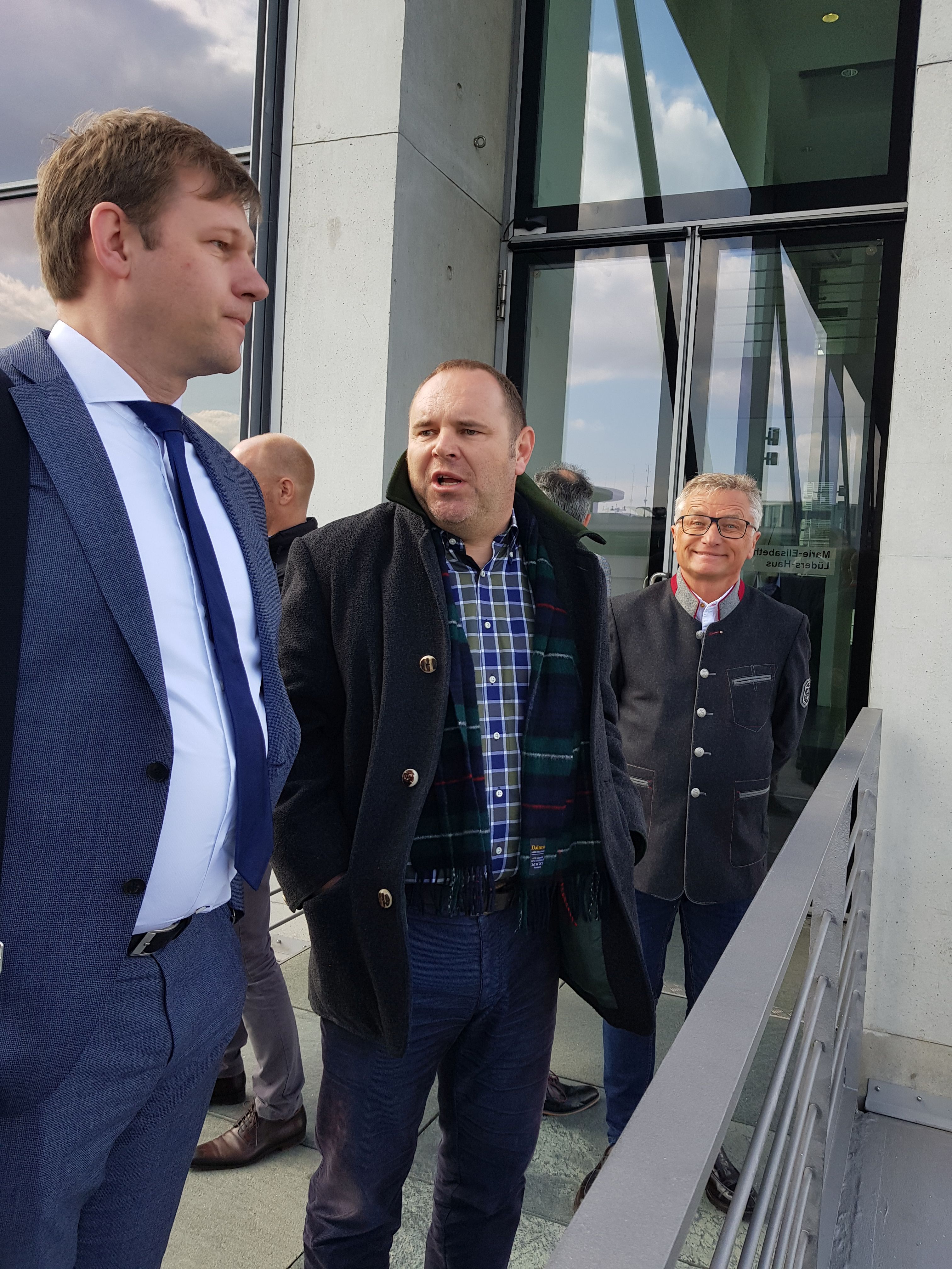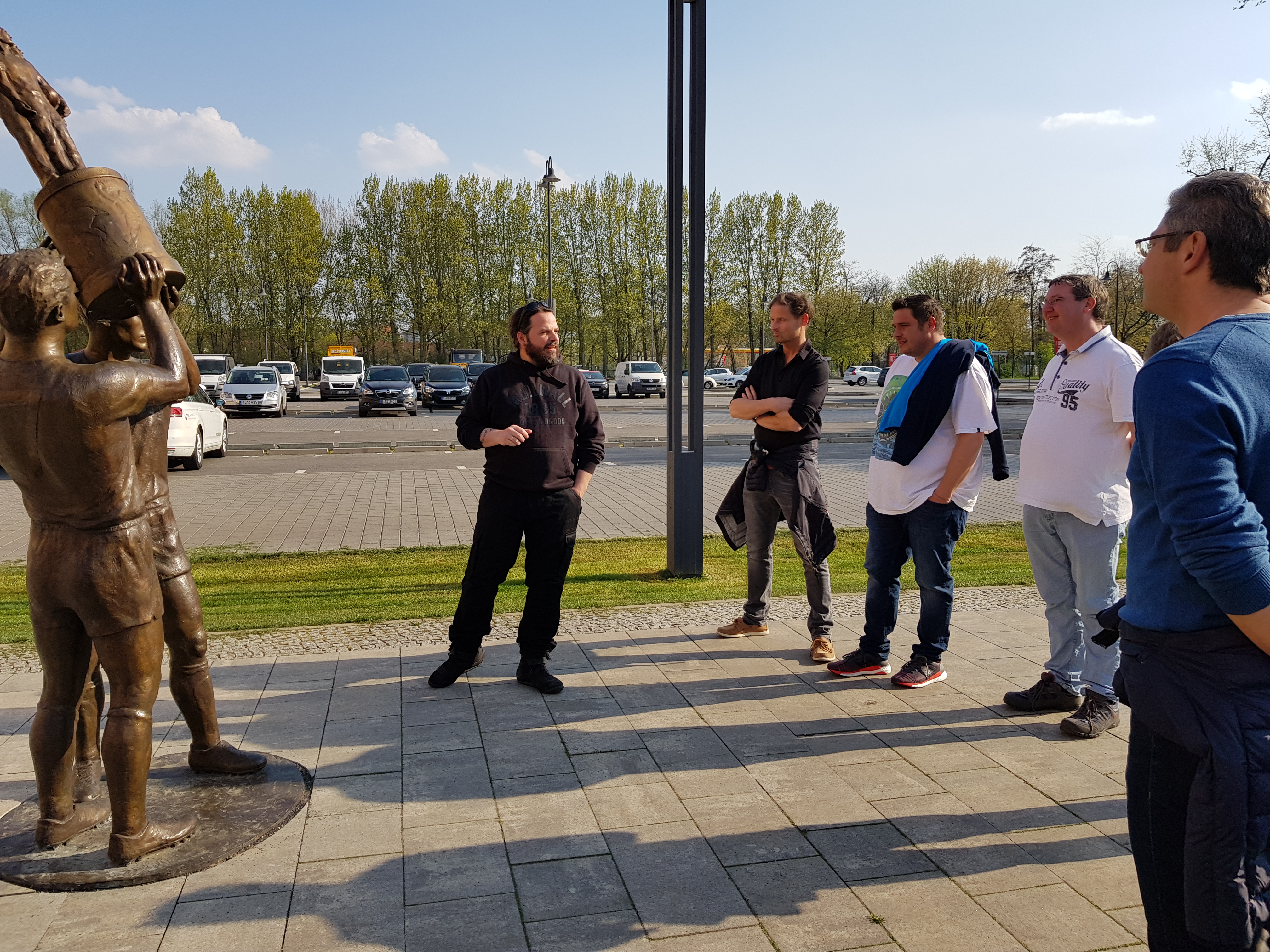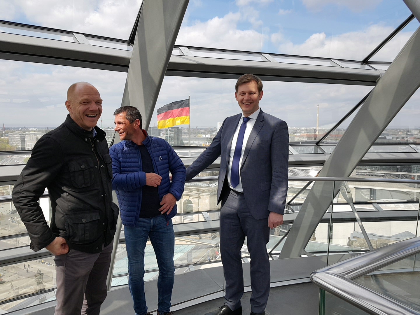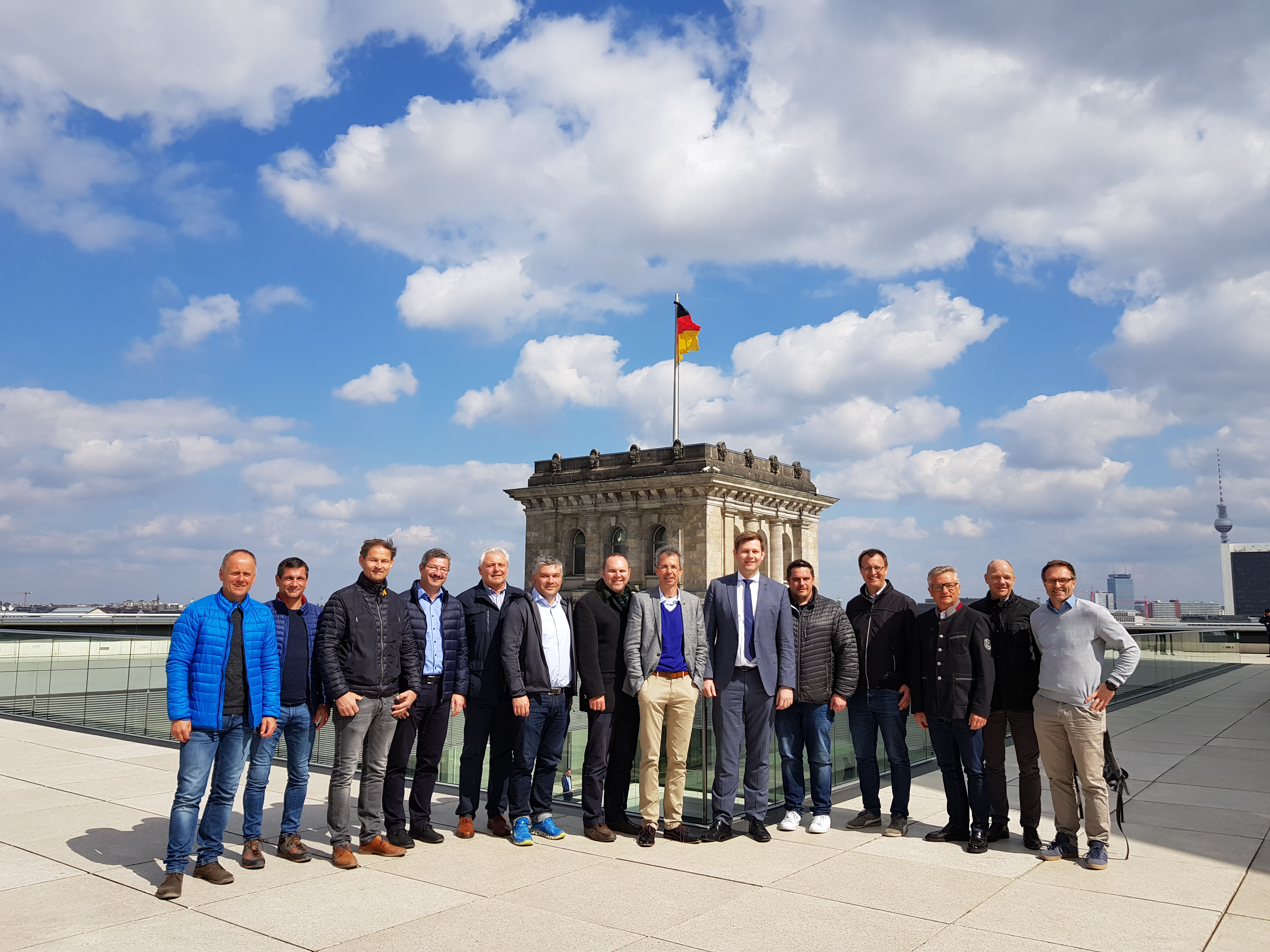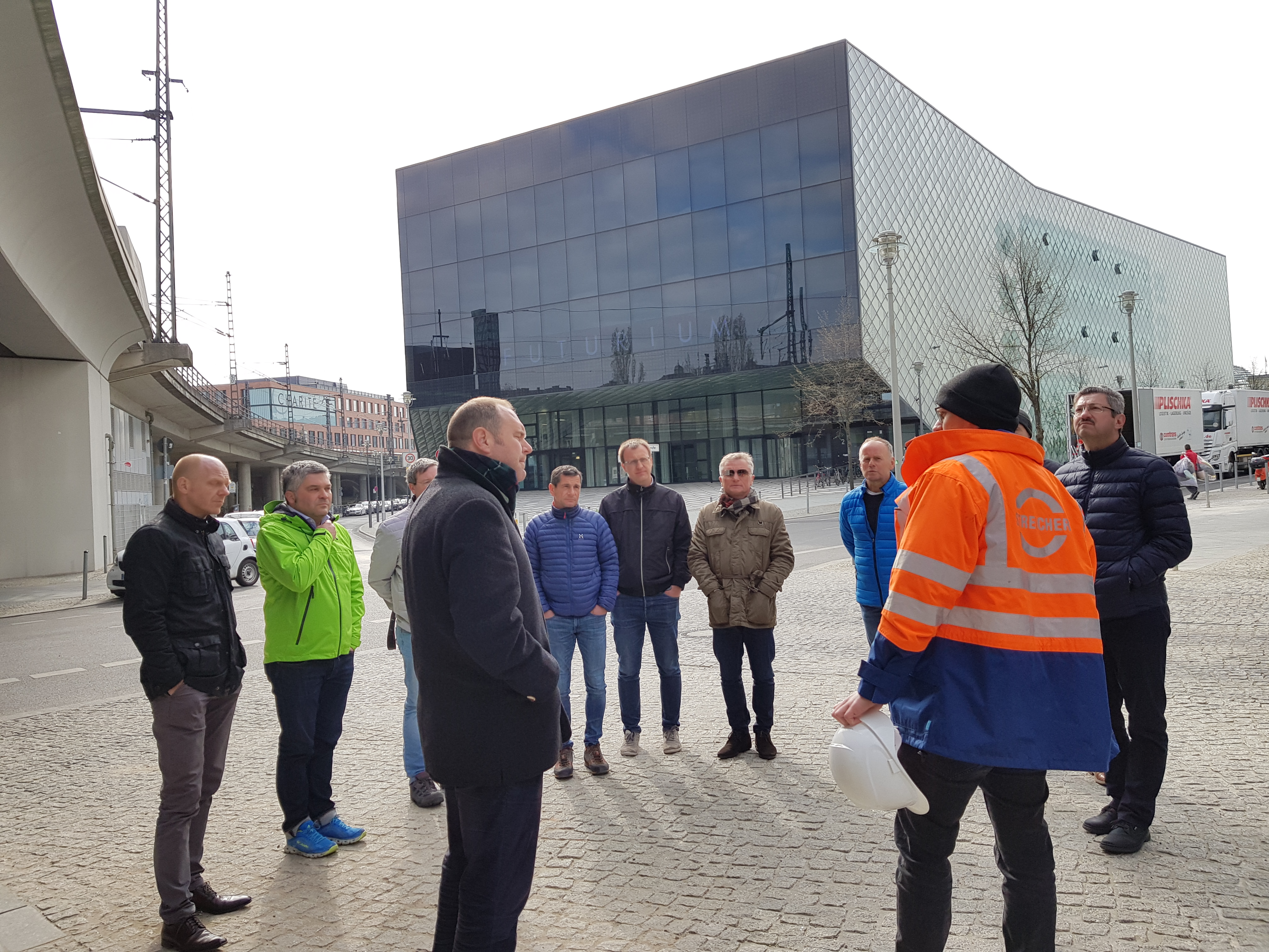 Das Landkreis-Team konnte beim Auswärtsspiel insgesamt auf 16 Unternehmer, Politiker und Leute aus der Verwaltung zurückgreifen. Abgerundet wurde der Trip nach Berlin mit einer Besichtigung der „Alten Försterei“ (der Spielstätte von Union Berlin) und einer Führung durch den Reichstag. Dort konnte das Team bei der Fragestunde an die Kanzlerin teilnehmen und tolle Eindrücke gewinnen. Zudem stand die Besichtigung einer Baustelle im Zentrum von Berlin auf dem Programm: die Firma STREICHER saniert direkt gegenüber dem Reichstag das Ufer des Humboldt-Hafens. Eine Baustelle, die durch mehrere Faktoren beeinflusst wird: so laufen über dem Humboldt-Hafen beispielsweise die Gleise des Hauptbahnhofs, was die Arbeitshöhe und die Auswahl der Baumaschinen ziemlich einschränkt und für die Arbeiter eine echte Herausforderung darstellt.