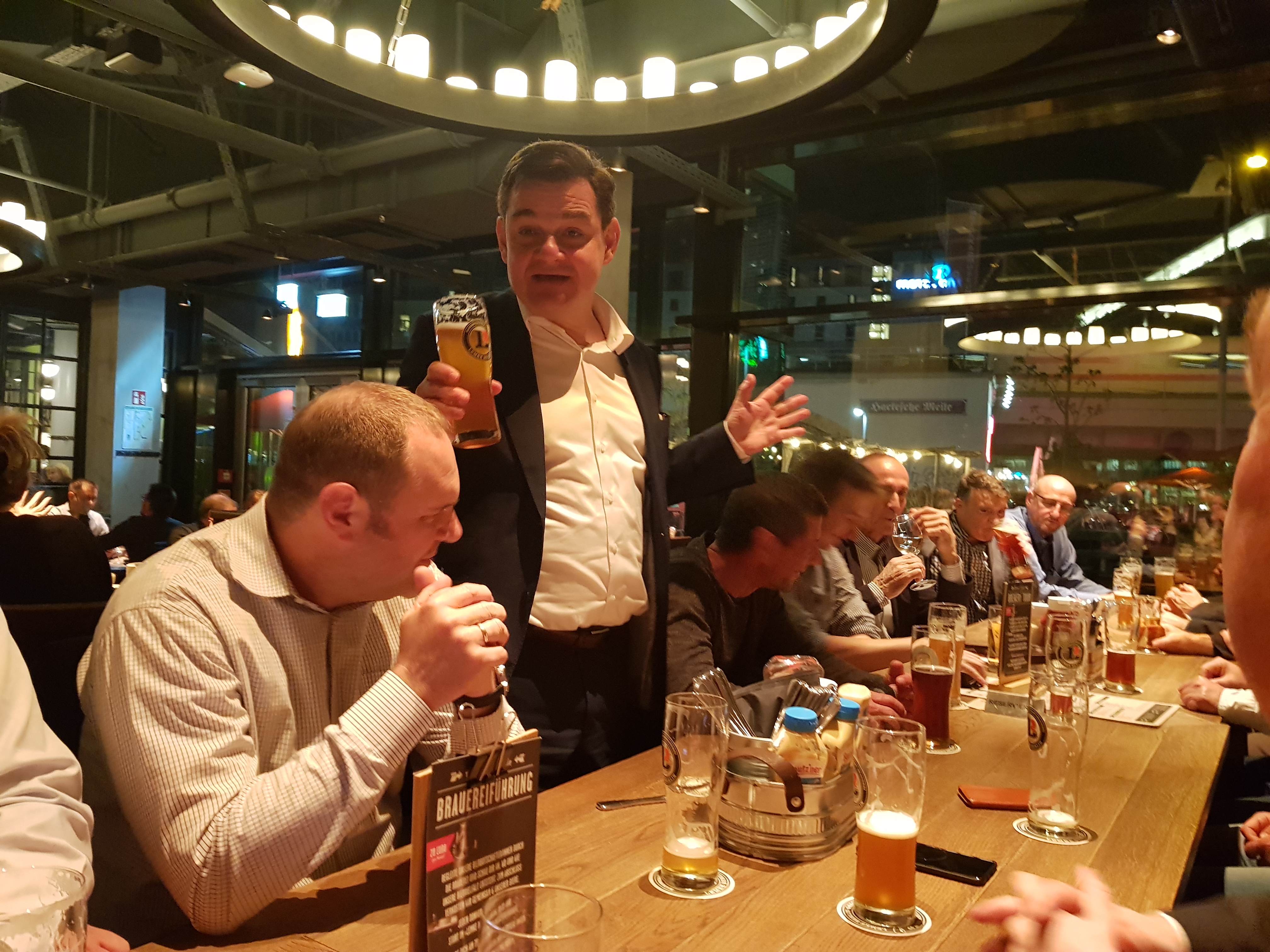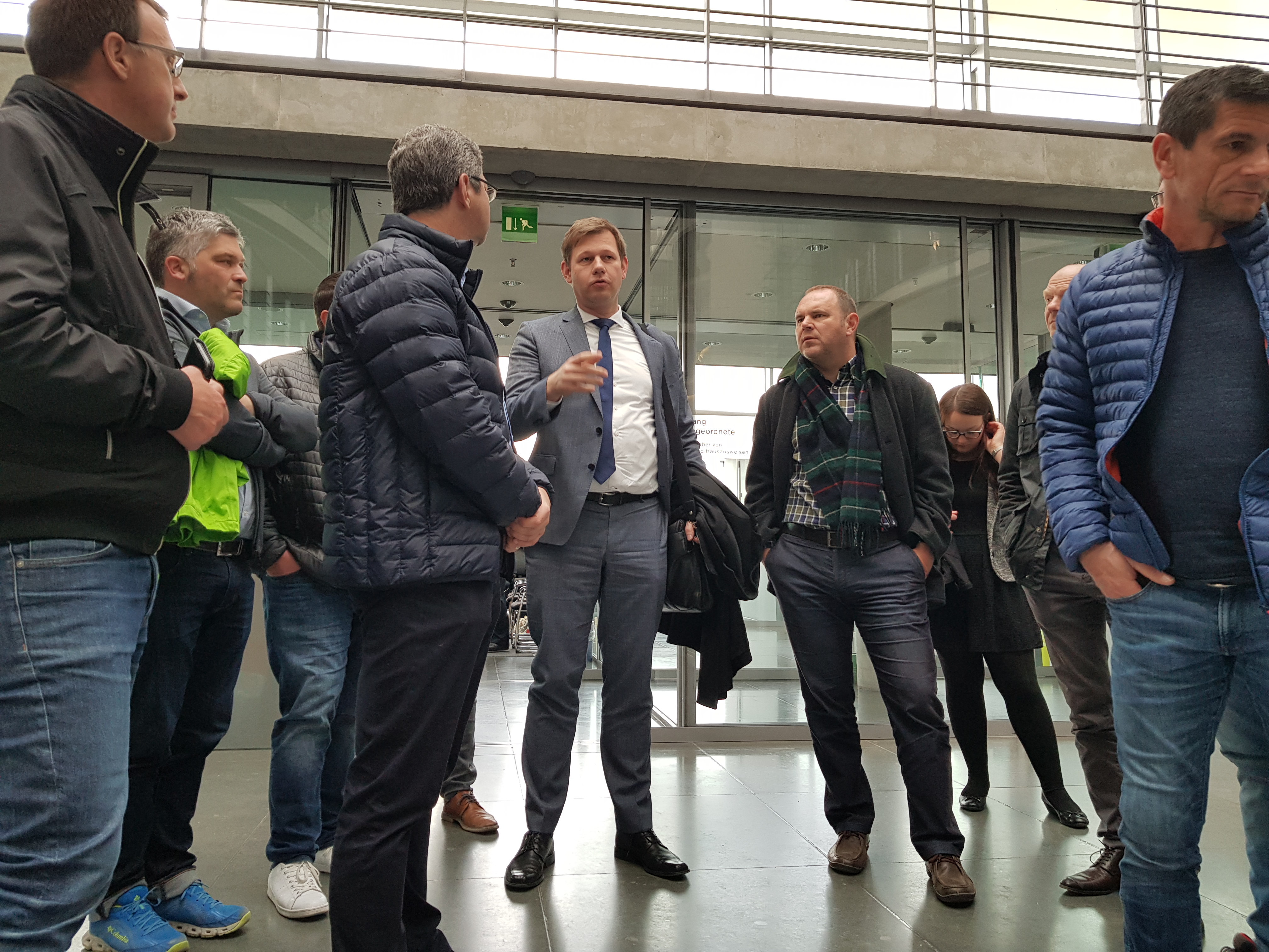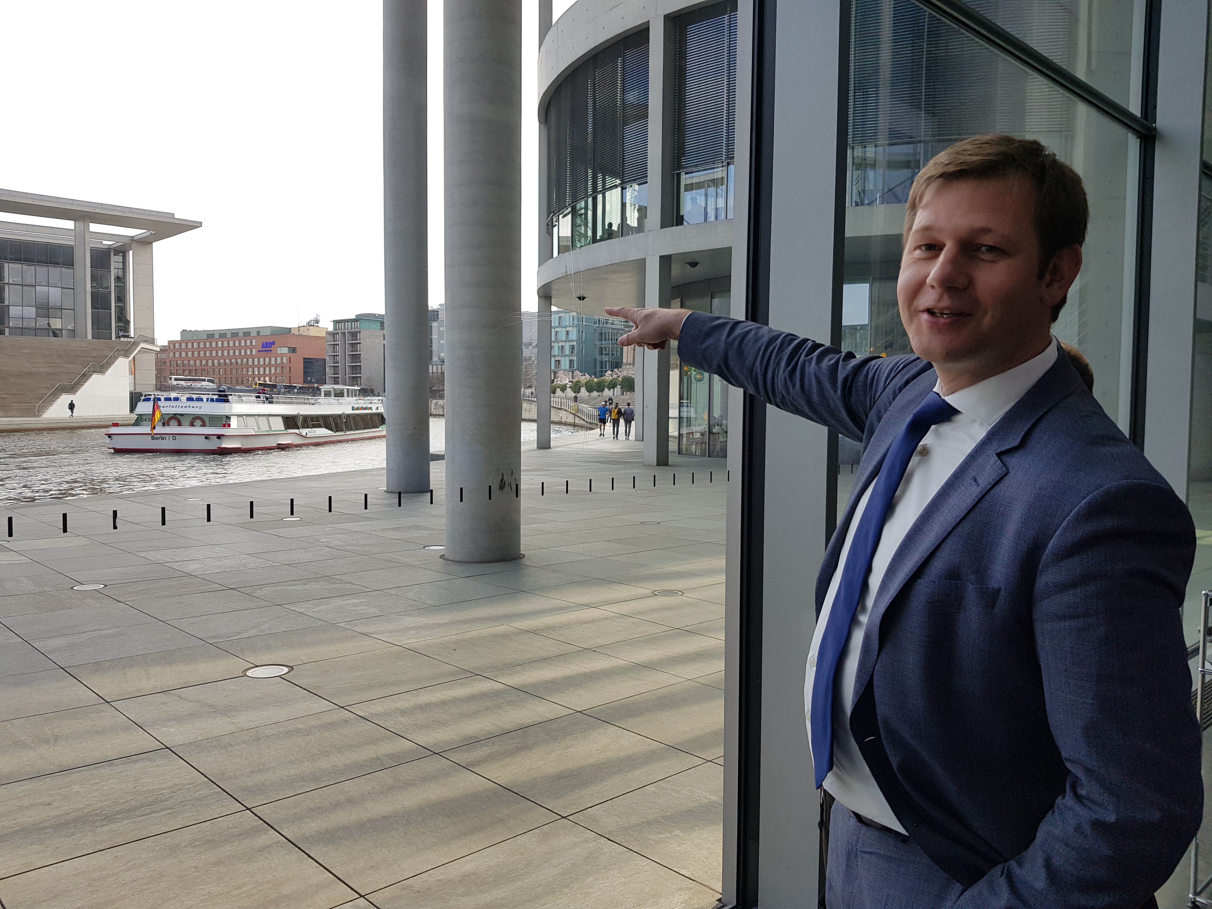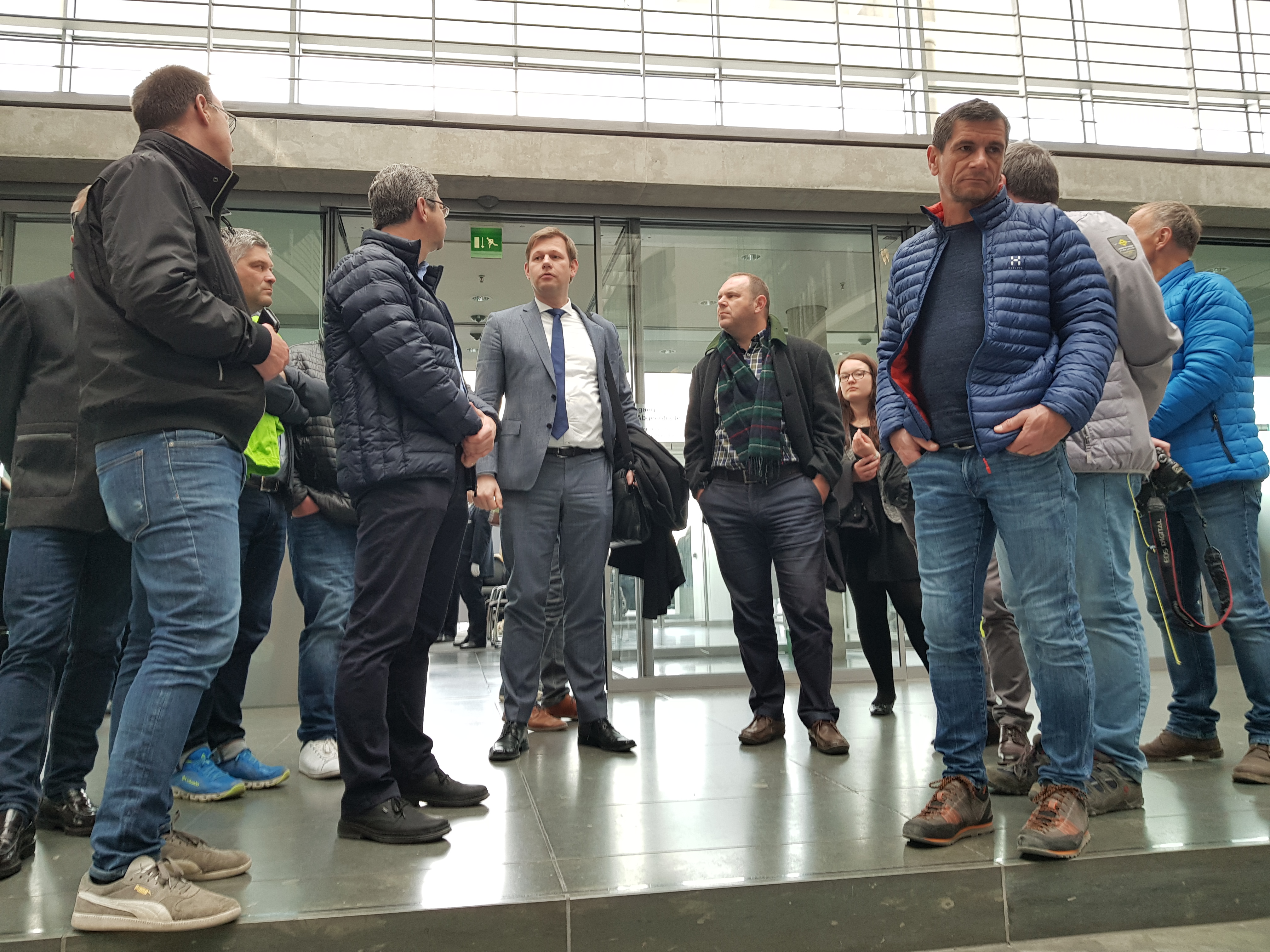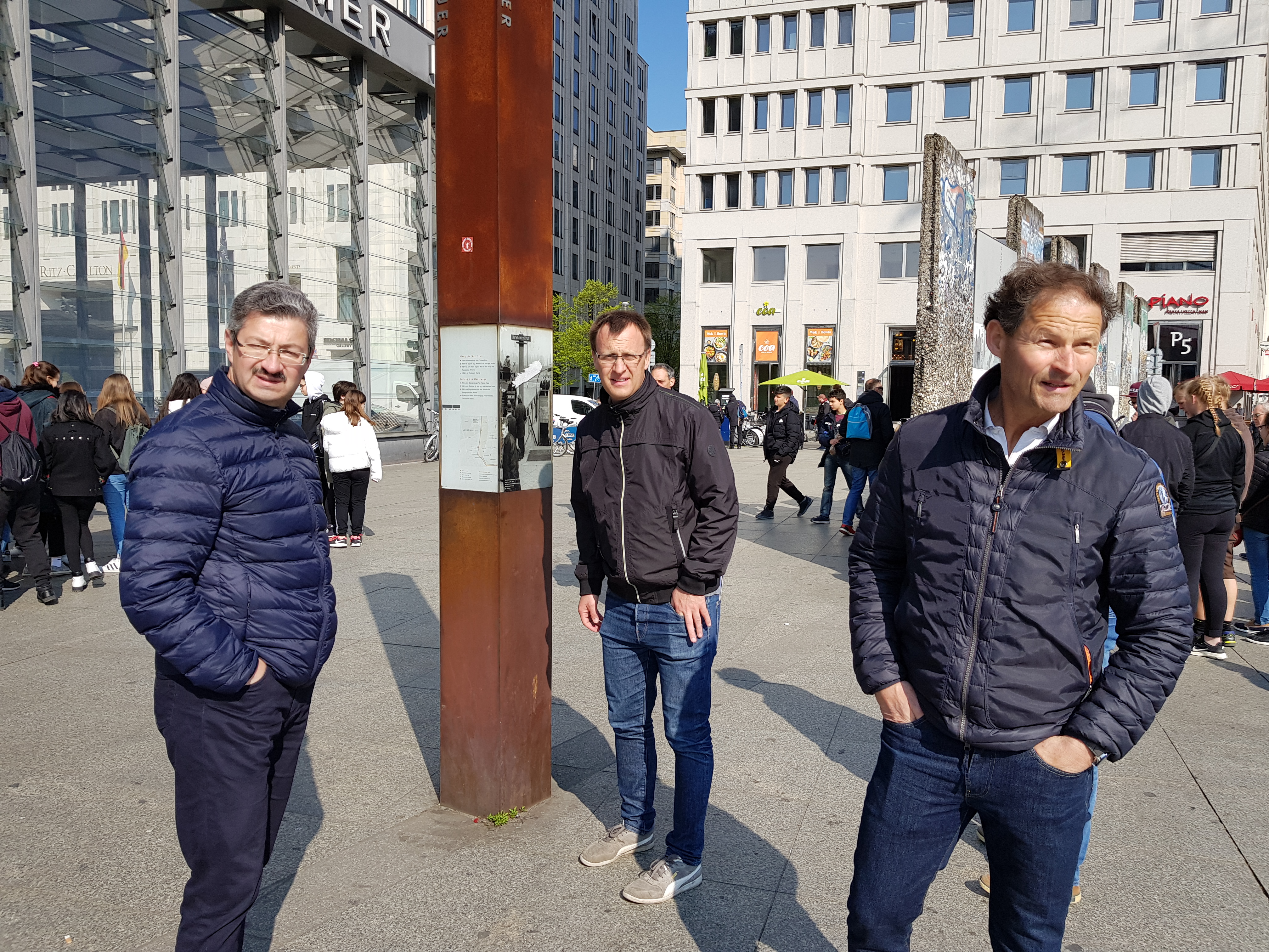 Das Landkreis-Team konnte beim Auswärtsspiel insgesamt auf 16 Unternehmer, Politiker und Leute aus der Verwaltung zurückgreifen. Abgerundet wurde der Trip nach Berlin mit einer Besichtigung der „Alten Försterei“ (der Spielstätte von Union Berlin) und einer Führung durch den Reichstag. Dort konnte das Team bei der Fragestunde an die Kanzlerin teilnehmen und tolle Eindrücke gewinnen. Zudem stand die Besichtigung einer Baustelle im Zentrum von Berlin auf dem Programm: die Firma STREICHER saniert direkt gegenüber dem Reichstag das Ufer des Humboldt-Hafens. Eine Baustelle, die durch mehrere Faktoren beeinflusst wird: so laufen über dem Humboldt-Hafen beispielsweise die Gleise des Hauptbahnhofs, was die Arbeitshöhe und die Auswahl der Baumaschinen ziemlich einschränkt und für die Arbeiter eine echte Herausforderung darstellt.