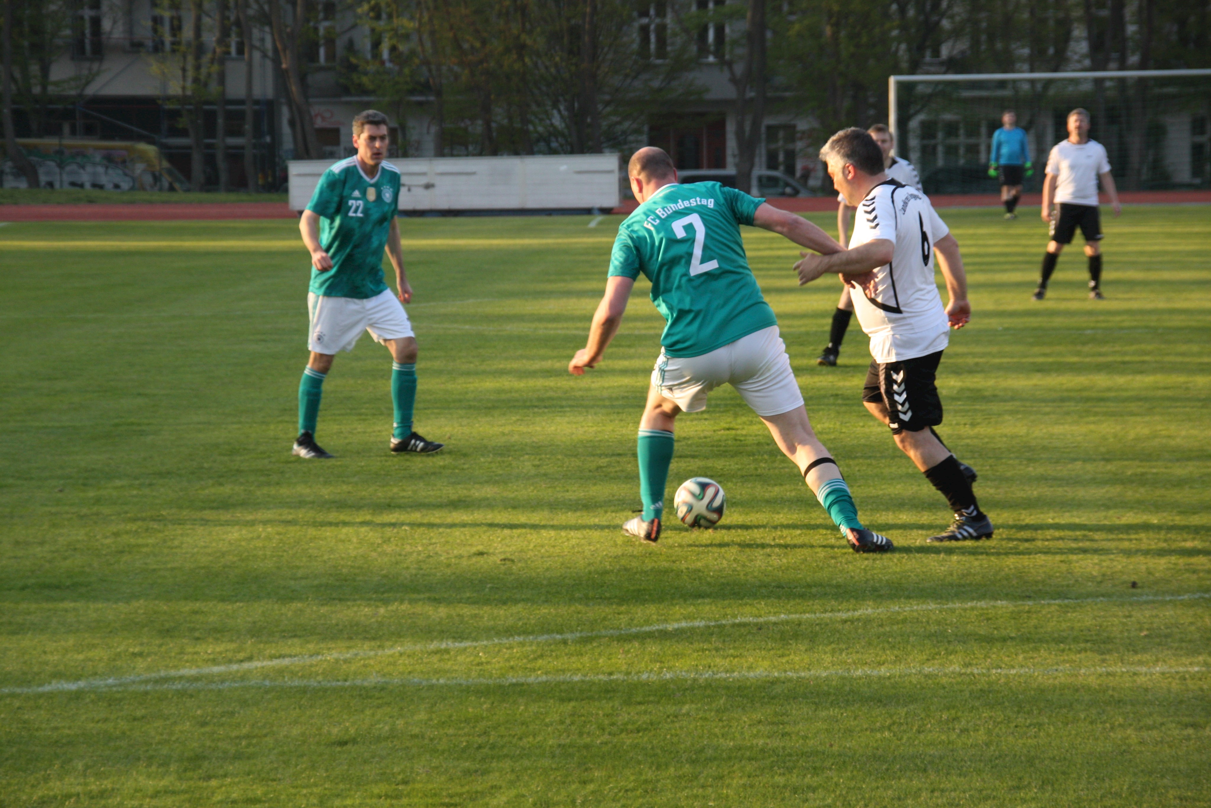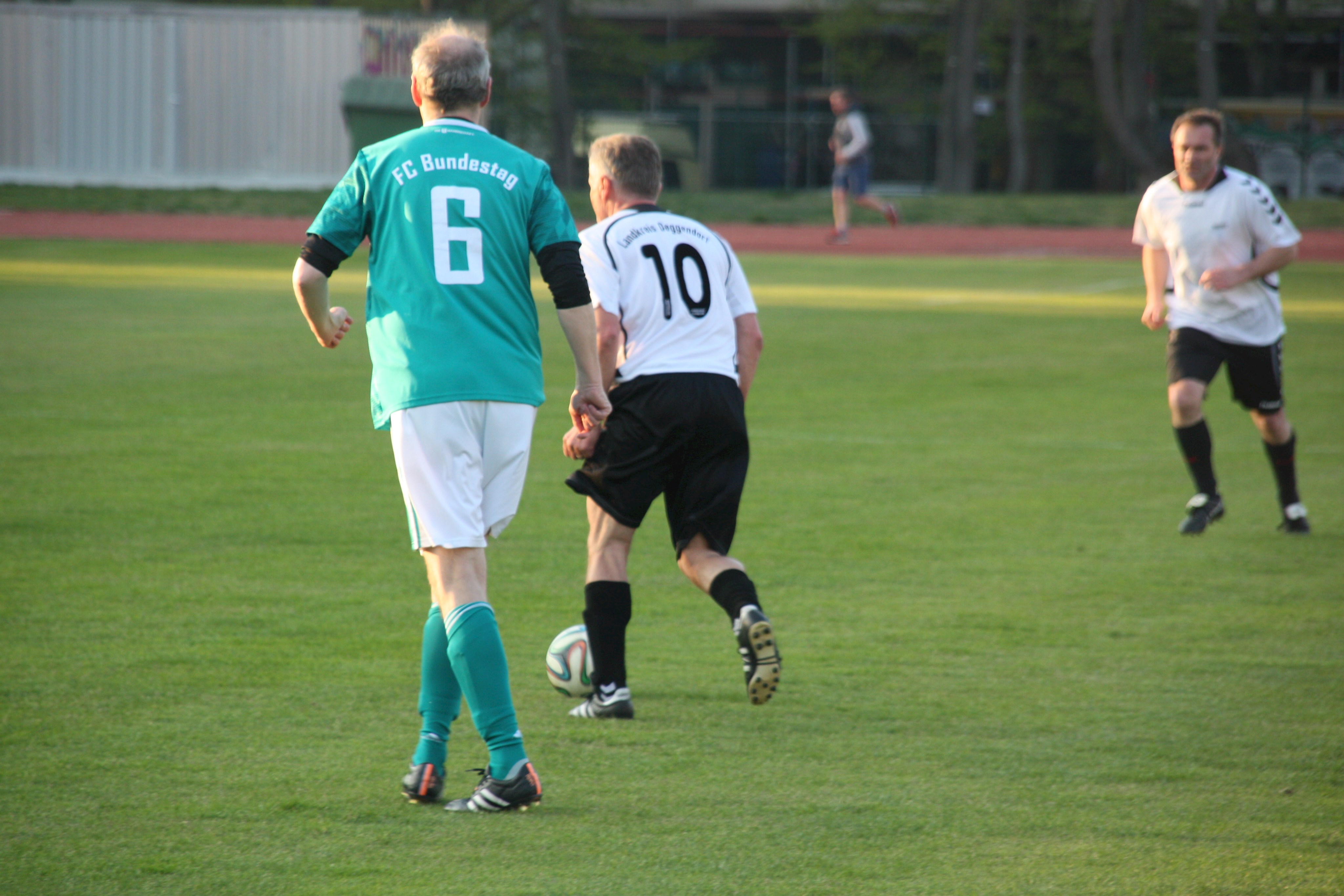 Ein ganz besonderer Höhepunkt stand nun auf dem Programm: auf Vermittlung durch MdB Thomas Erndl bot sich für die Landkreis-Auswahl die Chance in Berlin gegen den FC Bundestag anzutreten. Der FC Bundestag setzt sich aus den verschiedensten Abgeordneten des Bundestages zusammen und spielt hauptsächlich für soziale Zwecke. Das Spiel fand in einem Stadion am Friedrich-Ludwig-Jahn Sportpark, dem Stadion des BFC Dynamo Berlin statt. Nach der Begrüßung durch den Kapitän des FC Bundestages Marcus Weinberg und Stv. Landrat Josef Färber führte Kapitän Thomas Erndl die Mannschaft auf den Platz. Erndl ließ es sich nicht nehmen und stellte sich bei den Deggendorfern zu Beginn des Spiels ins Tor. Nach einer langen Führung der Deggendorfer stand am Schluss ein leistungsgerechtes Unentschieden zu Buche, das bei einem gemeinsamen Abendessen beider Mannschaften noch ausführlich diskutiert wurde.