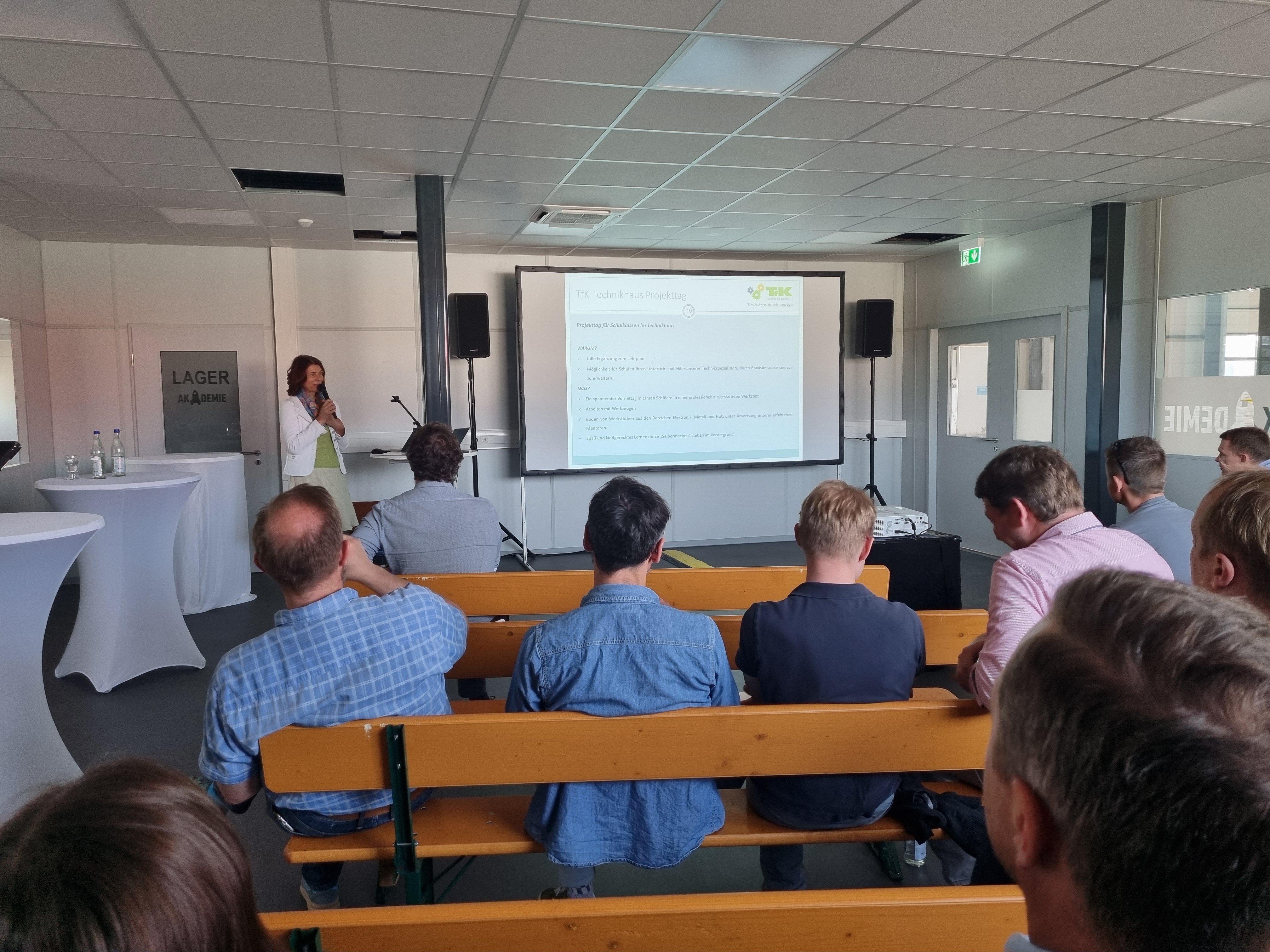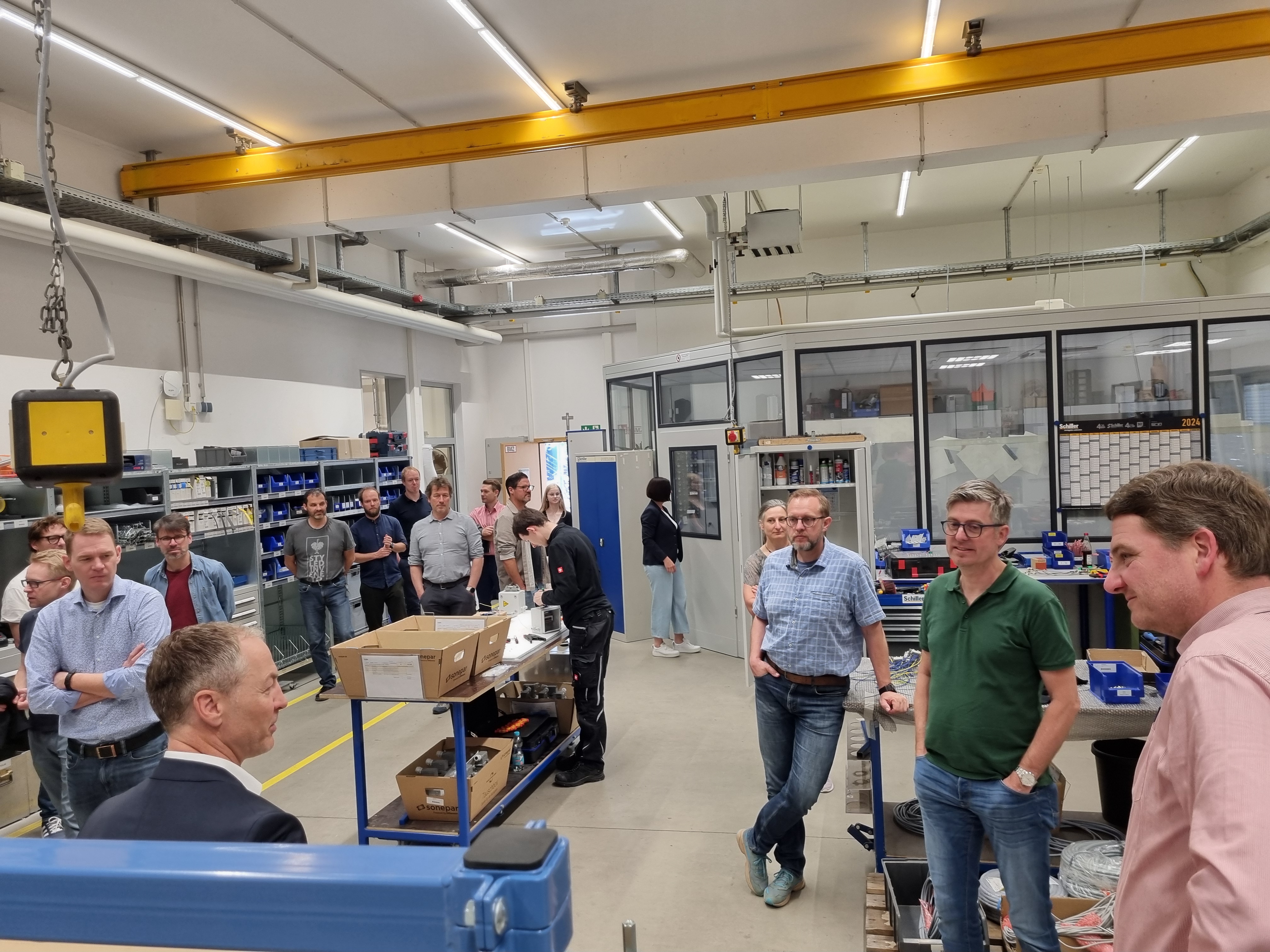 Bevor es zum nächsten Betrieb ging, stellte Susanne Freudenstein die Projekte des Vereins TfK-Technik für Kinder vor. Dieser wird seit vielen Jahren von der Schiller-Gruppe unterstützt. Lehrer Dominik Schwarz berichtete dabei über die Aktionen von TfK an der Realschule in Osterhofen. Dort werden viele Maßnahmen in Kooperation mit Schiller durchgeführt.