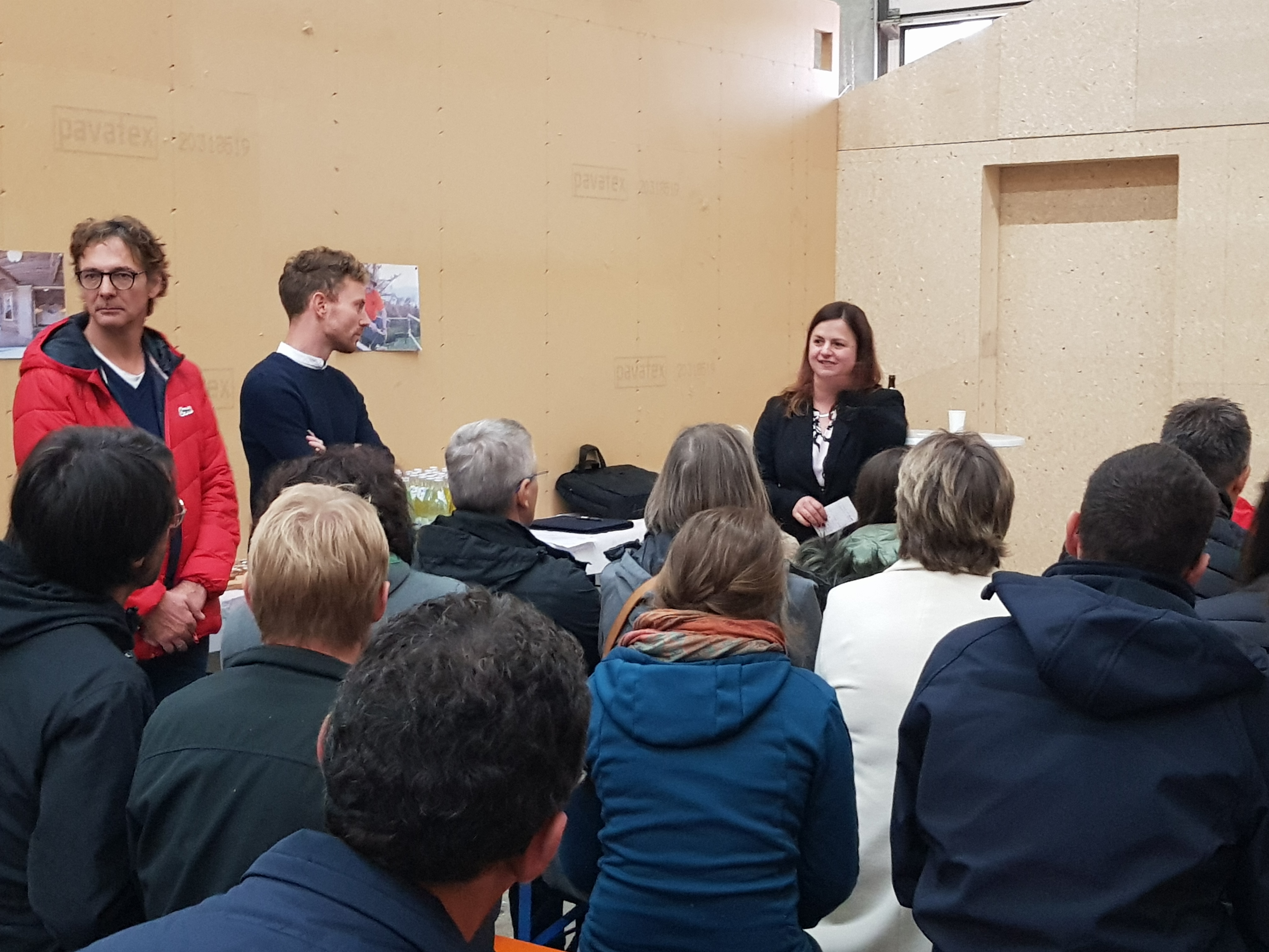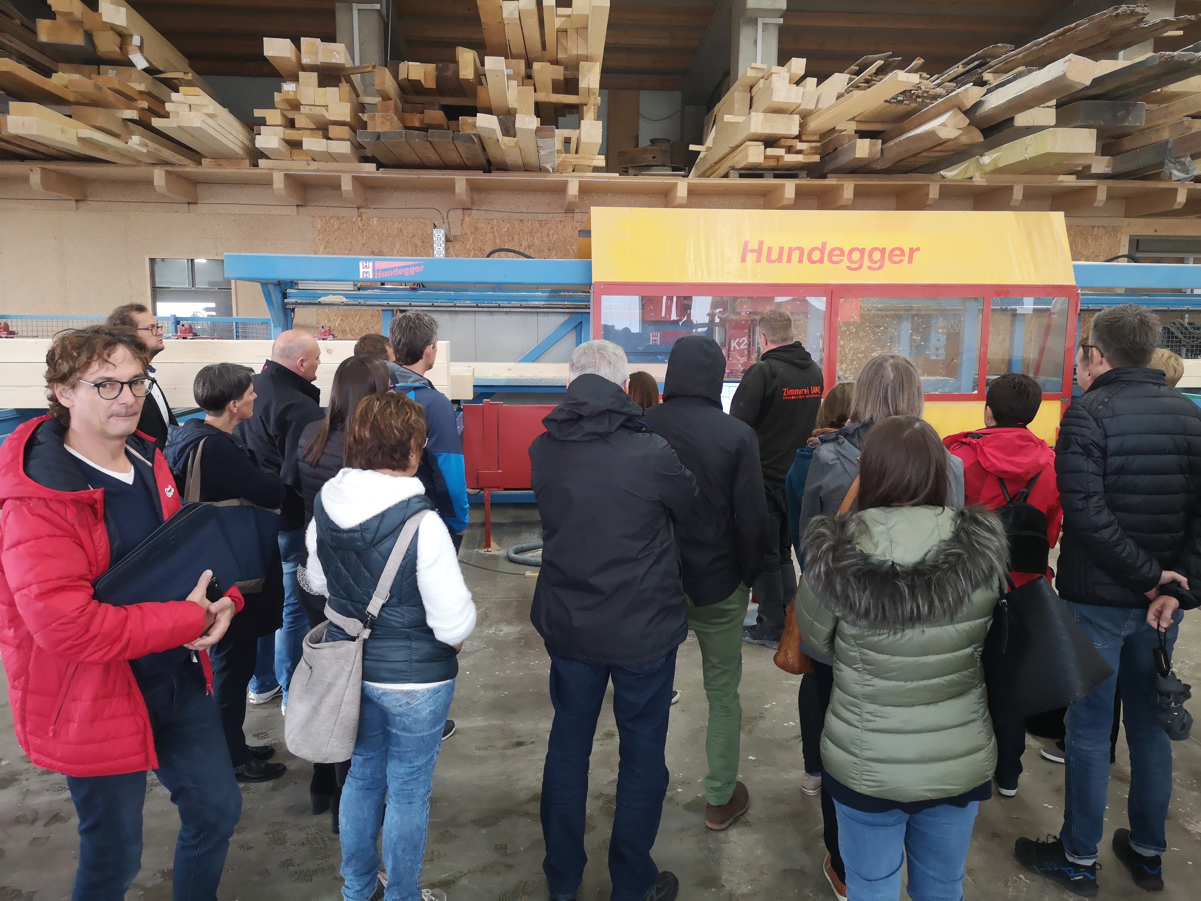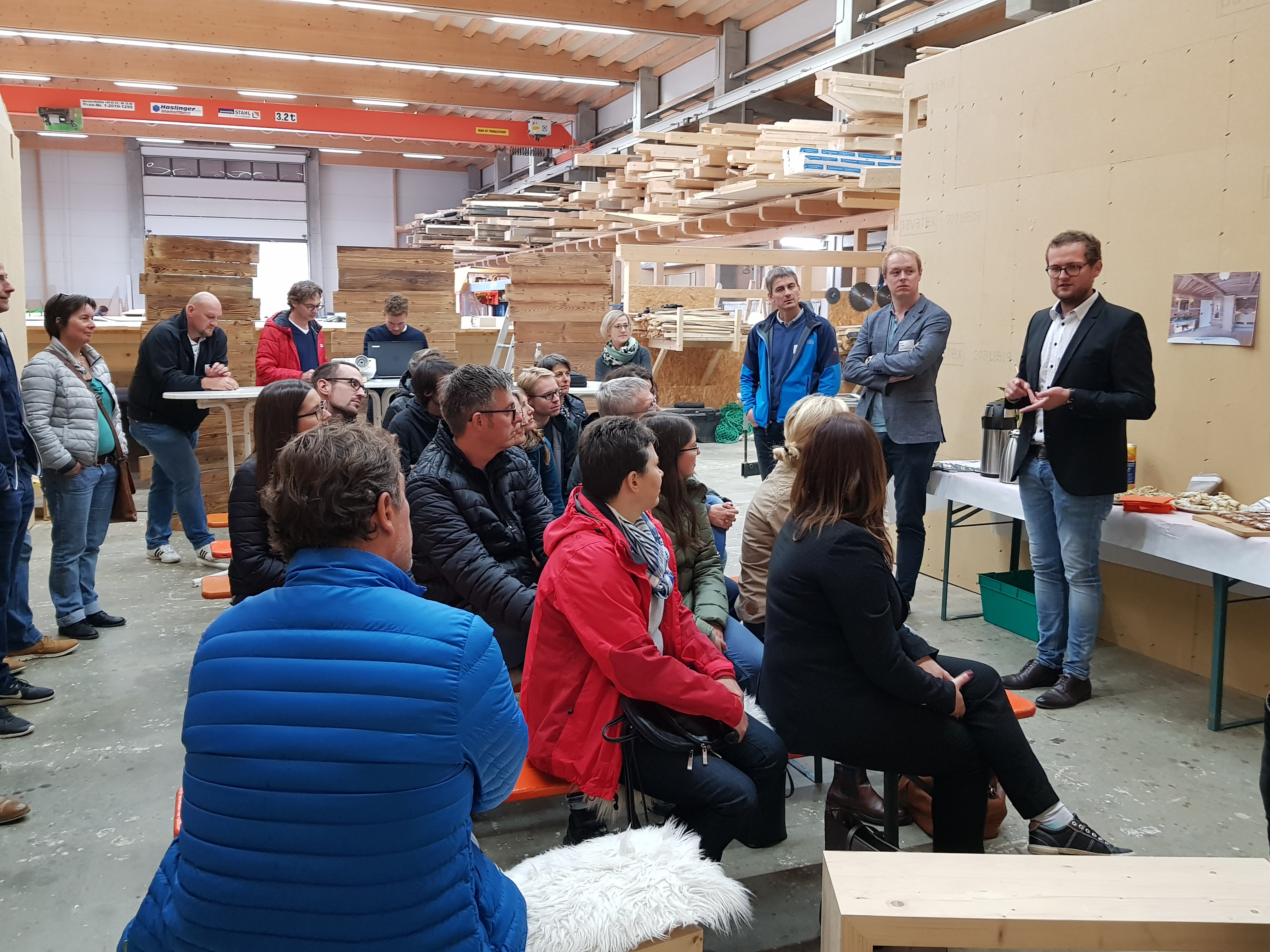 Bei den Ausführungen von Georg Wenzl und der anschließenden Diskussion wurden viele Aspekte der Ausbildung, des Studiums und vor allem den persönlichen Voraussetzungen der Jugendlichen für die Baubranche besprochen. Georg Wenzl zeigte Entwicklungen in der Baubranche auf und stellte fest: „Die Baubranche hat sich in den letzten Jahrzehnten grundlegend geändert. Ein Großteil der Arbeiten geschieht im Trockenen- sei es die Planung am Computer oder auch die Fertigung. Unsere Teams bereiten alles soweit vor, dass ein Haus in 2 Tagen steht.“ So entwickelte sich ein sehr informativer und ehrlicher Austausch, der bei der anschließenden Betriebsführung praktisch veranschaulicht wurde.