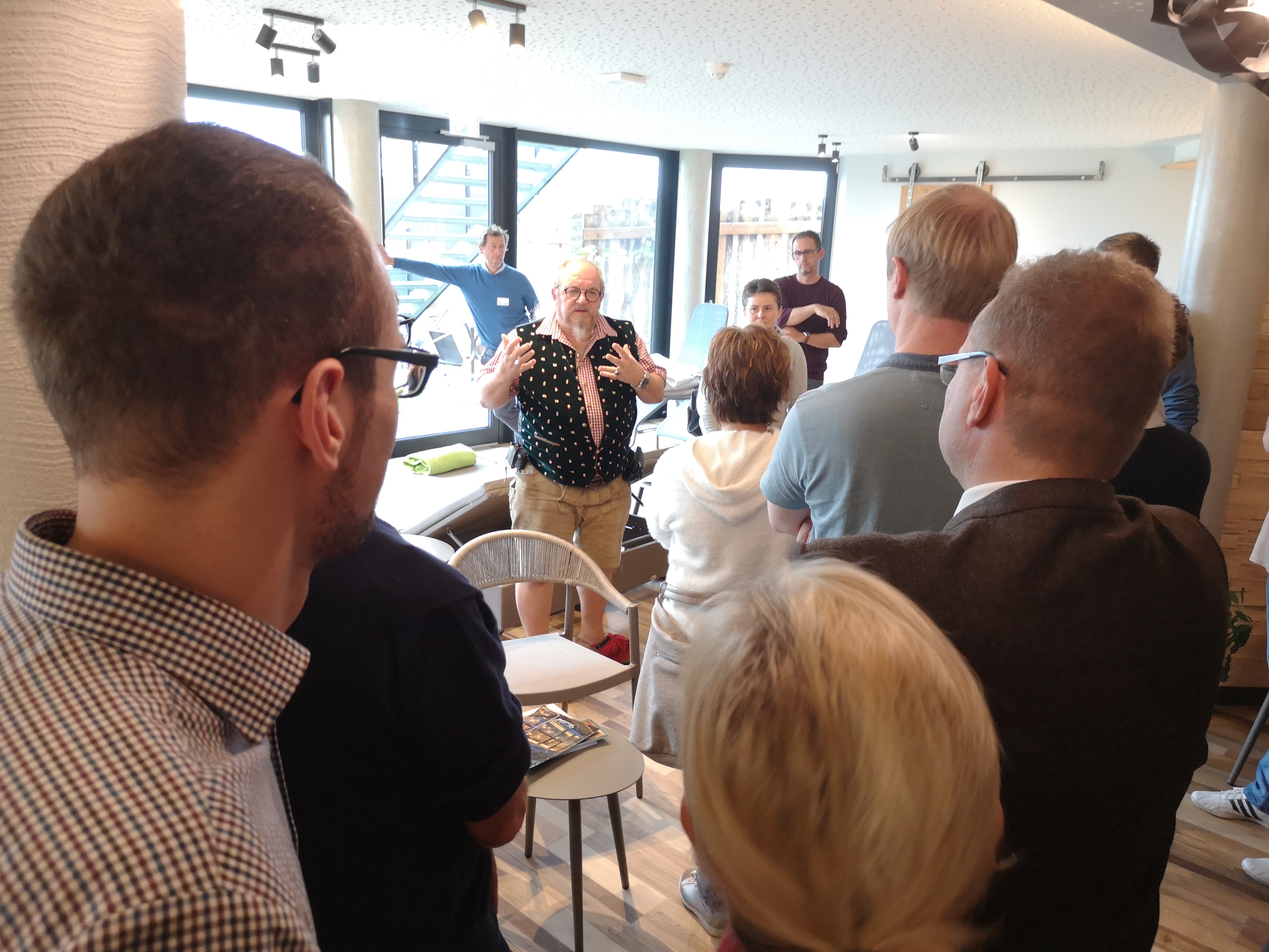 Bei einer Rundtour ging es für mehr als 40 Teilnehmer an 2 Tagen zu 4 Betrieben aus ganz unterschiedlichen Branchen in den Landkreisen Deggendorf und Freyung-Grafenau. Der Start erfolgte bei der Firma T.CON in Plattling. Zur Einstimmung auf die Lehrer-Fortbildung zeigte Dr. Markus Reimer bei seinem Impulsvortrag, in welchen Zeiten wir uns bewegen, welchen Herausforderungen wir uns stellen müssen und welche Anforderungen diese Entwicklungen für die Menschen bedeuten. Schlagwörter wie Verantwortung, Kommunikation, Mut und Respekt zogen sich nicht nur durch das kurzweilige Impulsreferat, sondern fanden sich anschließend in nahezu allen Betriebsbesuchen wieder. Auch T.CON als Dienstleister im IT-Bereich setzt neben dem fachlichen Know-How sehr stark auf Teamwork, auf ein gutes Betriebsklima und Offenheit. Dies verdeutlichte Sabine Schulze, bei T.CON zuständig für Personal, bei ihrem Vortrag sehr anschaulich. Beim Rundgang zeigten sich die geforderten Attribute auch baulich: offene Büros und Austauschmöglichkeiten wechseln sich mit Rückzugszonen ab.