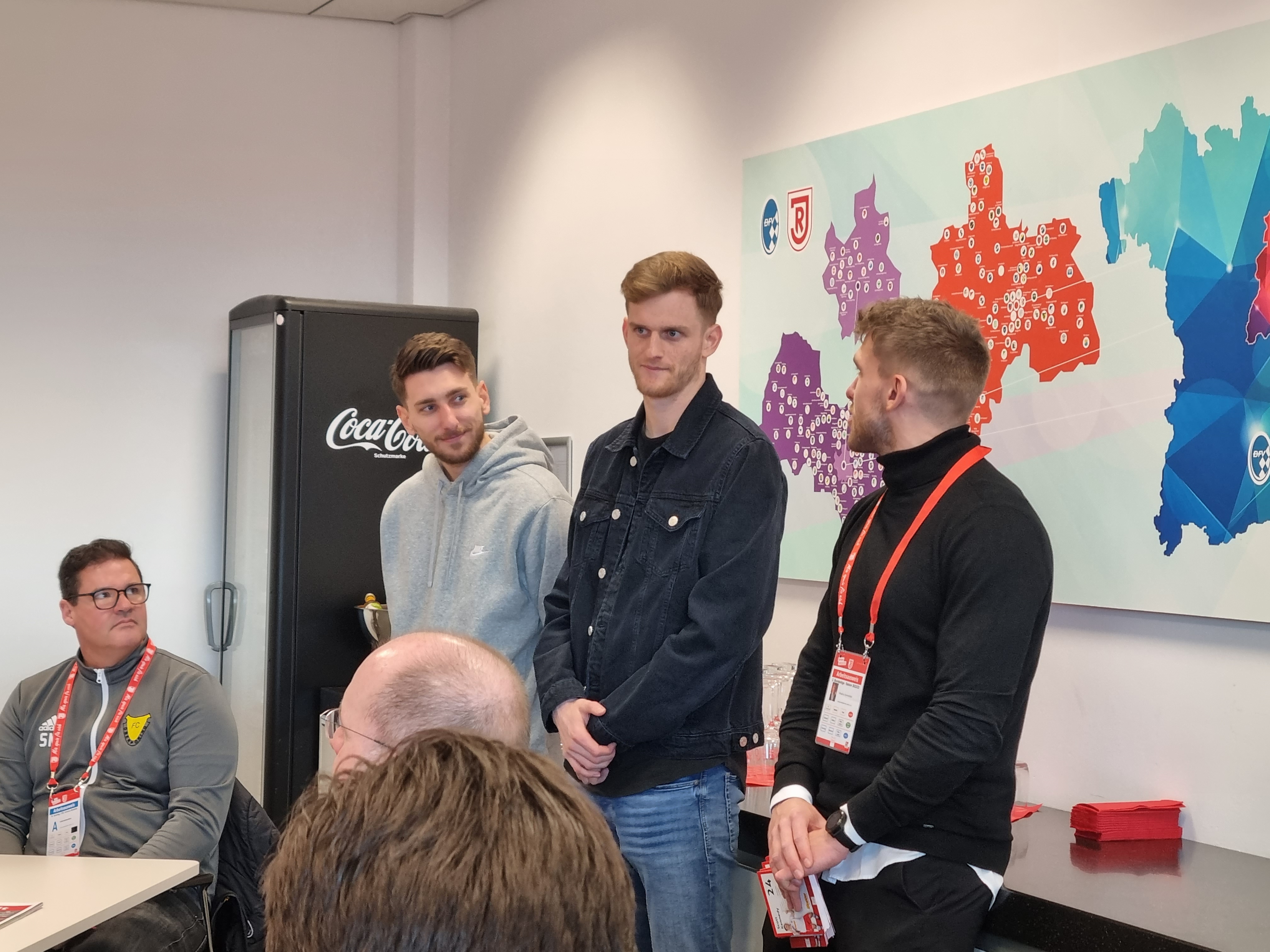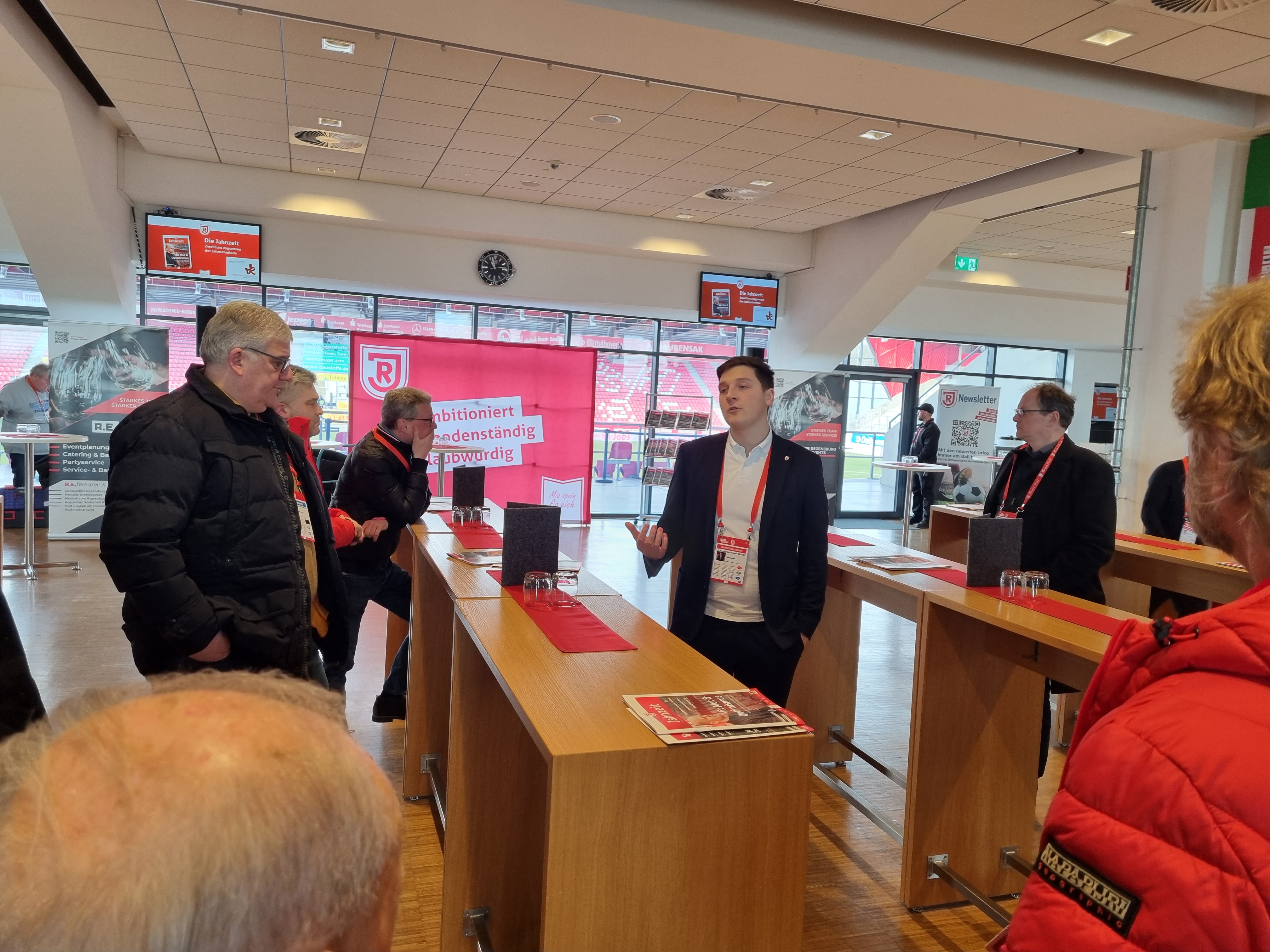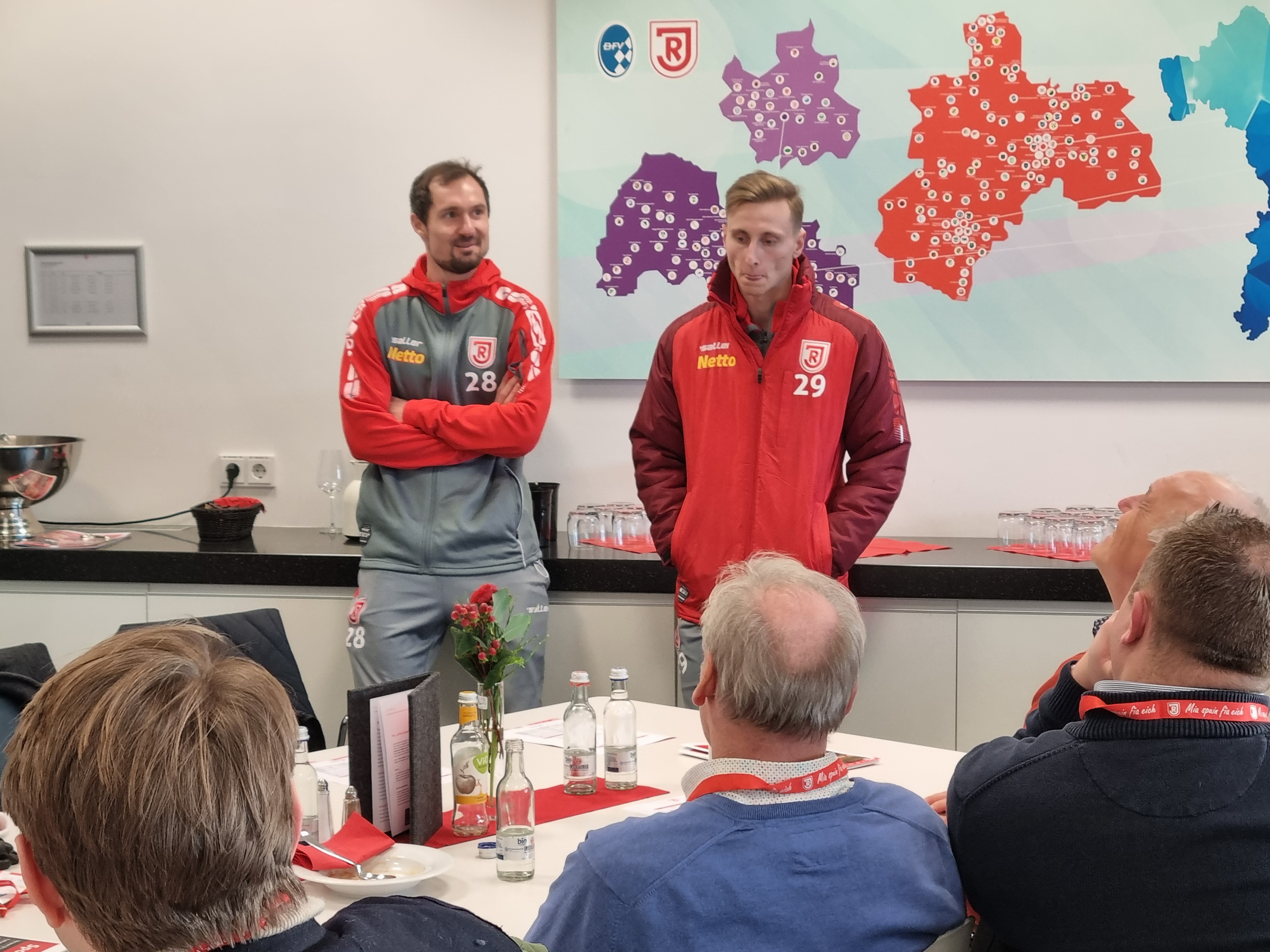 Bereits vor dem Spiel standen den Unternehmern mit Scott Kennedy und Charalambos Makridis zwei Spieler aus dem Profikader Rede und Antwort. Nach dem Spiel besuchten ebenfalls zwei Spieler die Gäste aus Niederbayern: der neue Rekordspieler des SSV Jahn Regensburg und Niederbayer Sebastian Nachreiner und Stürmer Joshua Mees versuchten für die 1-3-Niederlage eine Erklärung zu finden. Beide versprechen, alles dafür zu tun, um den Klassenerhalt zu schaffen. Die Unternehmer hatten dazu den ein und anderen Tipp.