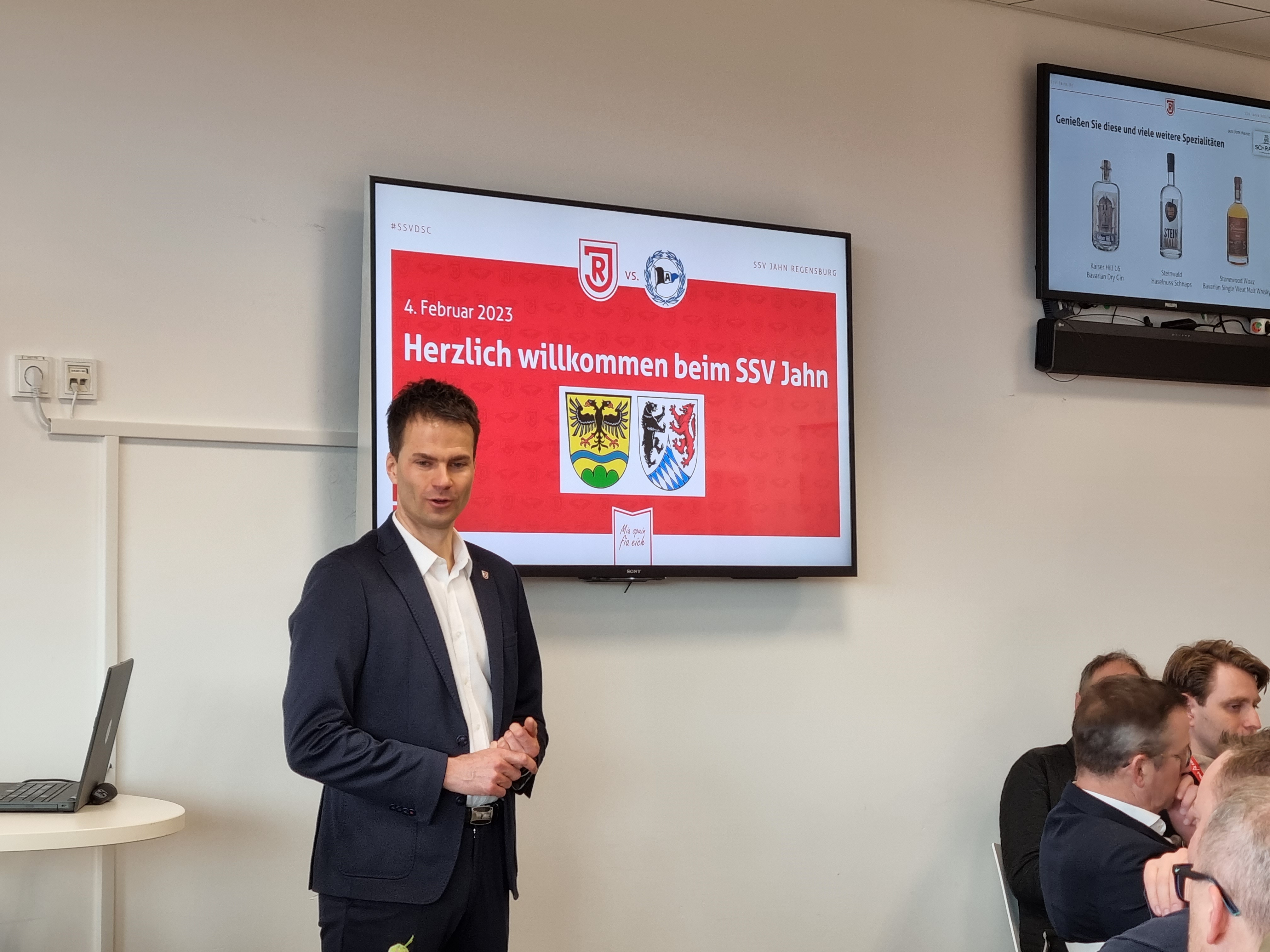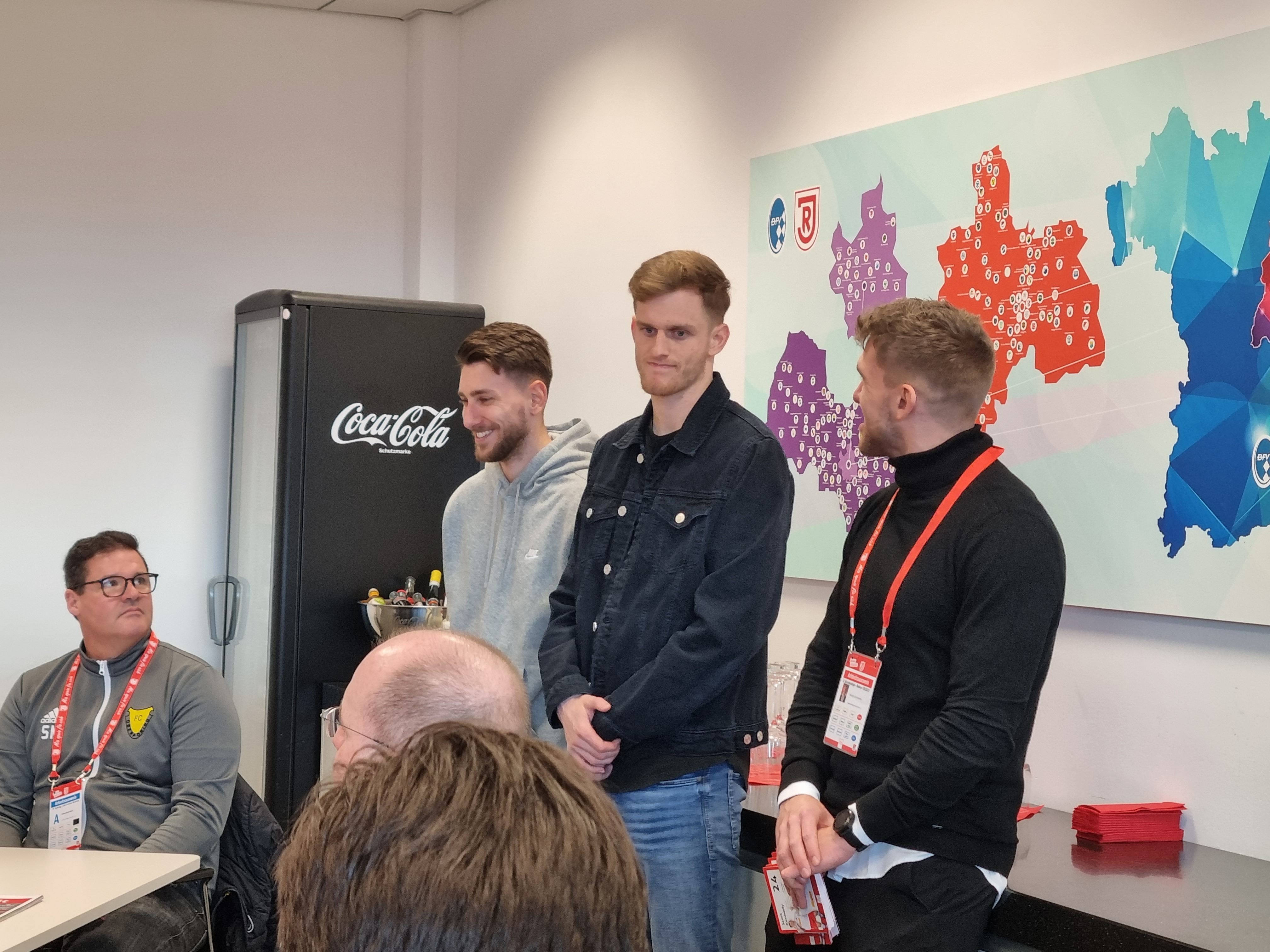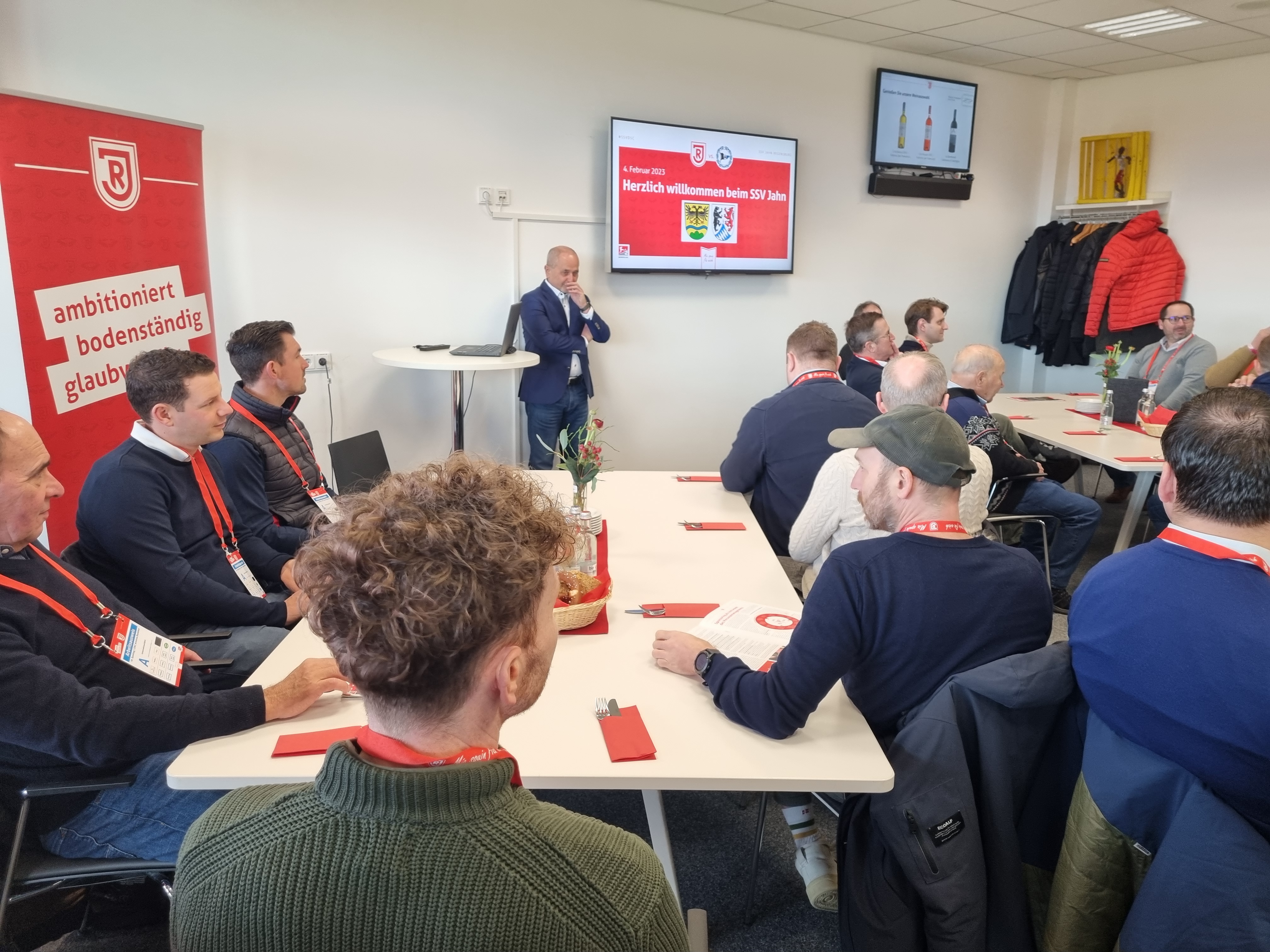 Bereits vor dem Spiel standen den Unternehmern mit Scott Kennedy und Charalambos Makridis zwei Spieler aus dem Profikader Rede und Antwort. Nach dem Spiel besuchten ebenfalls zwei Spieler die Gäste aus Niederbayern: der neue Rekordspieler des SSV Jahn Regensburg und Niederbayer Sebastian Nachreiner und Stürmer Joshua Mees versuchten für die 1-3-Niederlage eine Erklärung zu finden. Beide versprechen, alles dafür zu tun, um den Klassenerhalt zu schaffen. Die Unternehmer hatten dazu den ein und anderen Tipp.