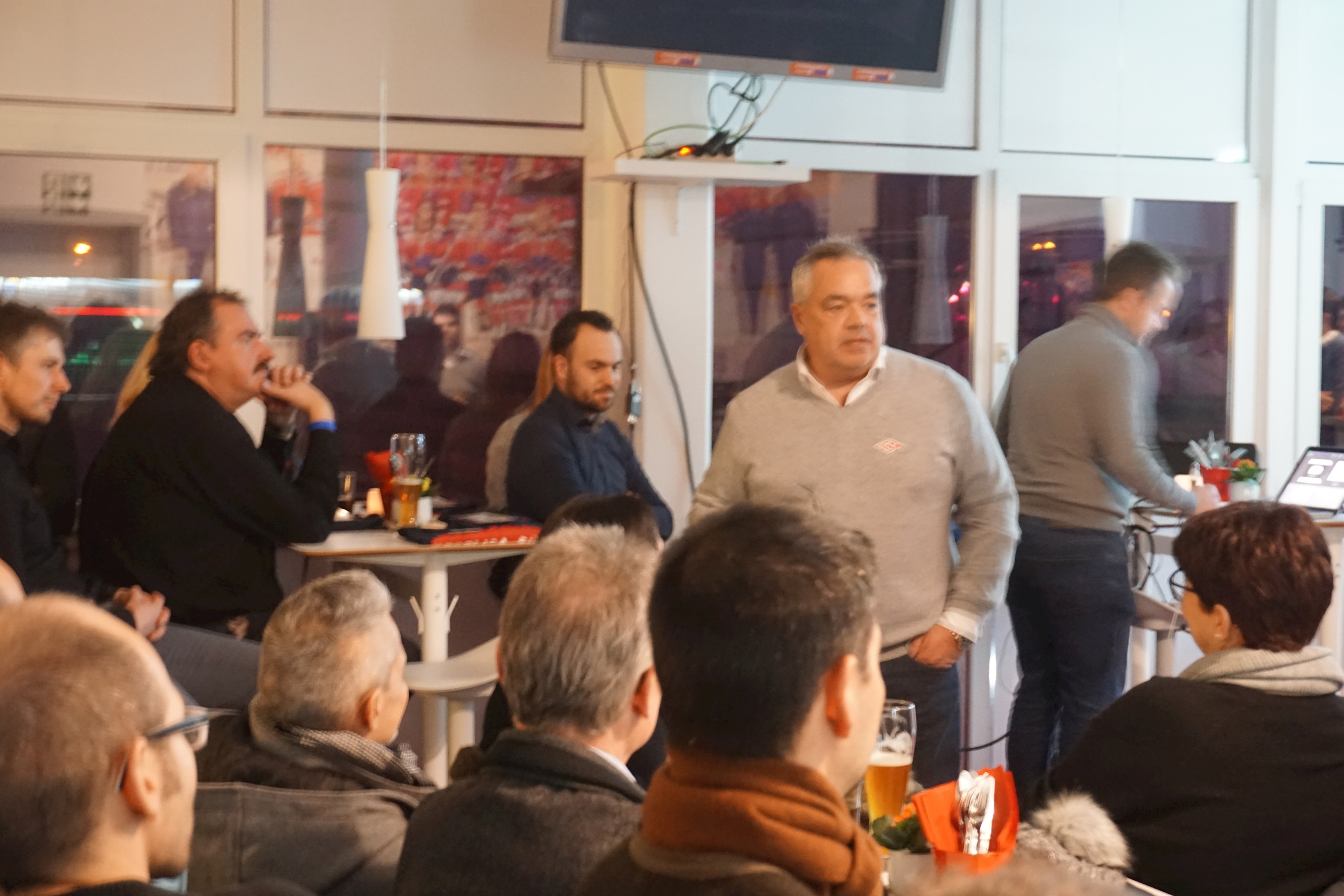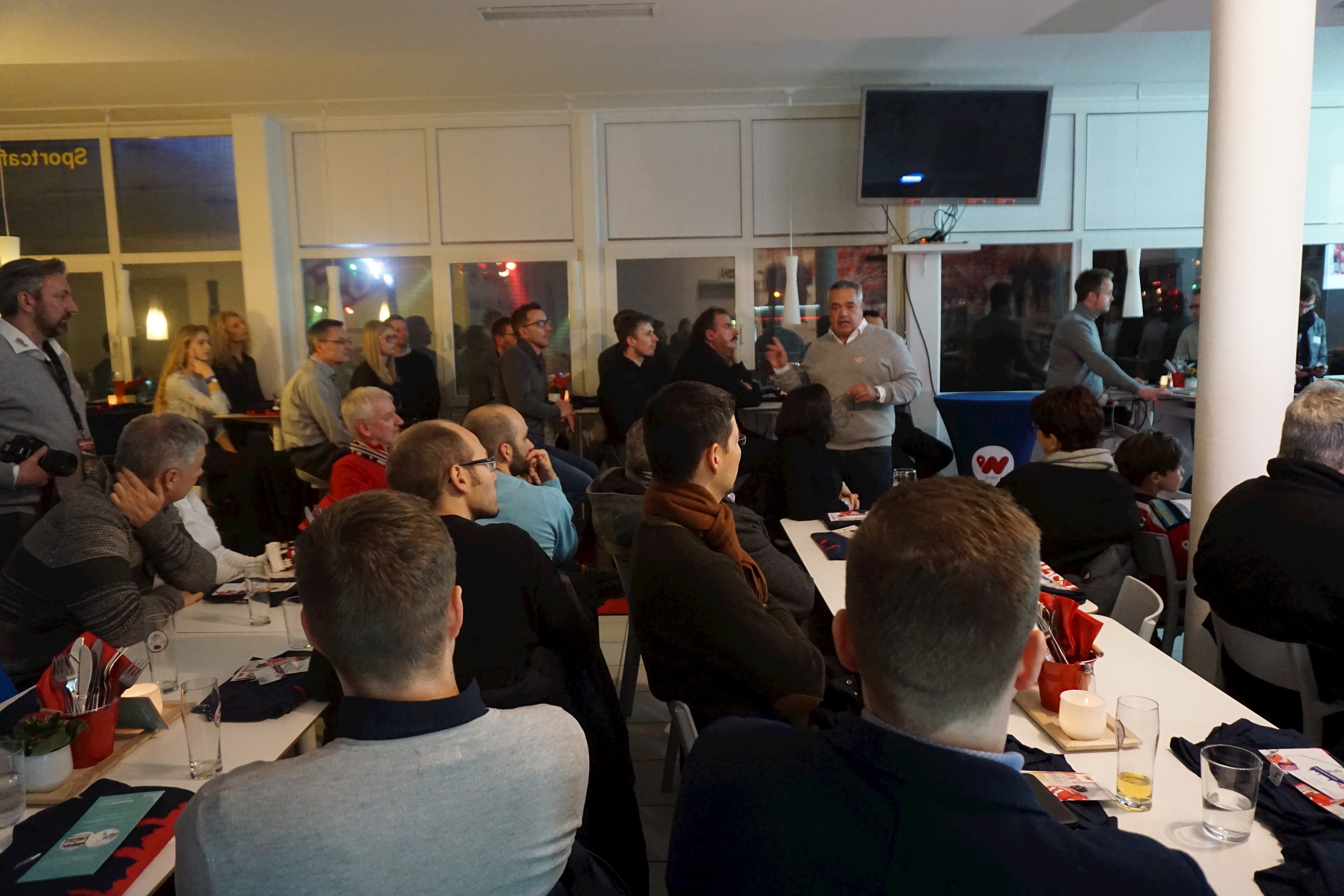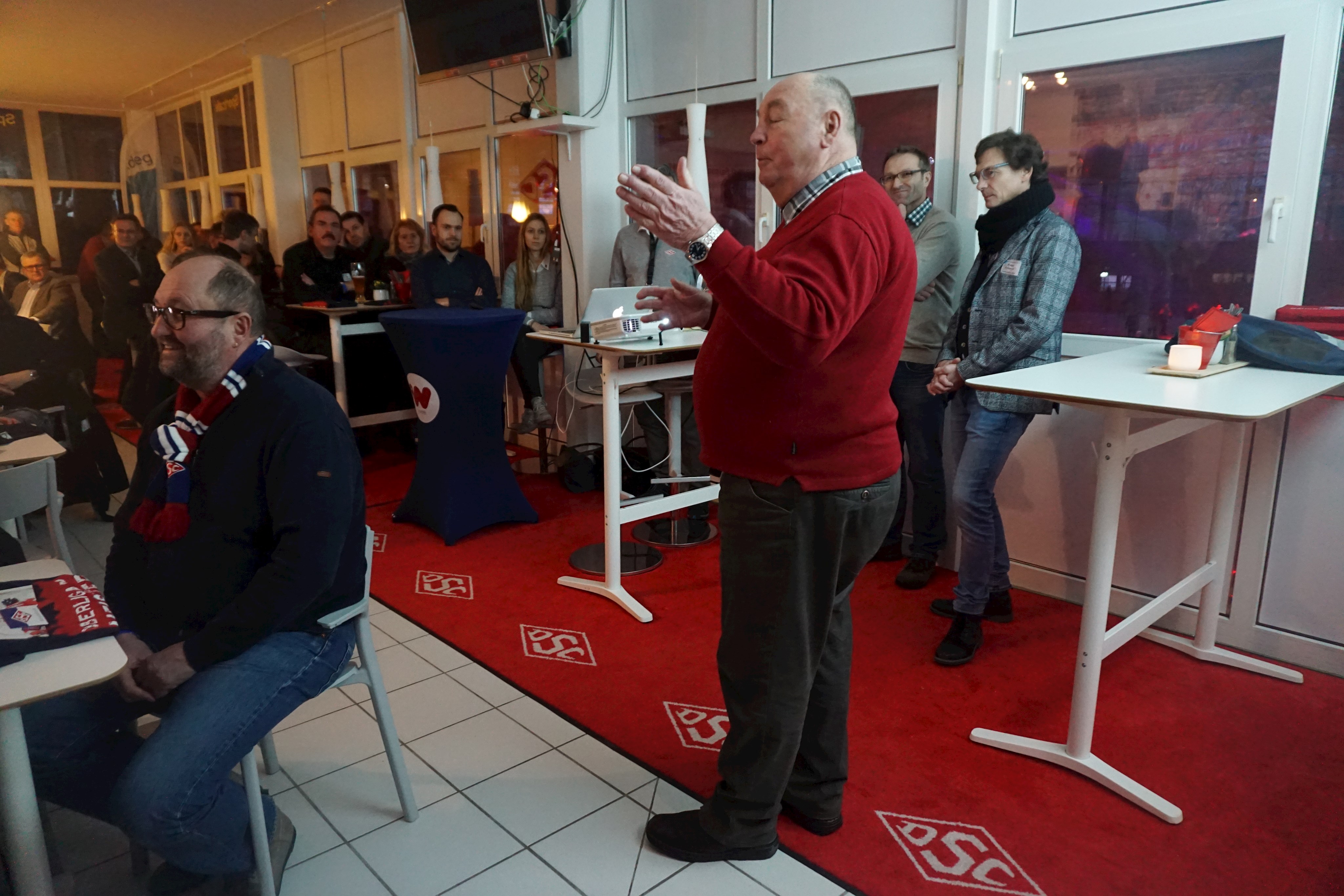 Nach den Vorträgen wurde die Gruppe aufgeteilt. In kleineren Gruppen wurde das neu umgebaute Stadion besichtigt. Während des Spiels war eine Kabine mit Buffet und Getränken für die Unternehmer vorbereitet. Dort standen auch Ansprechpartner des Vereins zur Verfügung. So konnten Regelfragen beantwortet, der Spielverlauf diskutiert und auch konkrete Kooperationsmöglichkeiten abgeklärt werden. So war´s für alle Teilnehmer ein gelungener Abend- bis auf´s Spielergebnis. Da verlor der DSC leider knapp mit 2-3.