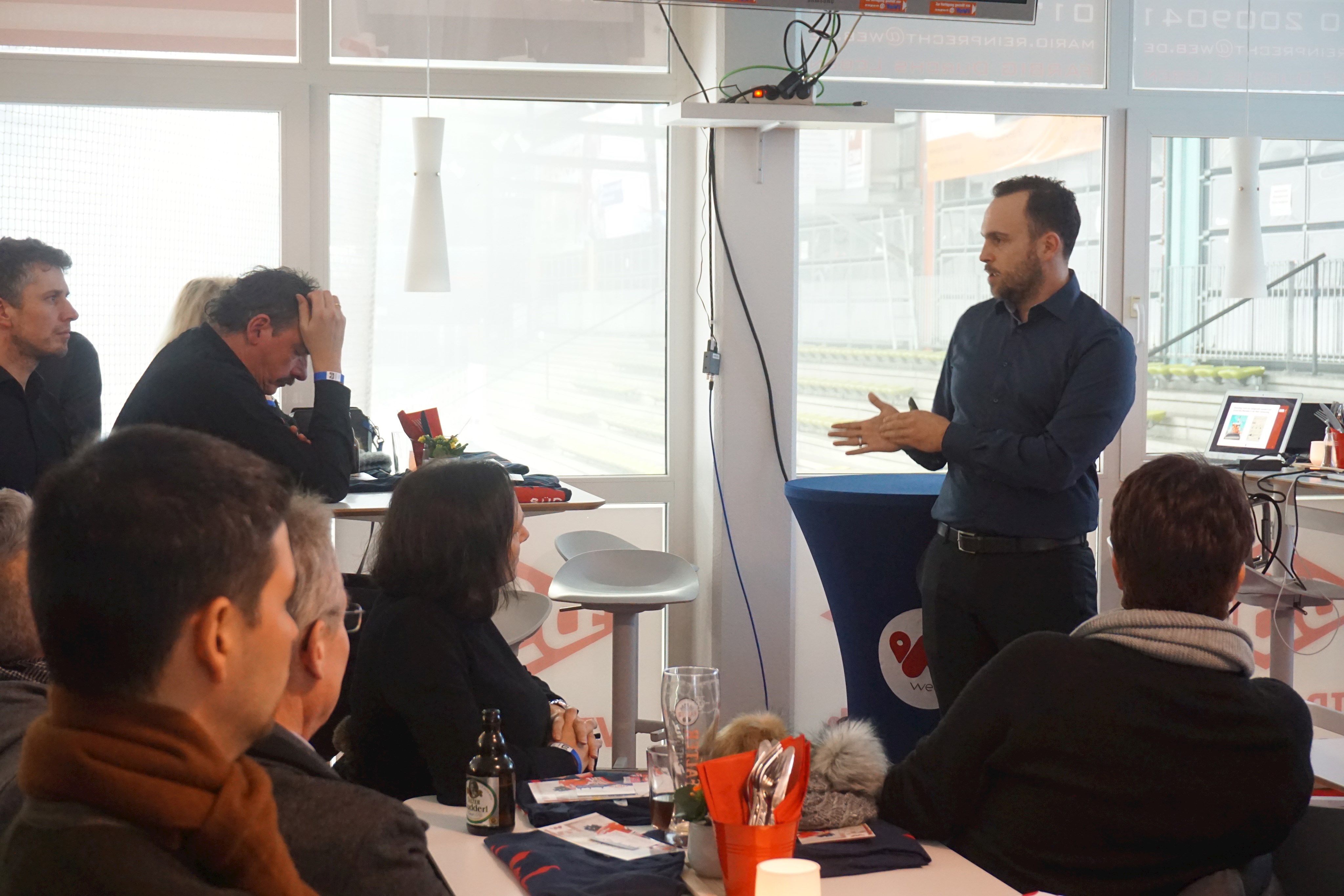 Zum Abschluss der Vorträge erläuterte Manuel Madunic von KIM SportsManagement aus München, die Wirkung und Möglichkeiten der Markenbildung durch ein Engagement bei Sportvereinen. Als Schlüssel, um die Zielgruppen zu erreichen, nannte er den Begriff „Emotionen“. Durch den richtigen Einsatz von Emotionen können sowohl Kunden als auch Fachkräfte gebunden und auf das Unternehmen aufmerksam gemacht werden. Dabei bieten Sportvereine und in diesem Fall vor allem der Deggendorfer SC eine Vielzahl von Möglichkeiten- die genutzt werden sollten.