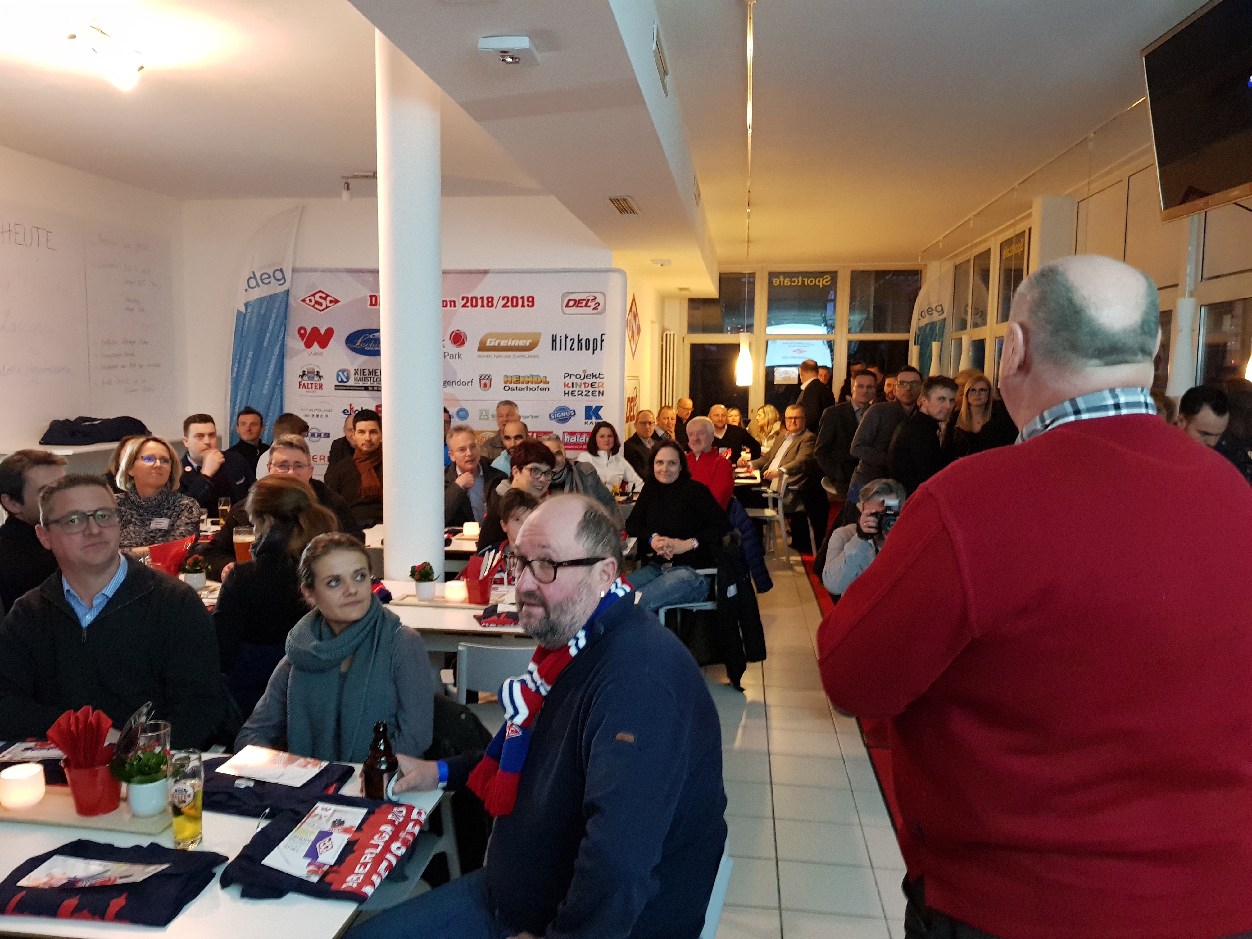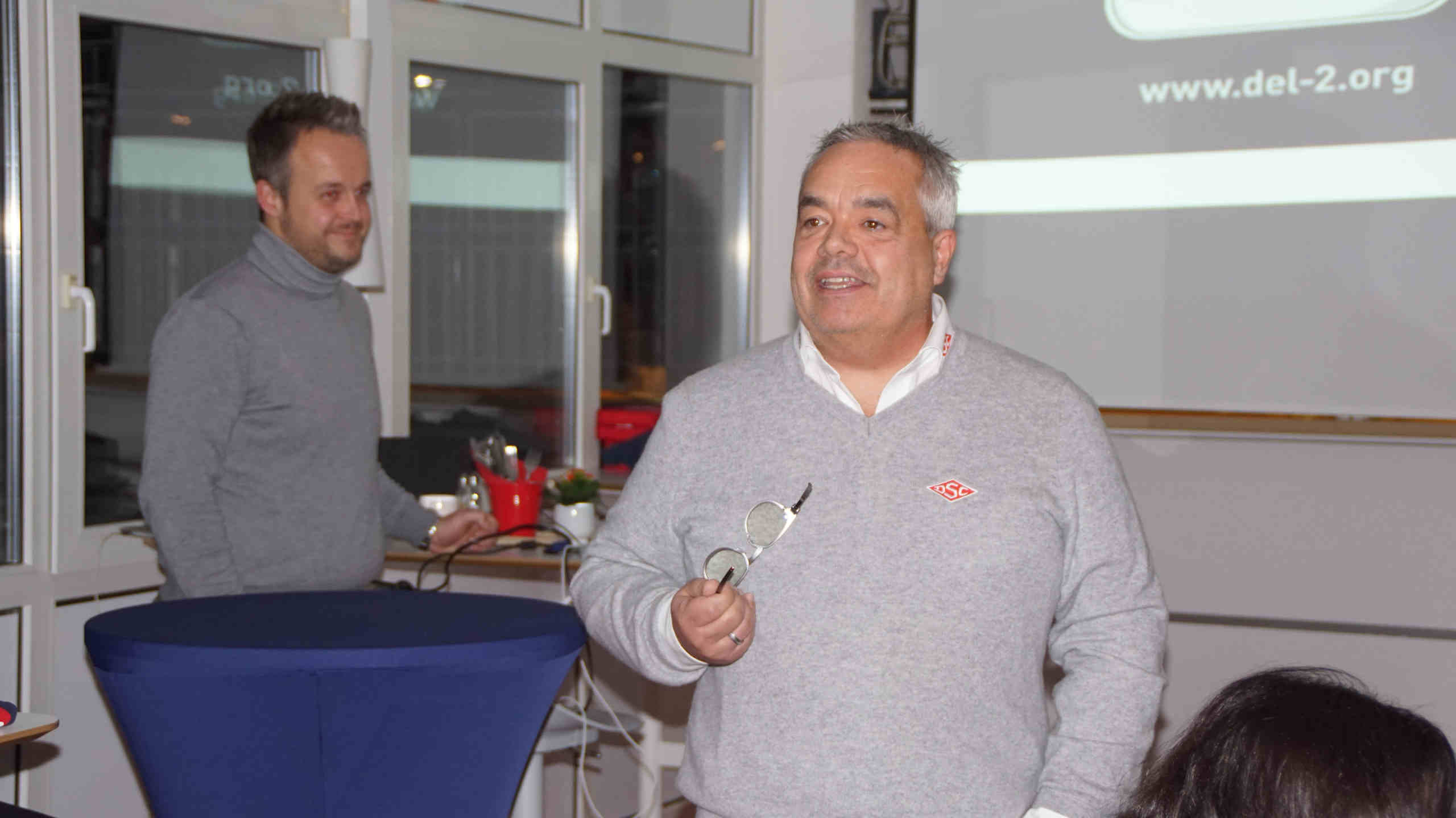 Anschließend übernahm Artur Frank, der Vorstand des DSC. Er blickte auf die Entwicklung des DSC in den vergangenen 5 Jahren zurück- die mit dem Aufstieg in die DEL2 in der vergangenen Saison gekrönt wurde. Sehr stolz zeigte er sich aber nicht nur wegen der 1. Mannschaft. So zeichnete er auch ein Bild über die Nachwuchsarbeit beim DSC- diese gilt als Talentschmiede für das deutsche Eishockey. Bereits seit vielen Jahren stammen viele Nationalspieler, DEL-Spieler und DEL2-Spieler aus den Nachwuchsmannschaften des DSC.