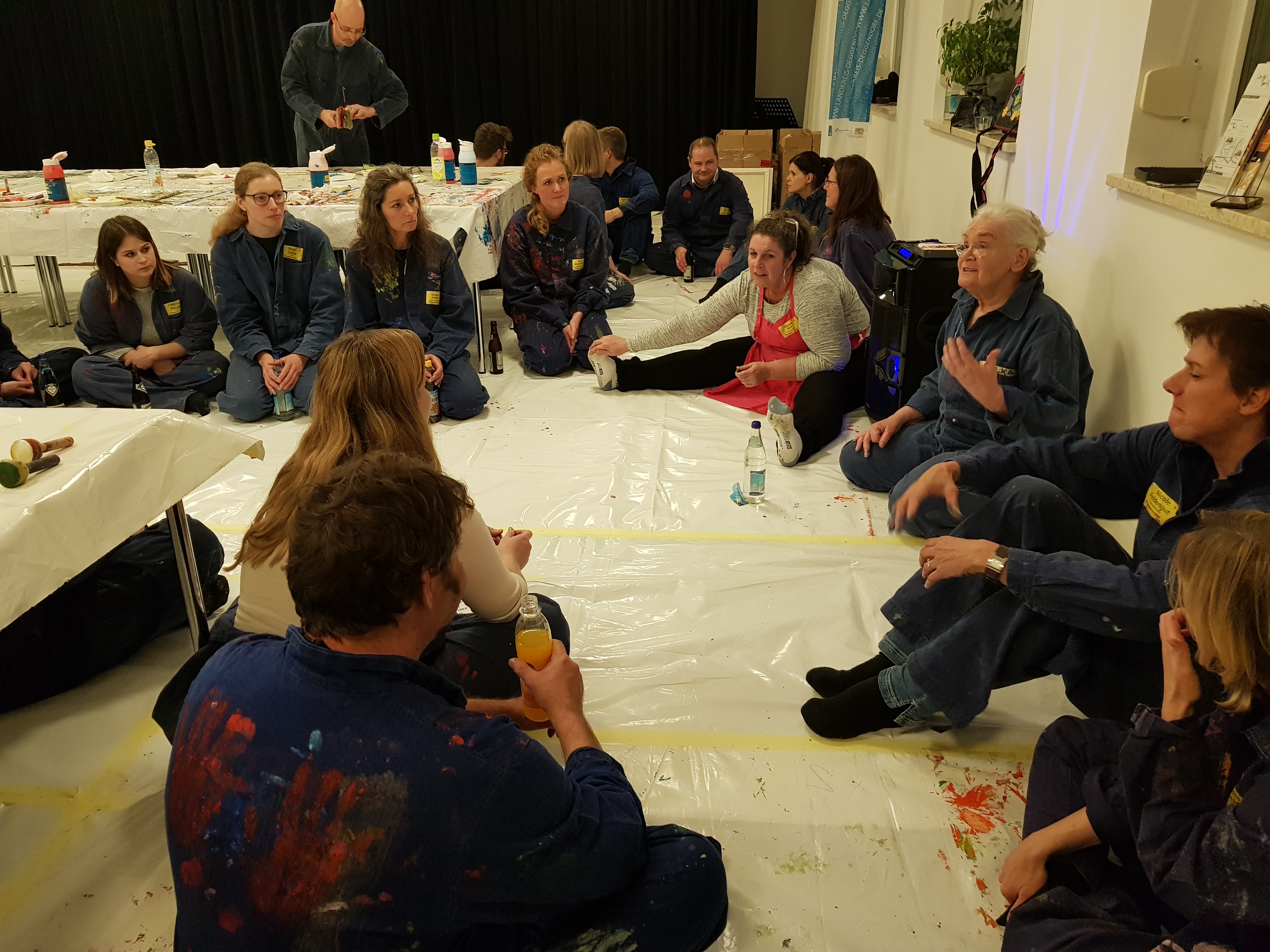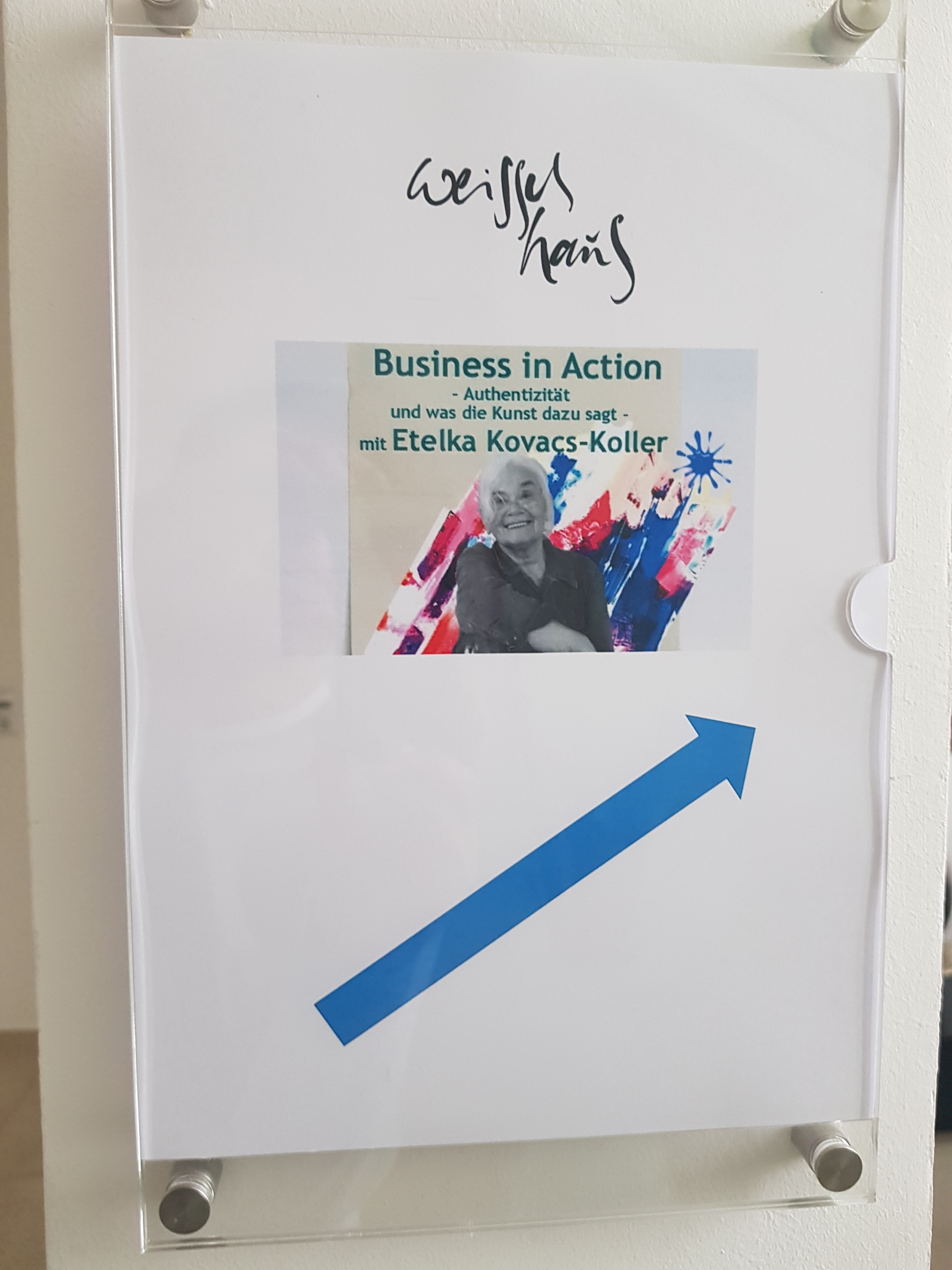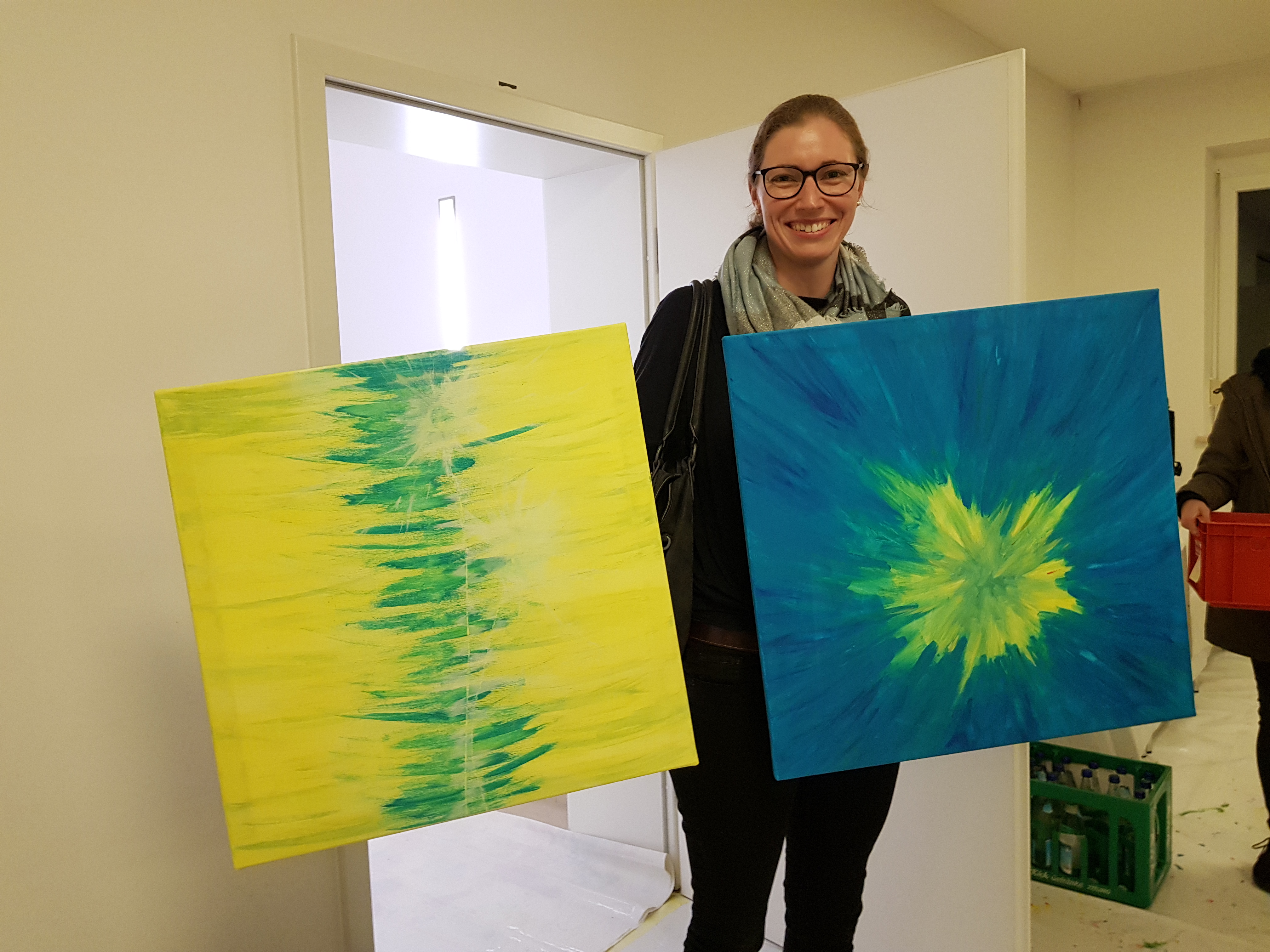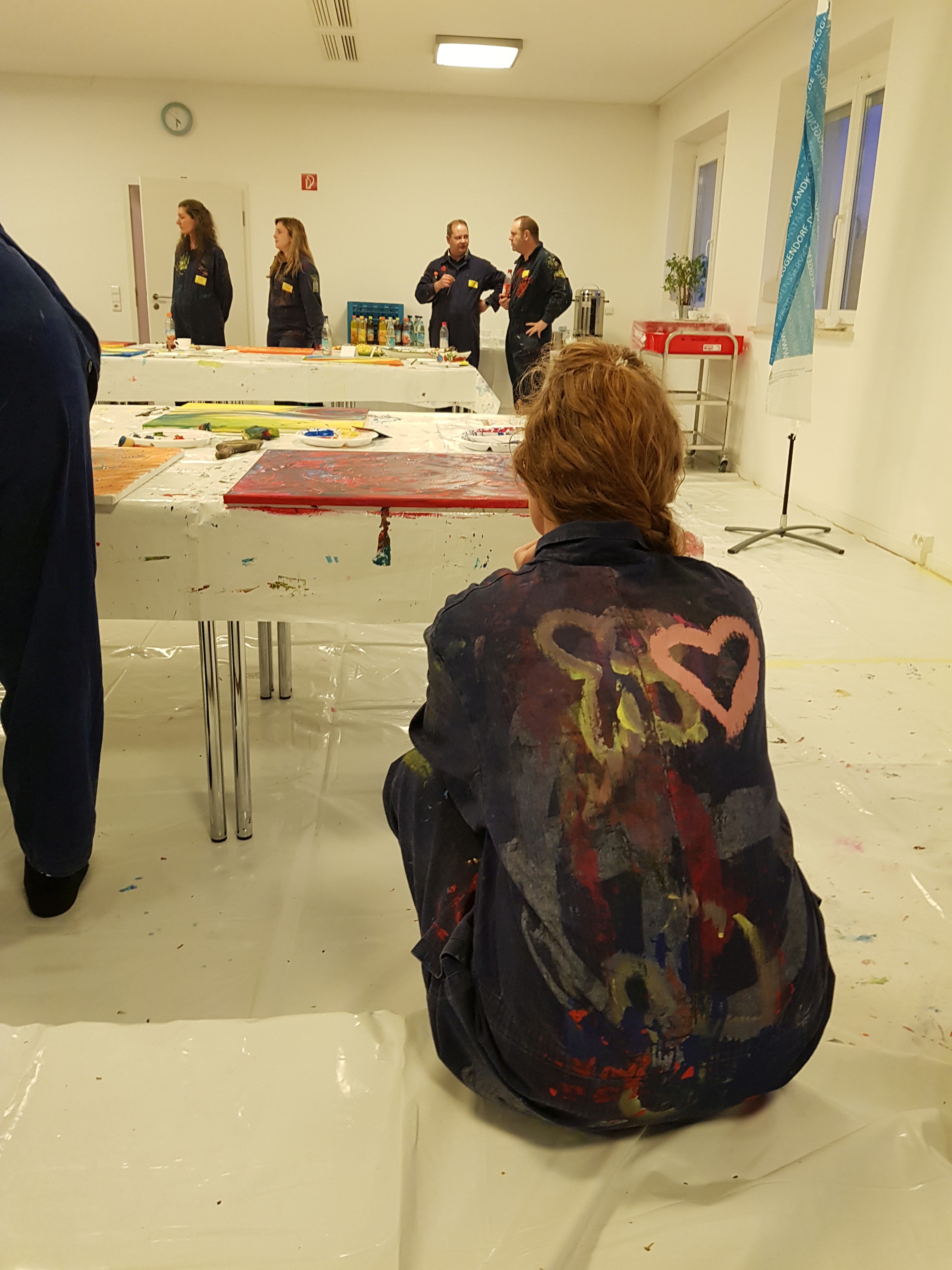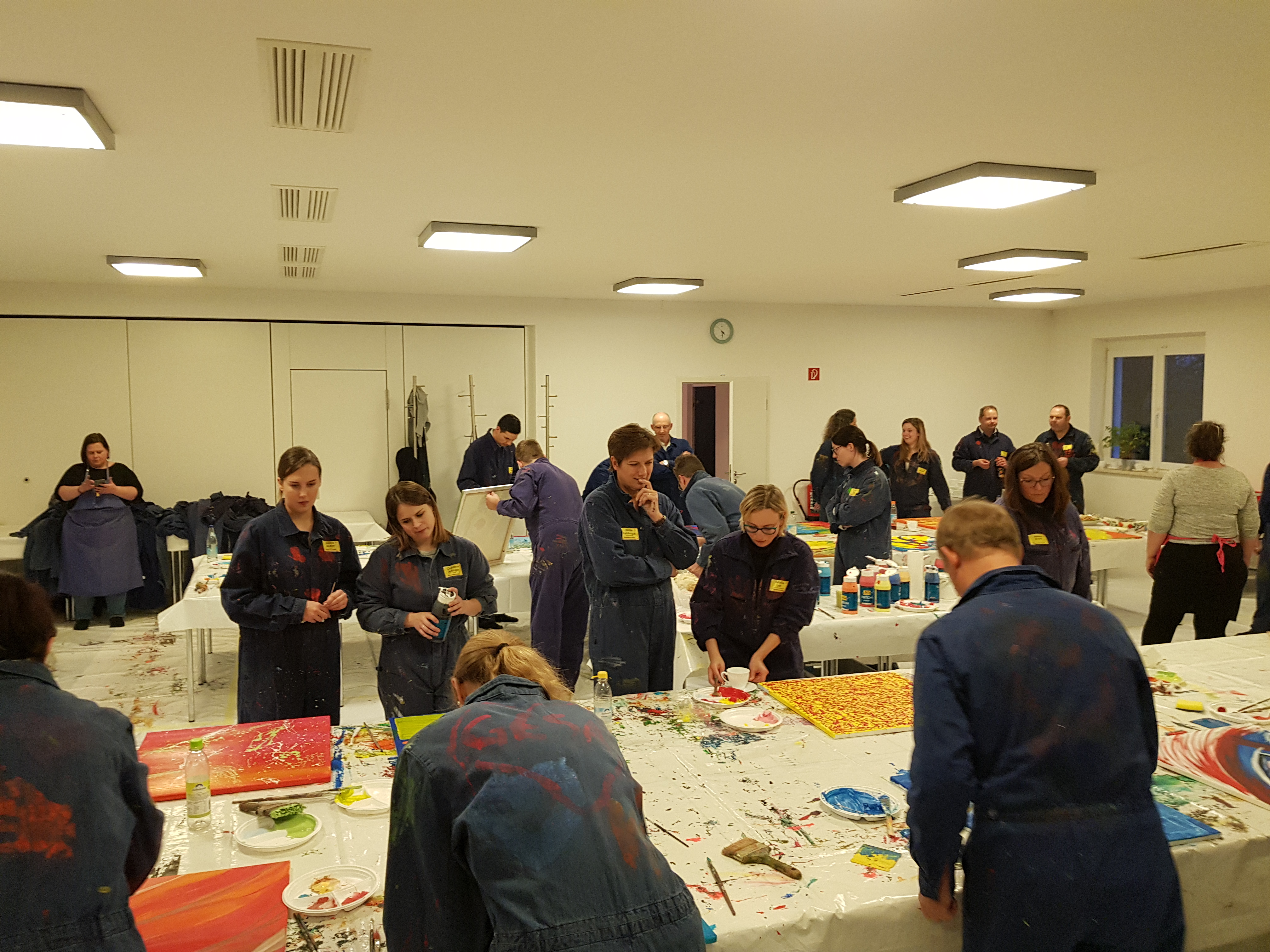 Bevor es an Pinsel und Farbe ging, erläuterte Etelka Kovacs-Koller zunächst wie wichtig Authentizität für Unternehmer, Unternehmen und Mitarbeiter ist. Sie ersetzte dabei „Authentizität“ mit dem Wort „Rechtschaffenheit“, da es ihr insbesondere auch um Werte, Vertrauen und in Folge um Identifikation geht. „Freiheit heißt nicht, dass man alles machen kann wozu man Lust hat. Freiheit geht nur auf Grundlage von Werten- bestenfalls von gleichen Werten aller Menschen. So kann man gegenseitiges Vertrauen aufbauen. Die Malerei an diesem Nachmittag dient dazu, sich selbst besser kennenzulernen. Dies ist die Grundlage für die eigene Rechtschaffenheit.“