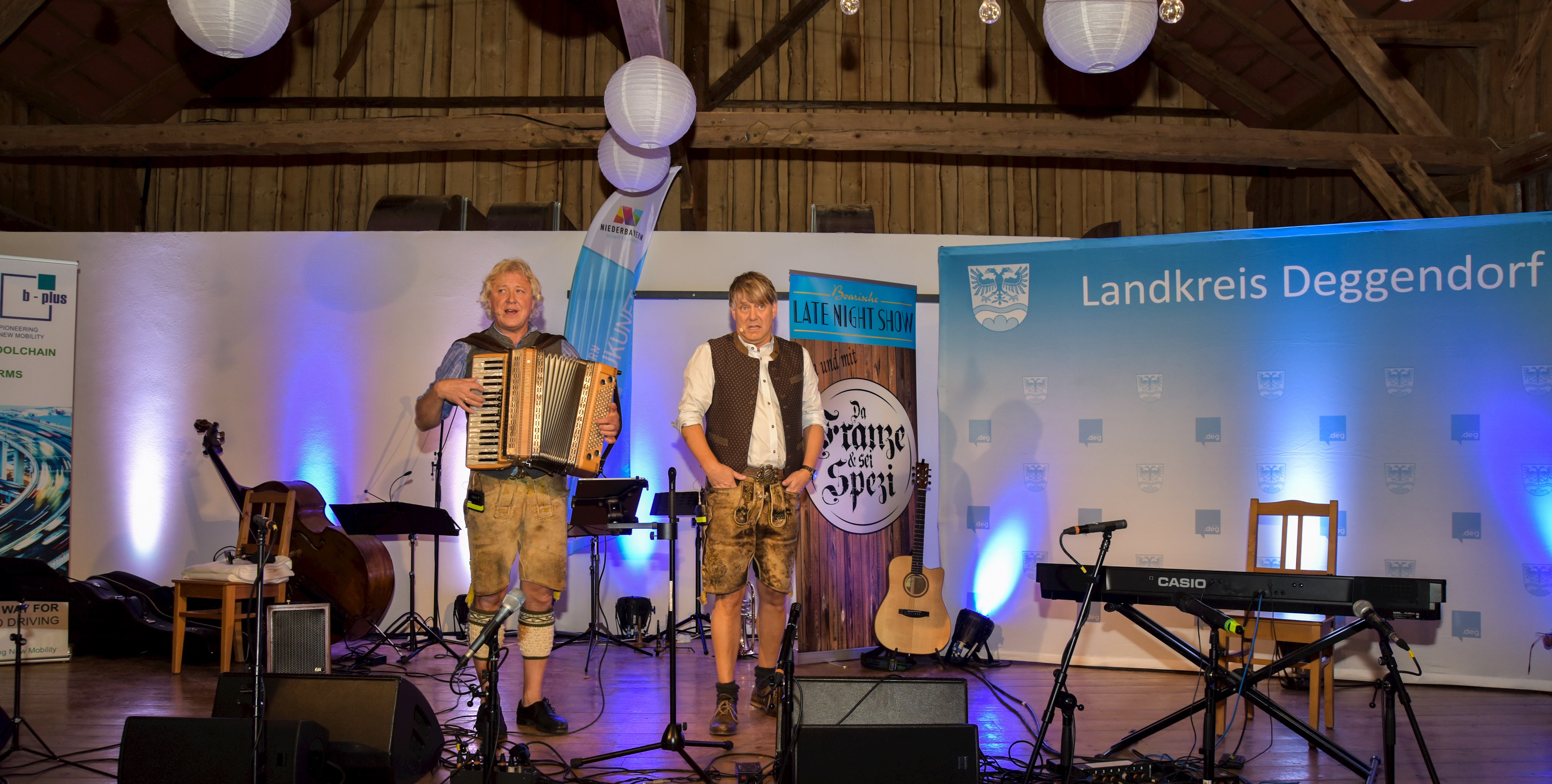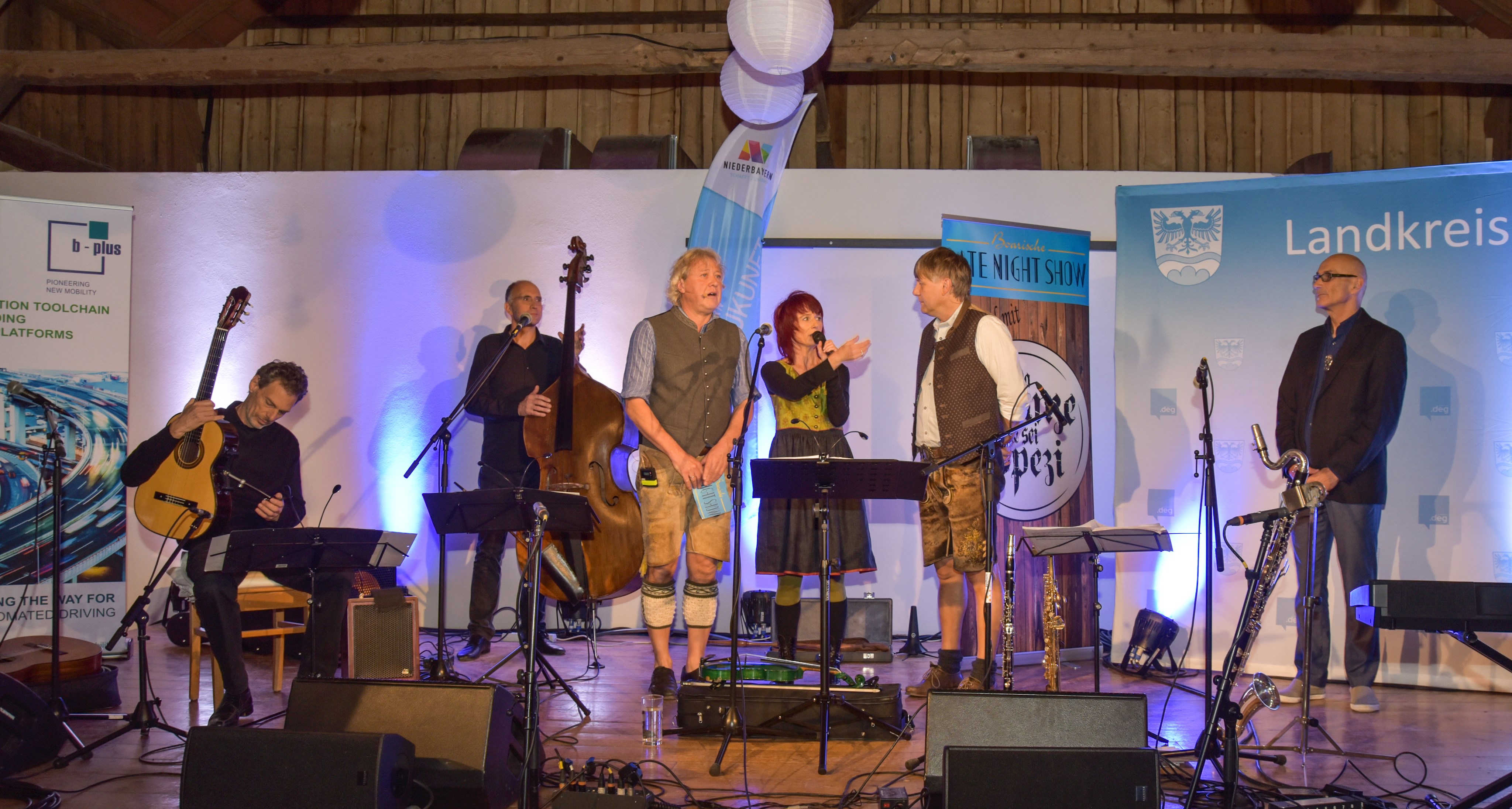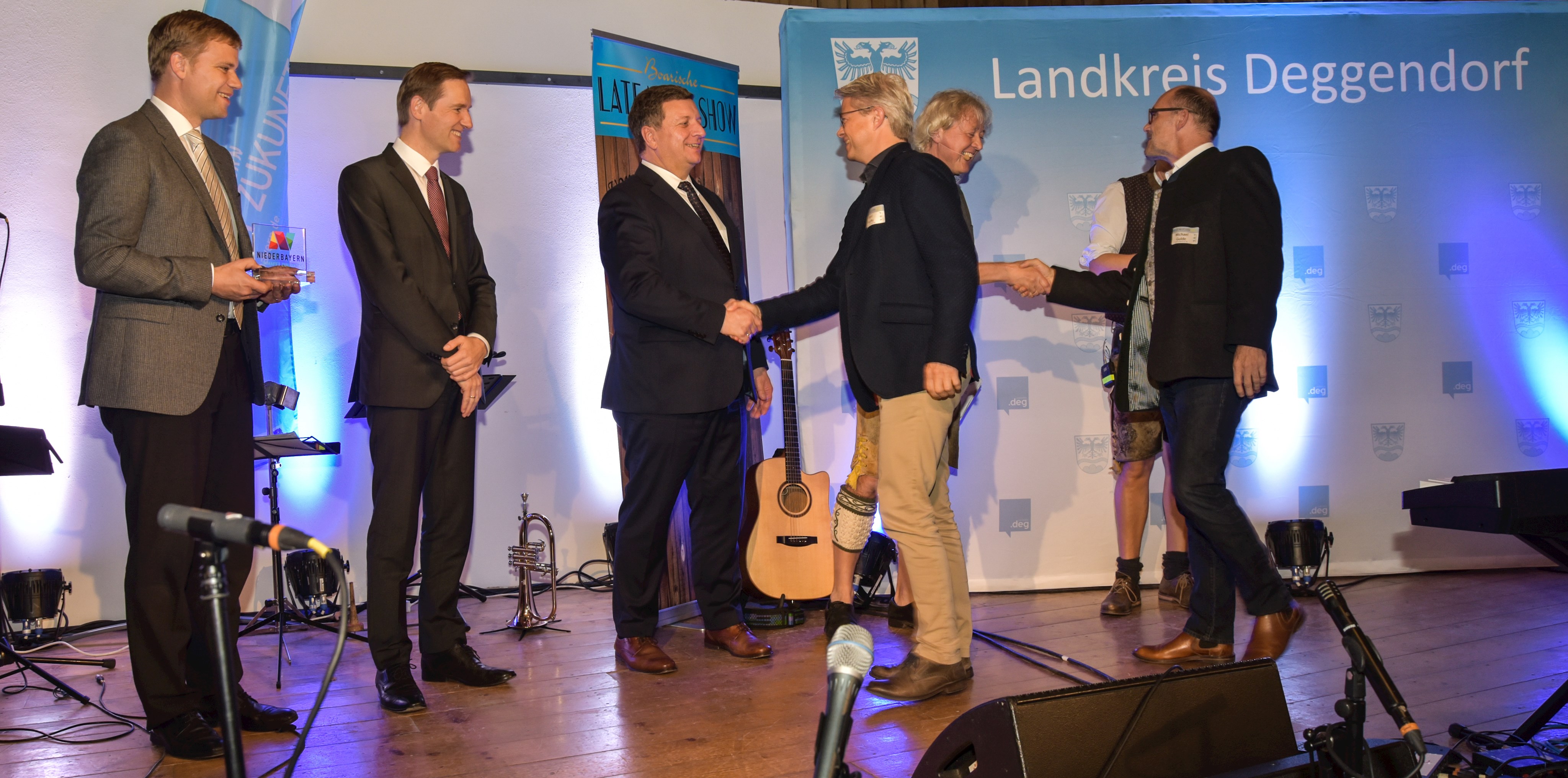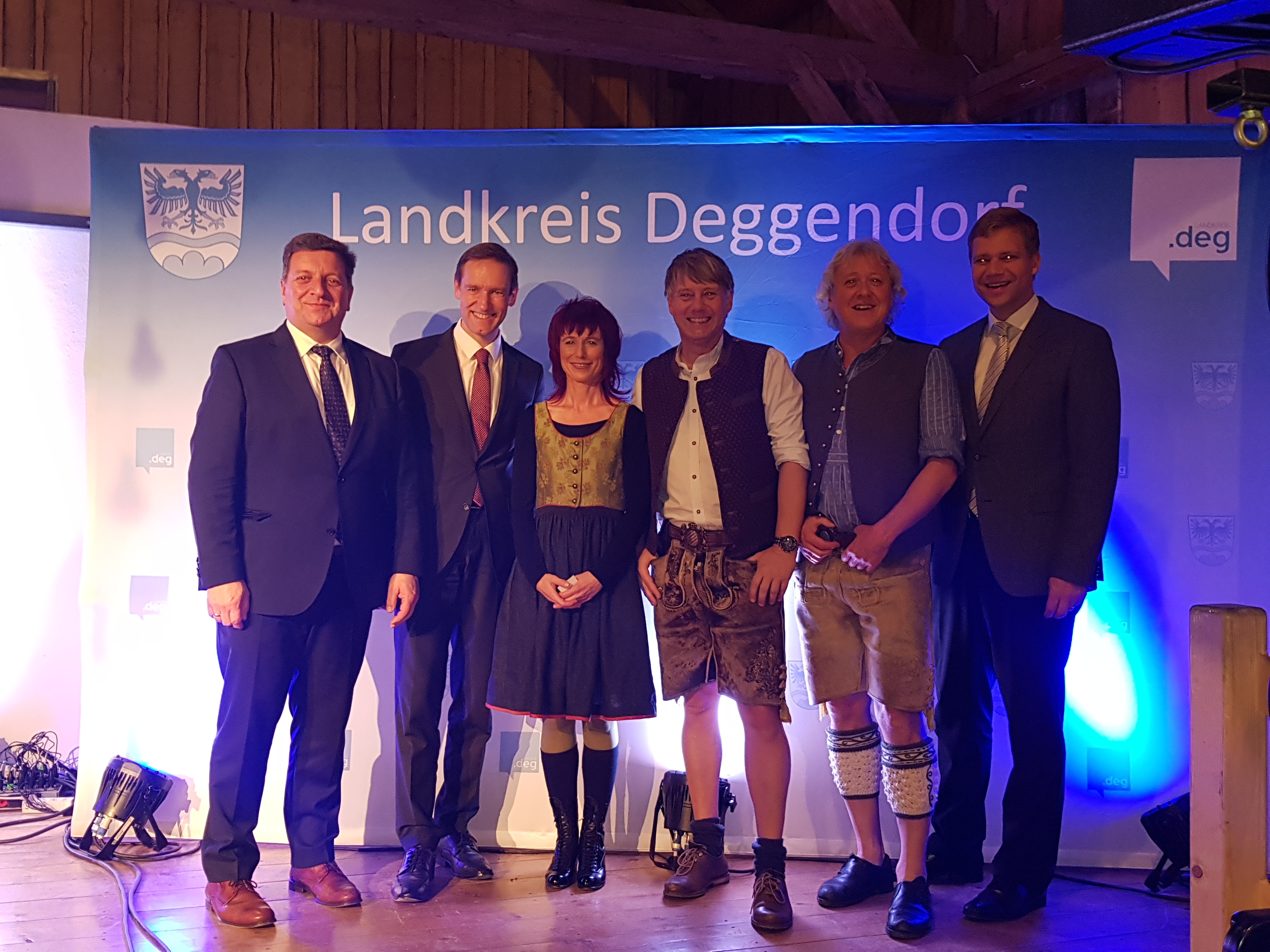 „Mit so einer Show hätt ich heute nicht gerechnet“. Eine der vielen Aussagen, welche man vergangenen Montag aus dem Stadl des Wild-Berghof Buchet in Bernried hören konnte. Dass dies ein unkonventioneller und vor allem unterhaltsamer Ehrenabend wird, mit dem haben die wenigsten Gäste gerechnet als damals die Einladung des Landkreises Deggendorf zur „Boarisch Late Night Show.DEG“ mit Auszeichnung der Top-Unternehmen Niederbayerns, im Postfach lag. In Kooperation mit dem Niederbayern Forum e.V., DonauTV sowie b-plus, wurden knapp 140 Gäste aus der regionalen Wirtschaft bei regionalen Brotzeitschmankerl musikalisch und kabarettistisch unterhalten. Auch die anwesenden Ehrengäste mit Landrat Christian Bernreiter, Bezirkstagspräsident Dr. Olaf Heinrich und Regierungspräsident Niederbayerns, Rainer Haselbeck, hatten sichtlich Spaß im Wild-Berghof Buchet.